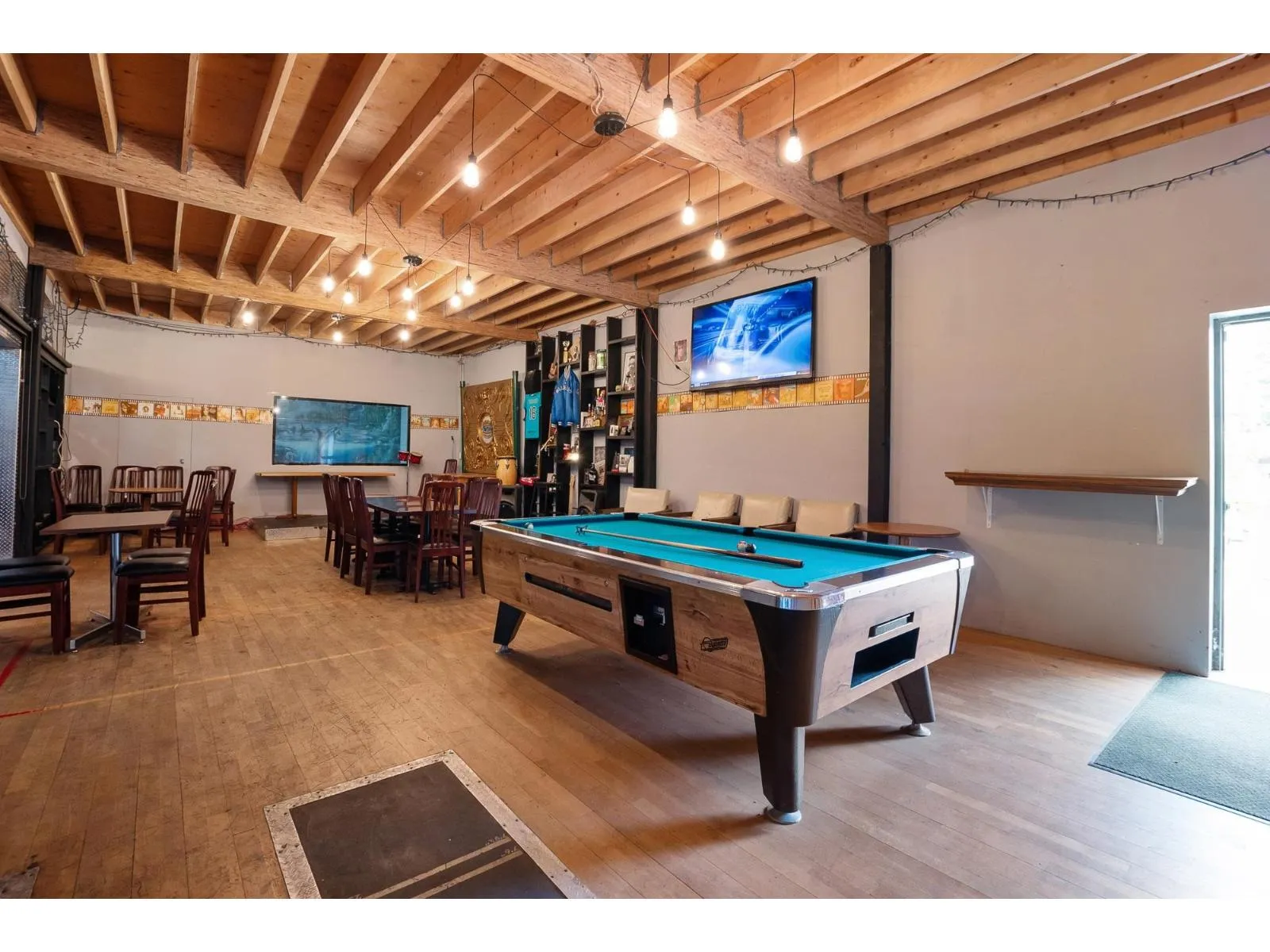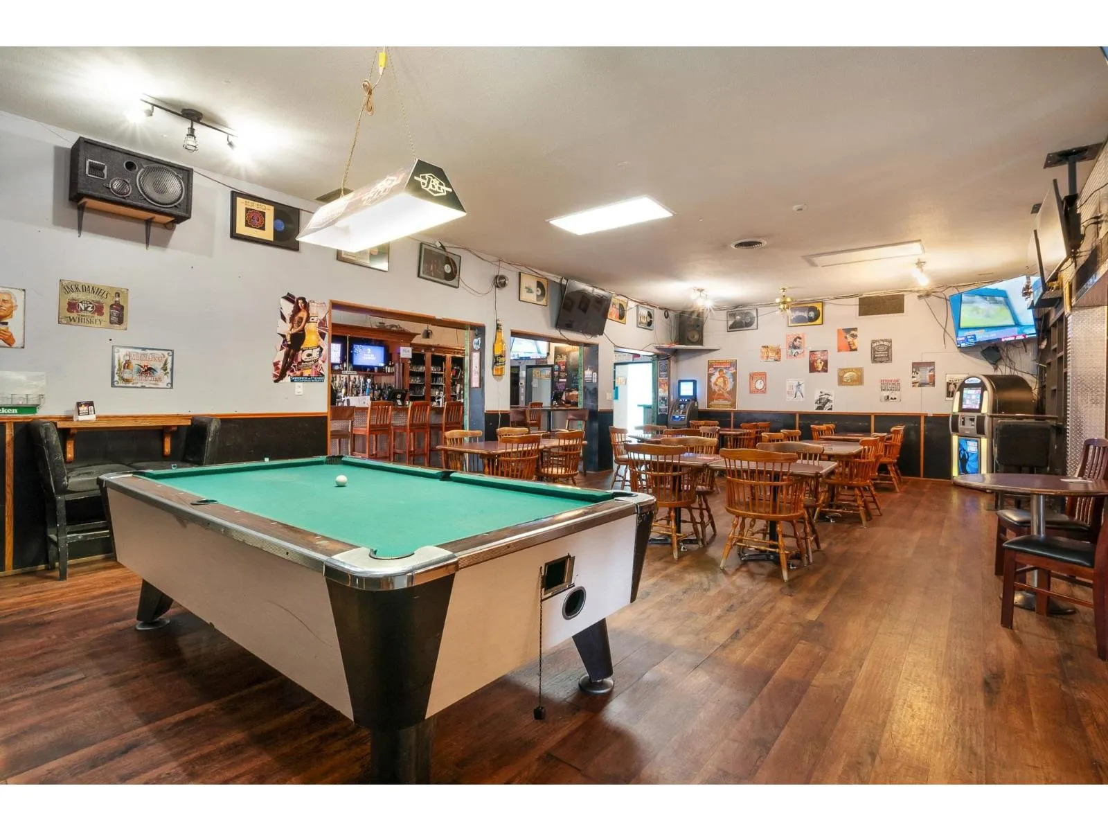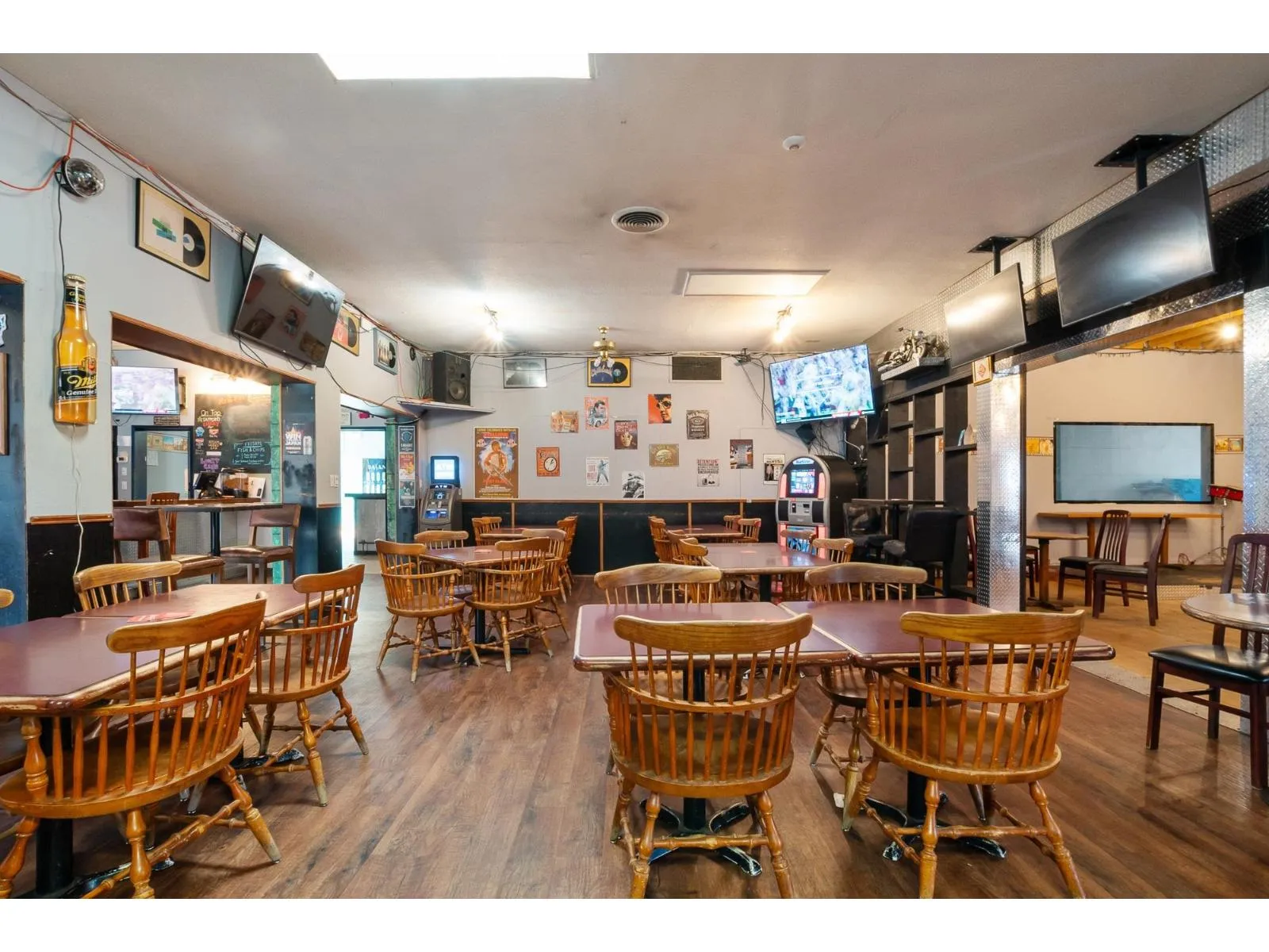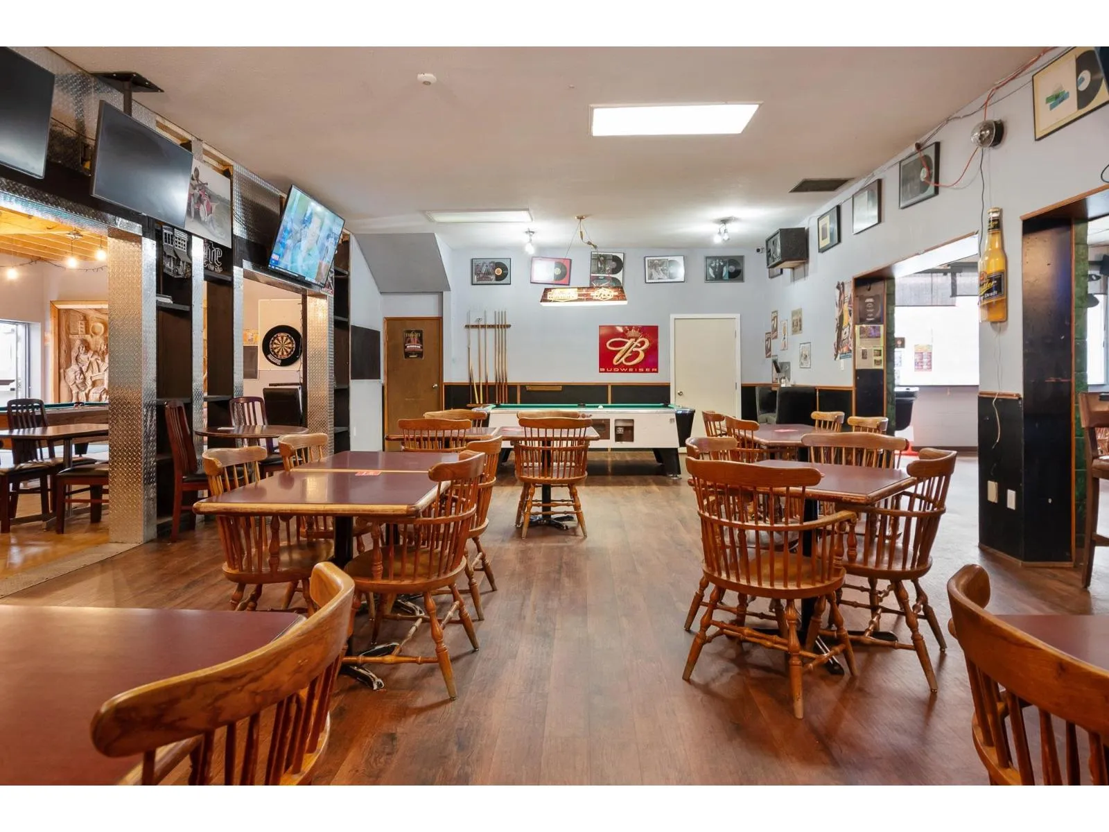 Rare opportunity to own the Kingpin Lounge, a renowned and profitable bar in Hope. This property spans over 15,000 sq ft of land with more than 12,000 sq ft of usable space. Included is a 5,000 sq ft area formerly used as a bowling alley, complete with mostly operational lanes and equipment. The property offers immense potential for various business ventures. Ideal for entrepreneurs looking to capitalize on a prime location with existing infrastructure. Features include a fully operational kitchen with commercial fridge and freezer and a newly renovated 1-bedroom, 1,600 sq ft suite above. Enjoy a massive outdoor patio, ideal for private events and patrons, complete with an outdoor kitchen. Don't miss this unique chance to own a thriving business and transform the space to fit your vision! (id:27476)