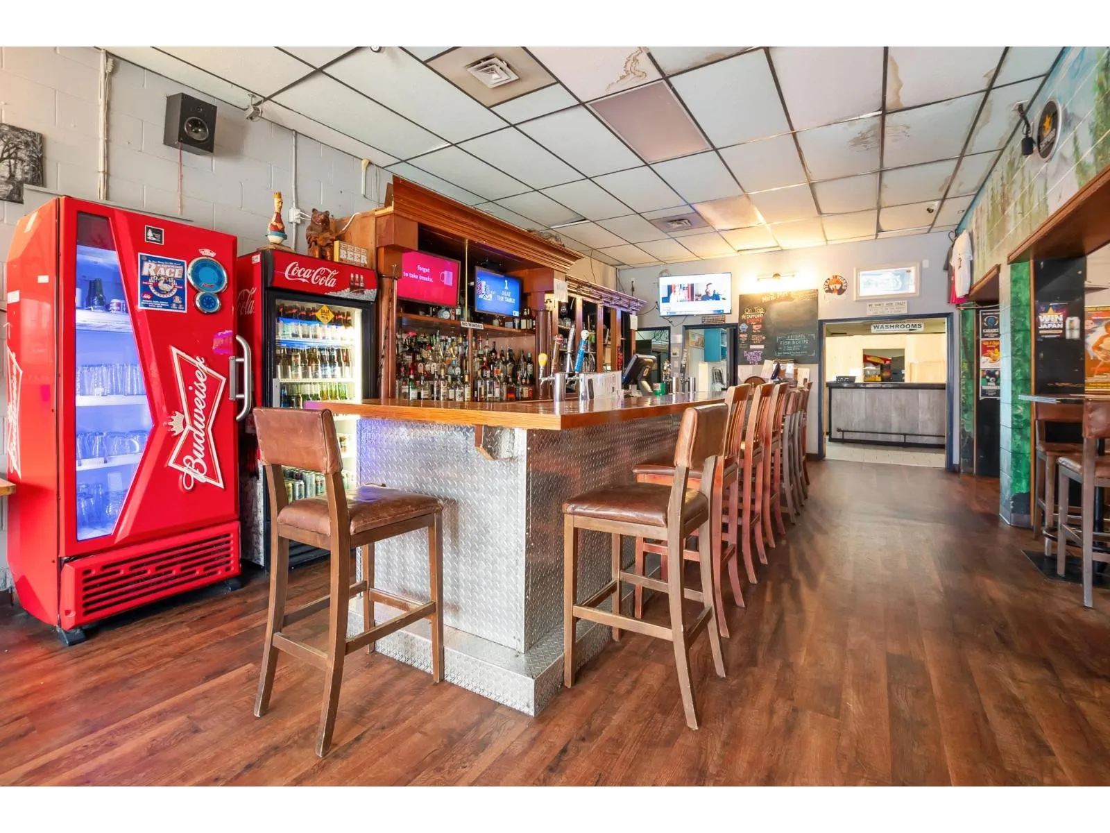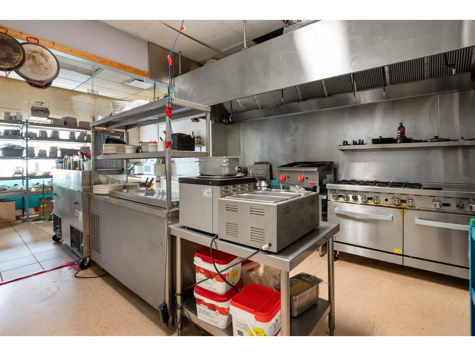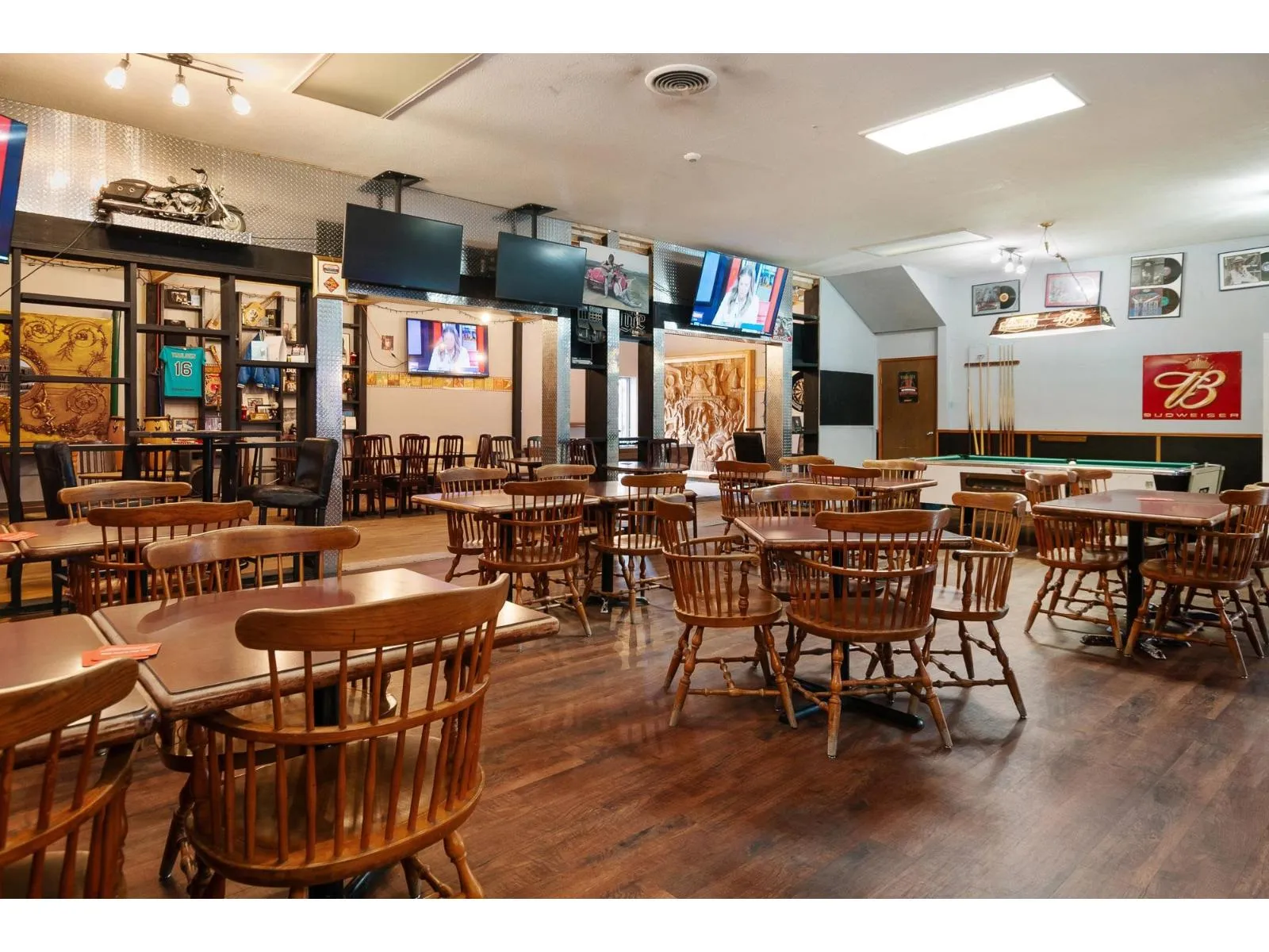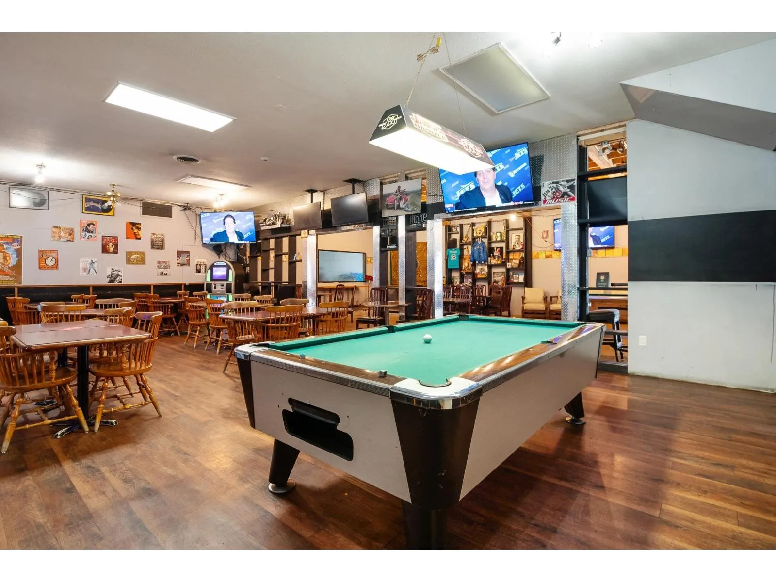 Rare opportunity to own the Kingpin Lounge, a renowned and profitable bar in Hope. This property spans over 15,000 sq ft of land with more than 12,000 sq ft of usable space. Included is a 5,000 sq ft area formerly used as a bowling alley, complete with mostly operational lanes and equipment. The property offers immense potential for various business ventures. Ideal for entrepreneurs looking to capitalize on a prime location with existing infrastructure. Features include a fully operational kitchen with commercial fridge and freezer and a newly renovated 1-bedroom, 1,600 sq ft suite above. Enjoy a massive outdoor patio, ideal for private events and patrons, complete with an outdoor kitchen. Don't miss this unique chance to own a thriving business and transform the space to fit your vision! (id:27476)