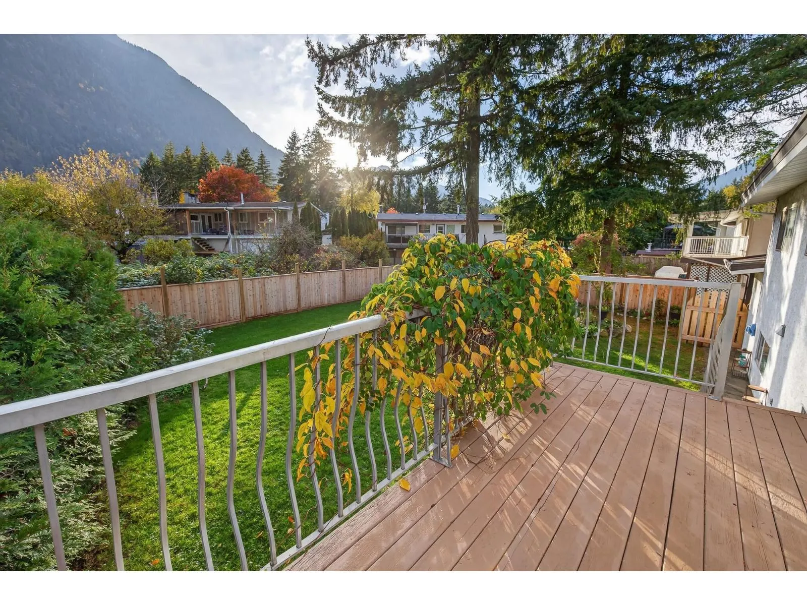 Beautiful 5 bed, 3 bath family home in beautiful Hope. Enjoy stunning mountain views from the welcoming front entry and a bright, functional layout with spacious living areas and a well equipped kitchen. Generous bedrooms offer flexibility for family, guests, or office needs. The large backyard provides space to relax, garden, or entertain while taking in the natural surroundings. Close to trails, schools, and town amenities, this home blends comfort, convenience, and outdoor lifestyle. A rare opportunity in one of BC's most scenic communities. Call today book your private showing! * PREC - Personal Real Estate Corporation (id:27476)