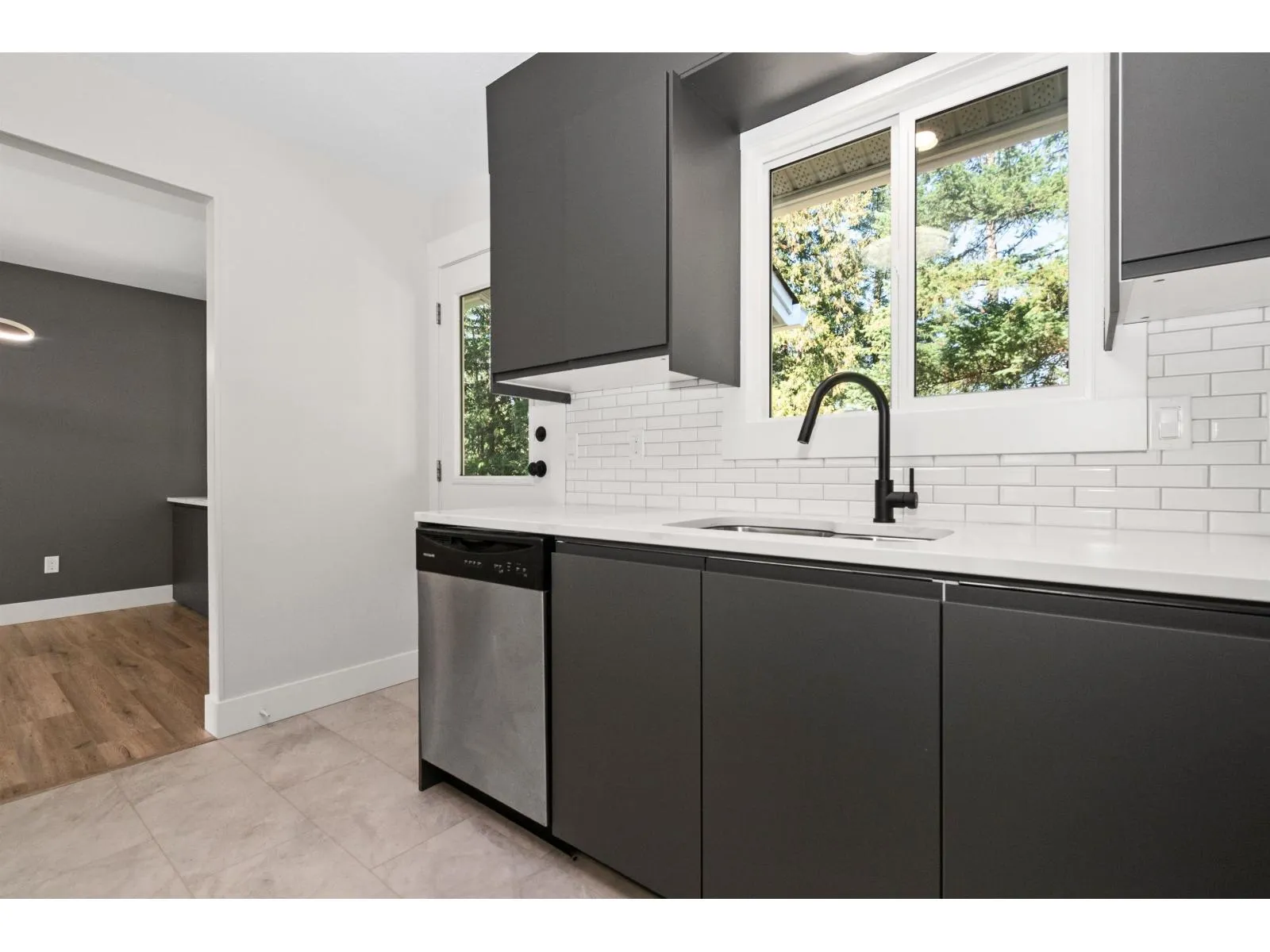 Must See! Fully renovated, like-new split-entry home in a quiet Hope neighbourhood with lovely mountain views. Close to schools, recreation, fishing, and easy freeway access. Upper level offers 3 bedrooms and a bright modern open-concept layout with new flooring, brand new kitchen featuring soft-close cabinets, quartz countertops, stainless steel appliances, and stylish LED lighting. Updated bathroom with new tub surround, and quartz vanity. Fresh paint and trim throughout. Basement finished in 2019 with a functional in-law or studio suite, open kitchen and living area, separate entry, and laundry. Extensive exterior upgrades include Hardie siding, vinyl windows, new front door with sidelights, overhead garage door, gutters, and more. Private yard and ample parking. (id:27476)
