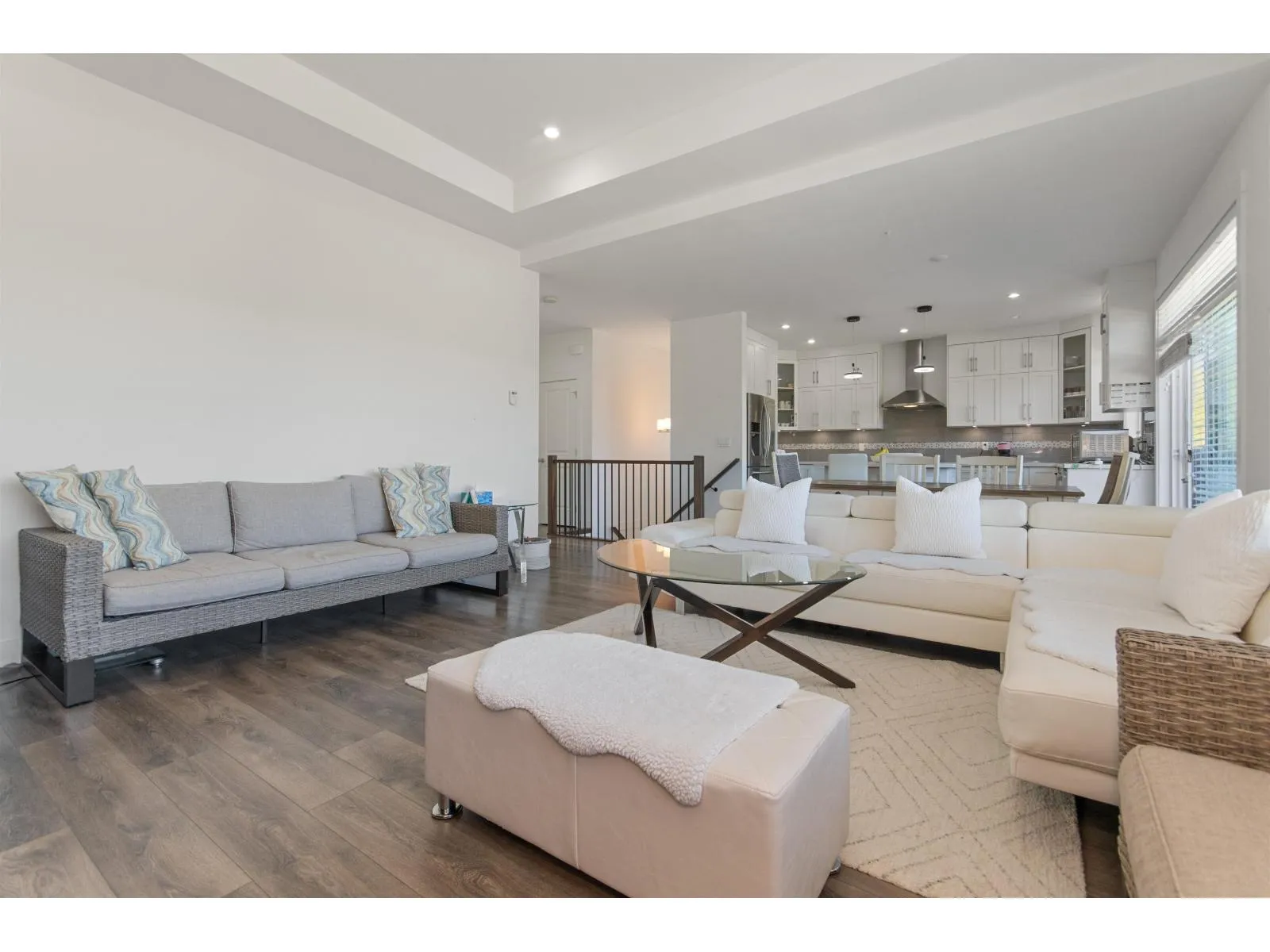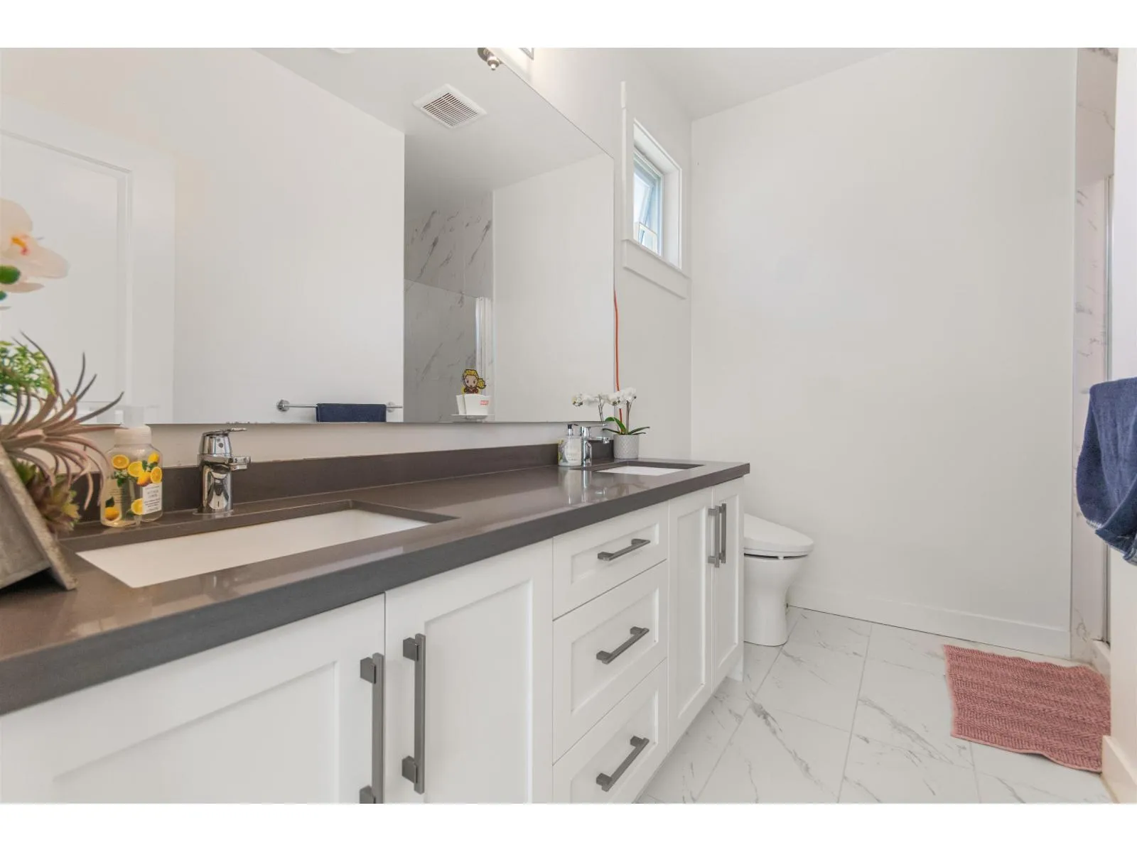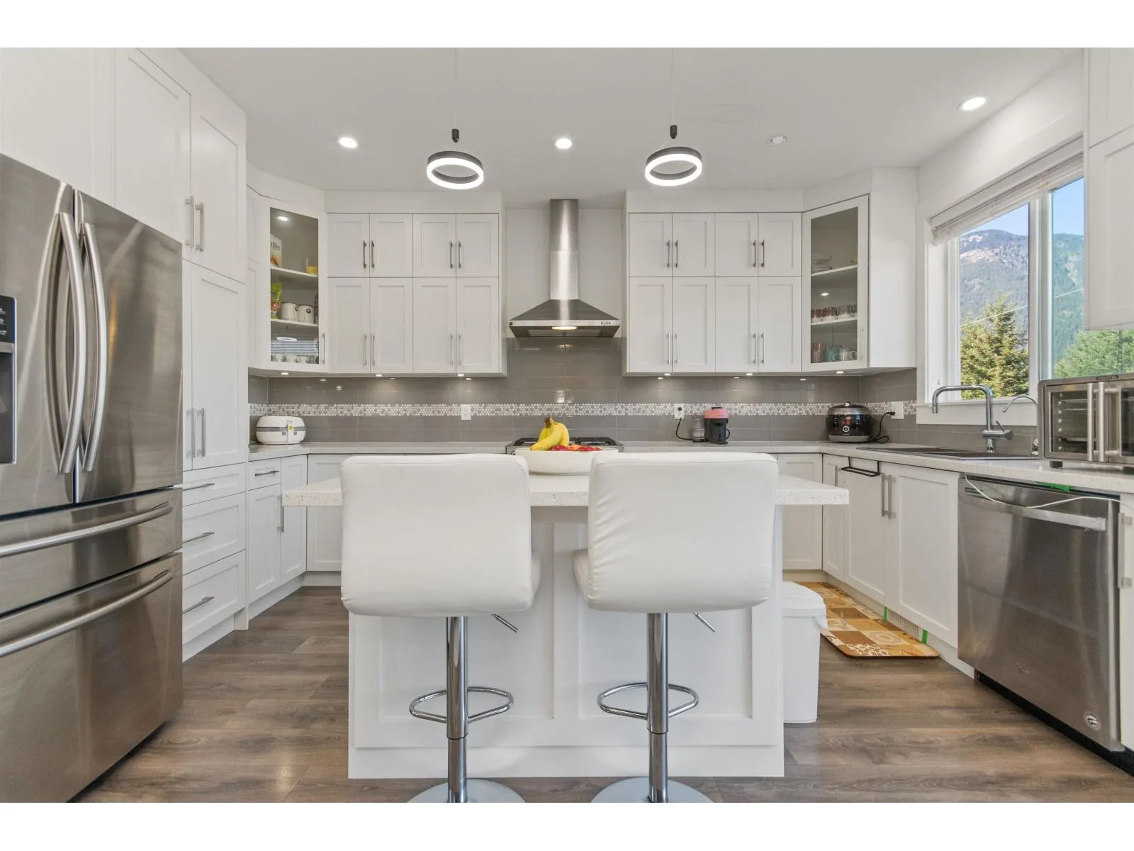 Enjoy mountain views from this immaculate 4beds,3full bath home. The main features a bright open concept layout with laminate flooring, a spacious living room with a gas fireplace, and a white kitchen complete with quartz countertops, a large island, pantry, and ample cabinetry. The primary bedroom offers a walk-in closet and a 4-piece ensuite, while two additional bedrooms, a second full bathroom, and convenient laundry complete the main level.The fully finished lower level includes a rec room, fourth bedroom, and full bathroom, and offers potential to be easily converted into a studio suite, making it ideal for rental income. Stay comfortable year-round with air conditioning. Well maintained backyard and a large patio perfect for BBQs and entertaining.Self-managed strata with $50/month. (id:27476)