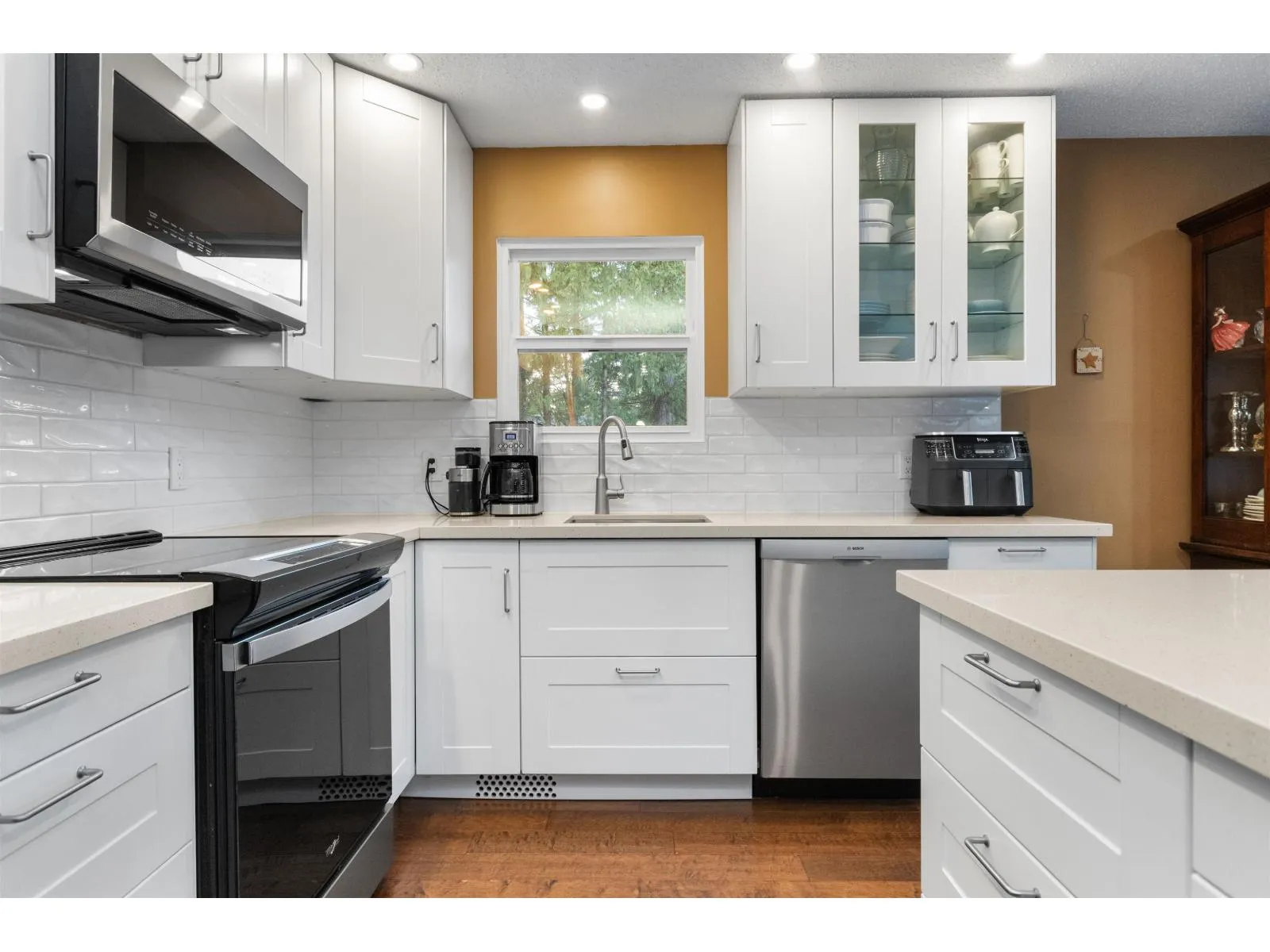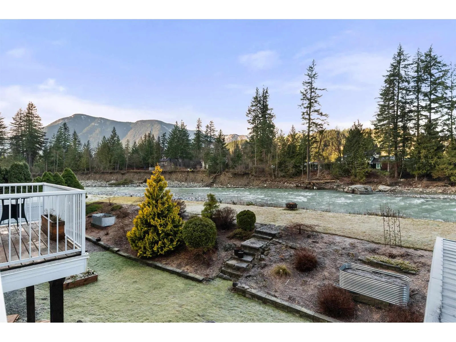 Coquihalla riverfront home, 0.4 acres, 95 feet of river front. Engineered hardwood throughout upstairs, new windows, new picture window and french doors, provide great river and mountain views. Gas fireplace. Kitchen has a large island, quartz countertops & stainless steel appliances. Three bedrooms upstairs and an ensuite. Main bathroom is completely renovated. Downstairs, bathroom with a standalone shower, jetted tub, new toilet, new vanity. Wood stove, storage, laundry, workshop, and an office space. A new 100 amp electrical panel and subpanel for generator. Numerous raised beds, greenhouse, blueberries, rhubarb, raspberries and strawberries. Parking for toys or RVs. Tool shed, wood shed, 14' x 16' insulated and wired (60amp) shop. Not quite a homestead but a good place to practice. * PREC - Personal Real Estate Corporation (id:27476)