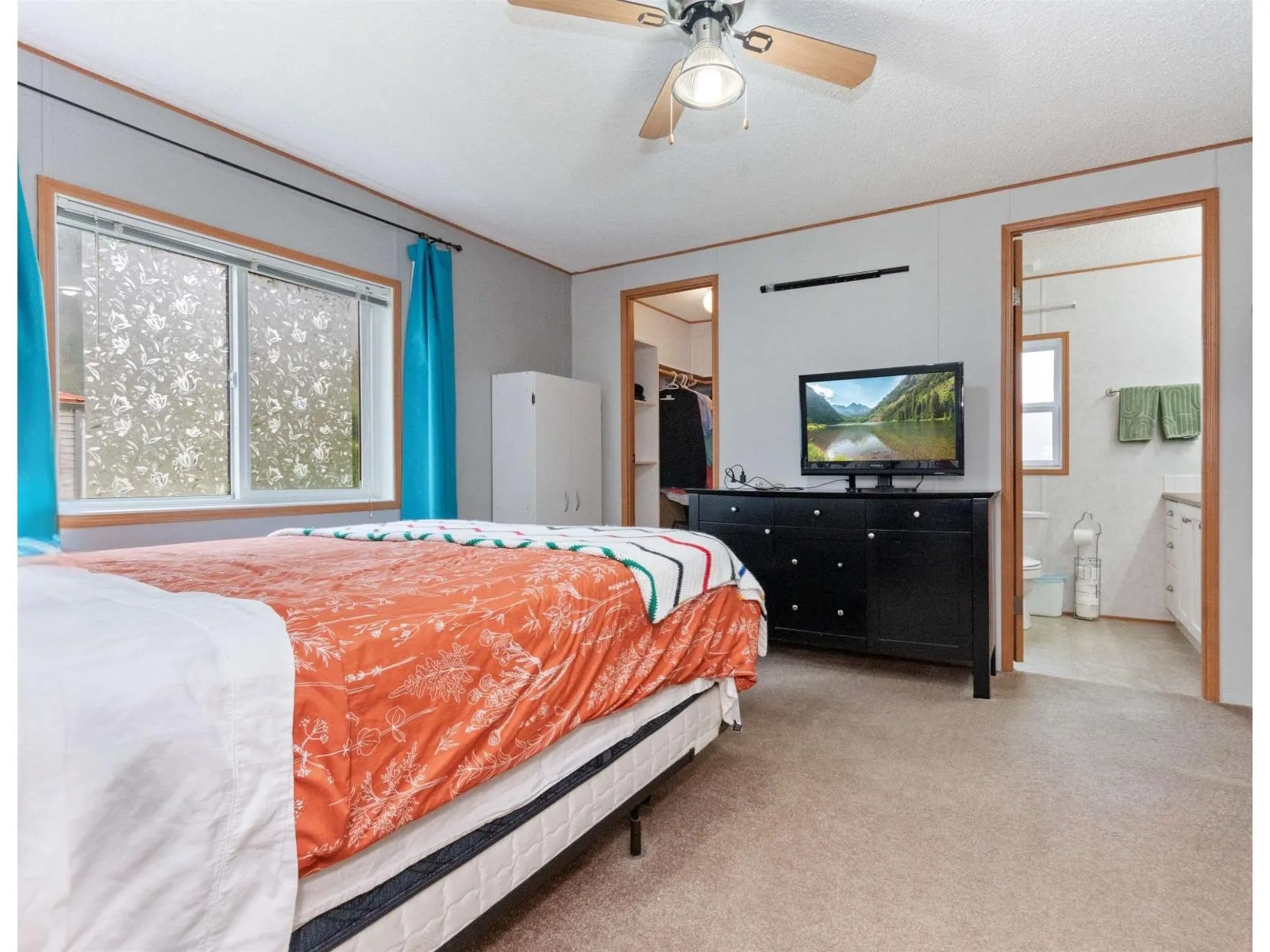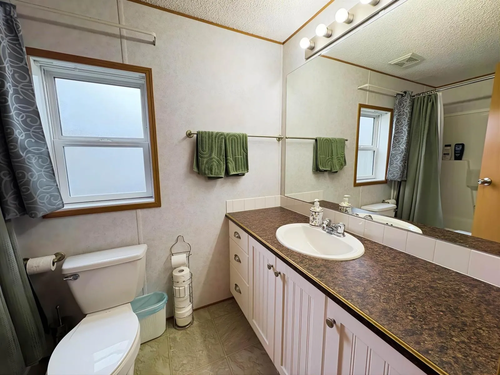 Well maintained and thoughtfully laid out 2 bedroom, 2 full bathroom home in the desirable 55+ Windmill Mobile Home Park. This bright and spacious unit offers vaulted ceilings, generous room sizes, and a comfortable open living area with tasteful finishes throughout. Enjoy outdoor living with a huge backyard, large 10 x 20 sundeck, plus added value with an 8 x 8 storage shed and a 12 x 12 metal gazebo. The oversized pad provides two ample parking spaces. Features include newer appliances and a Champion 10,000 watt generator, adding extra convenience and peace of mind. A great option for those seeking a quiet, well kept community setting. (id:27476)