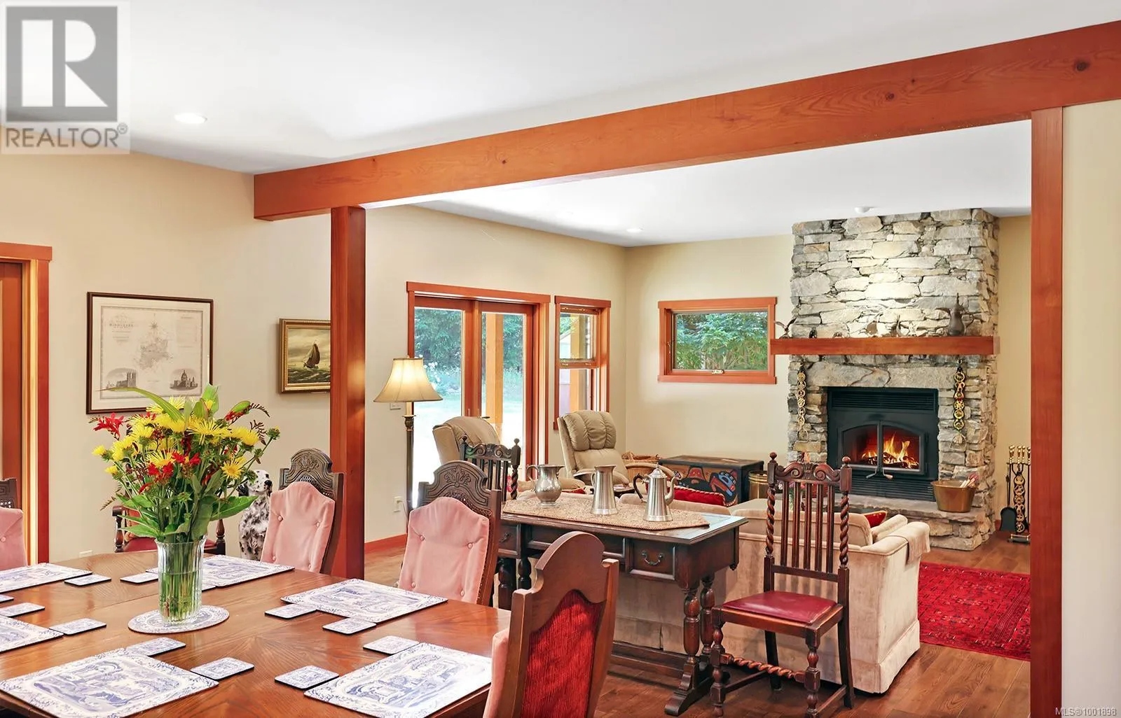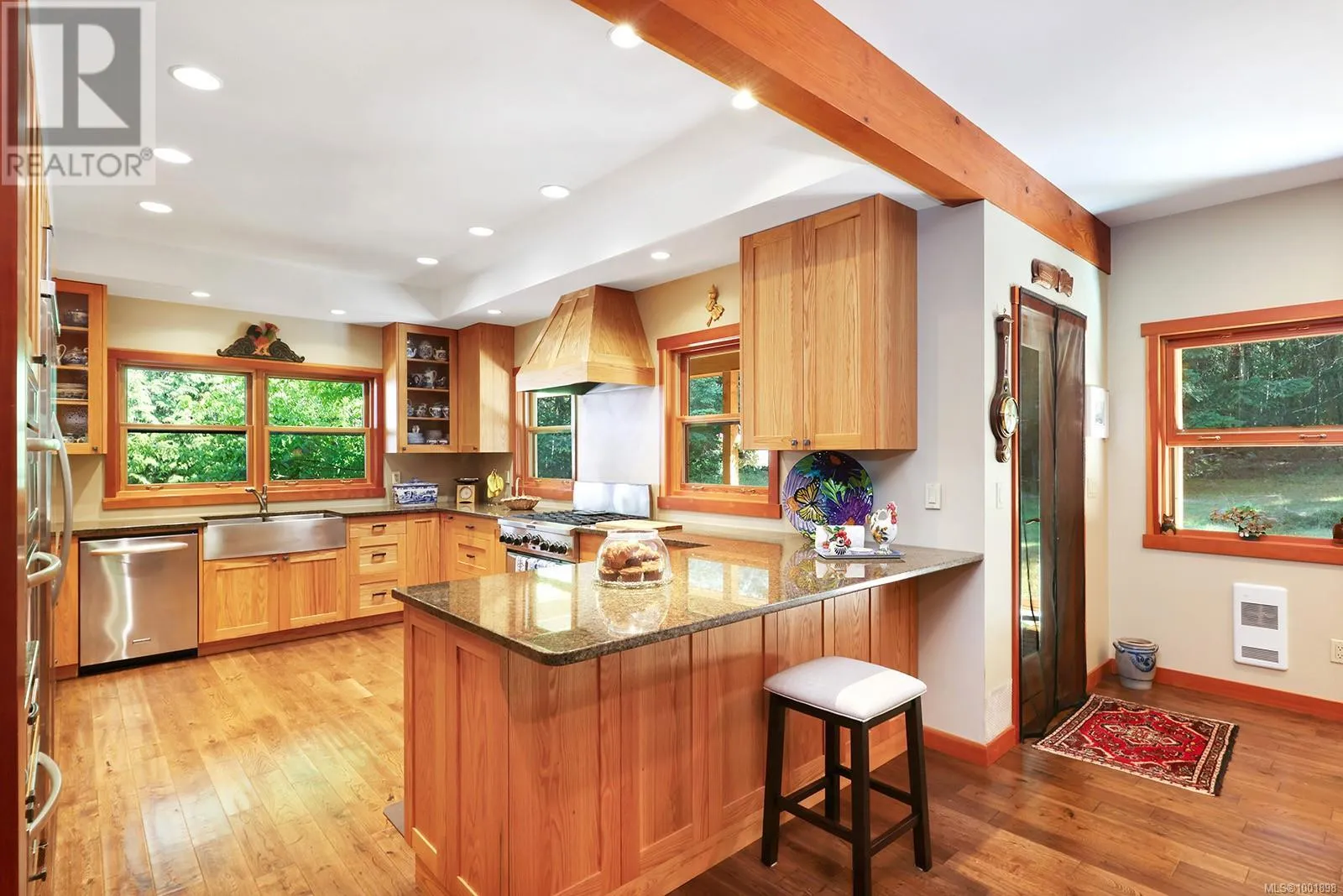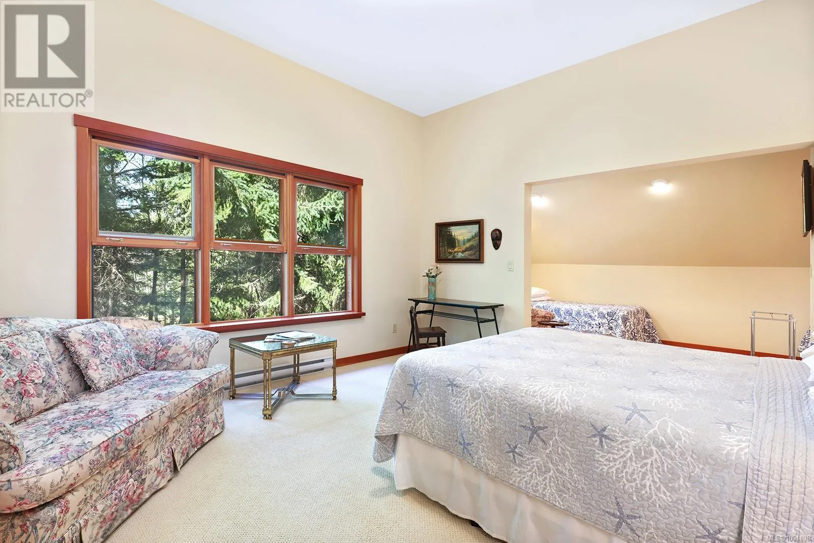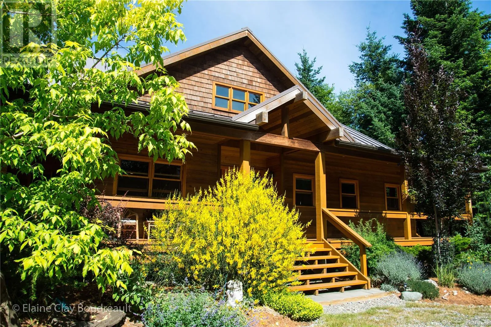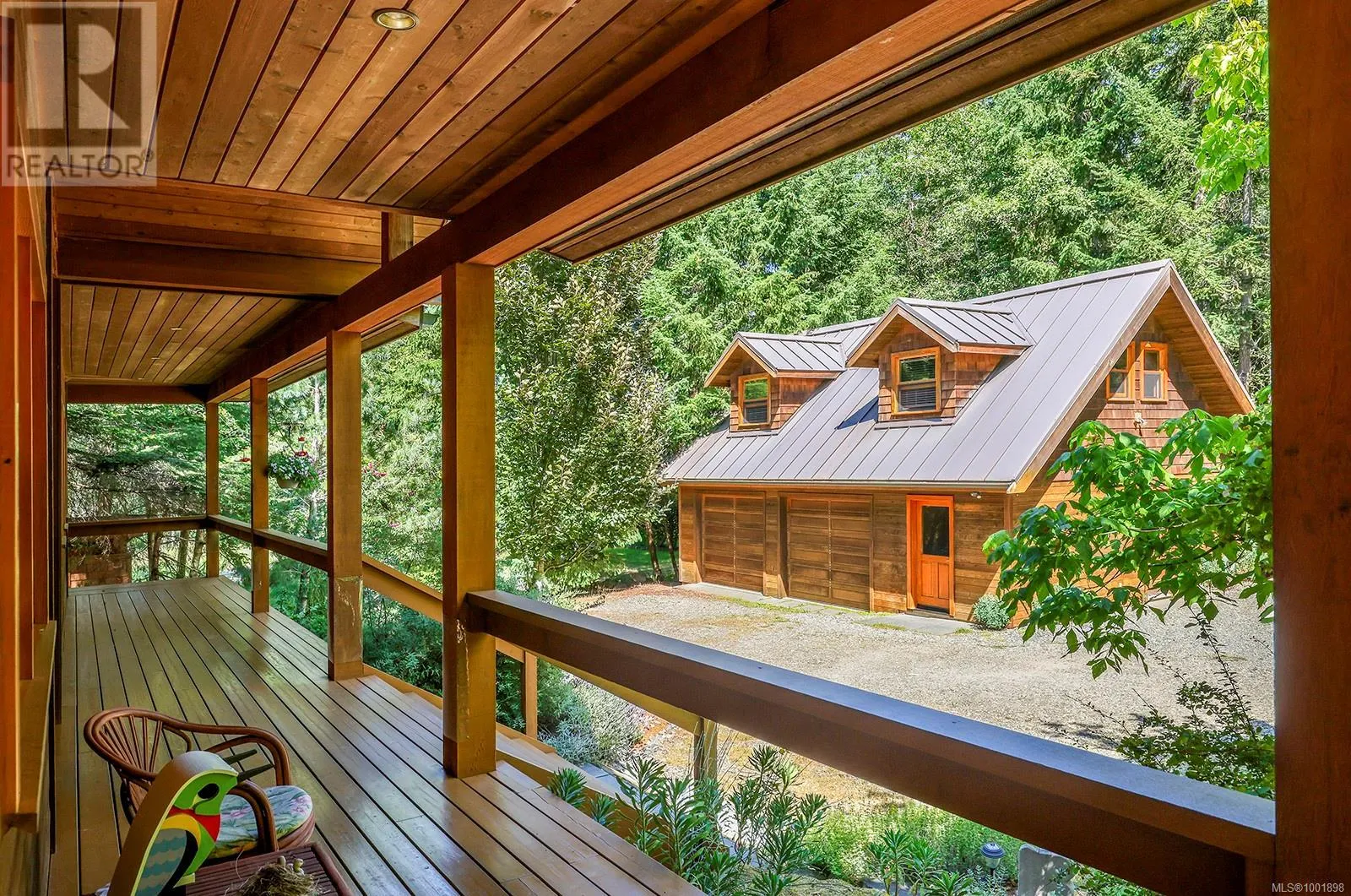 Discover timeless elegance and West Coast charm in this stunning Craftsman-style home, nestled on 5.2 serene acres bordering Mt. Geoffrey Park. Whether you're seeking a peaceful family retreat or envisioning a boutique B&B, this exceptional property offers endless potential. Step onto the welcoming wrap-around covered porch and enter a home defined by thoughtful craftsmanship and natural beauty. The gourmet kitchen is a chefâs dream, boasting granite countertops, custom cabinetry, stainless steel appliances, and a propane 6-burner stove. The open-concept main living area is rich with character: fir beams, solid oak floors, and handcrafted trims made from reclaimed trestle timbers tell a story of heritage and heart. A floor-to-ceiling stone fireplace provides a cozy focal point for gatherings. The main floor offers a spacious primary suite with a luxurious marble ensuite, alongside a generous den perfect for a home office or library. Upstairs, two large bedroomsâeach with a private ensuite featuring marble, granite, or travertineâprovide comfort and privacy for family or guests. A two-bay garage offers ample space for hobbies, while the charming carriage house above is ideal for extended family, guests, or studio space. Outside, enjoy lush gardens, a greenhouse, and fenced fruit and vegetable bedsâall surrounded by a tranquil mix of forest and meadow. Peaceful sitting areas throughout the property invite you to connect with nature in every season. (id:27476)