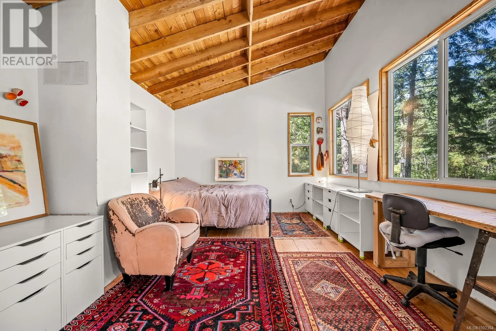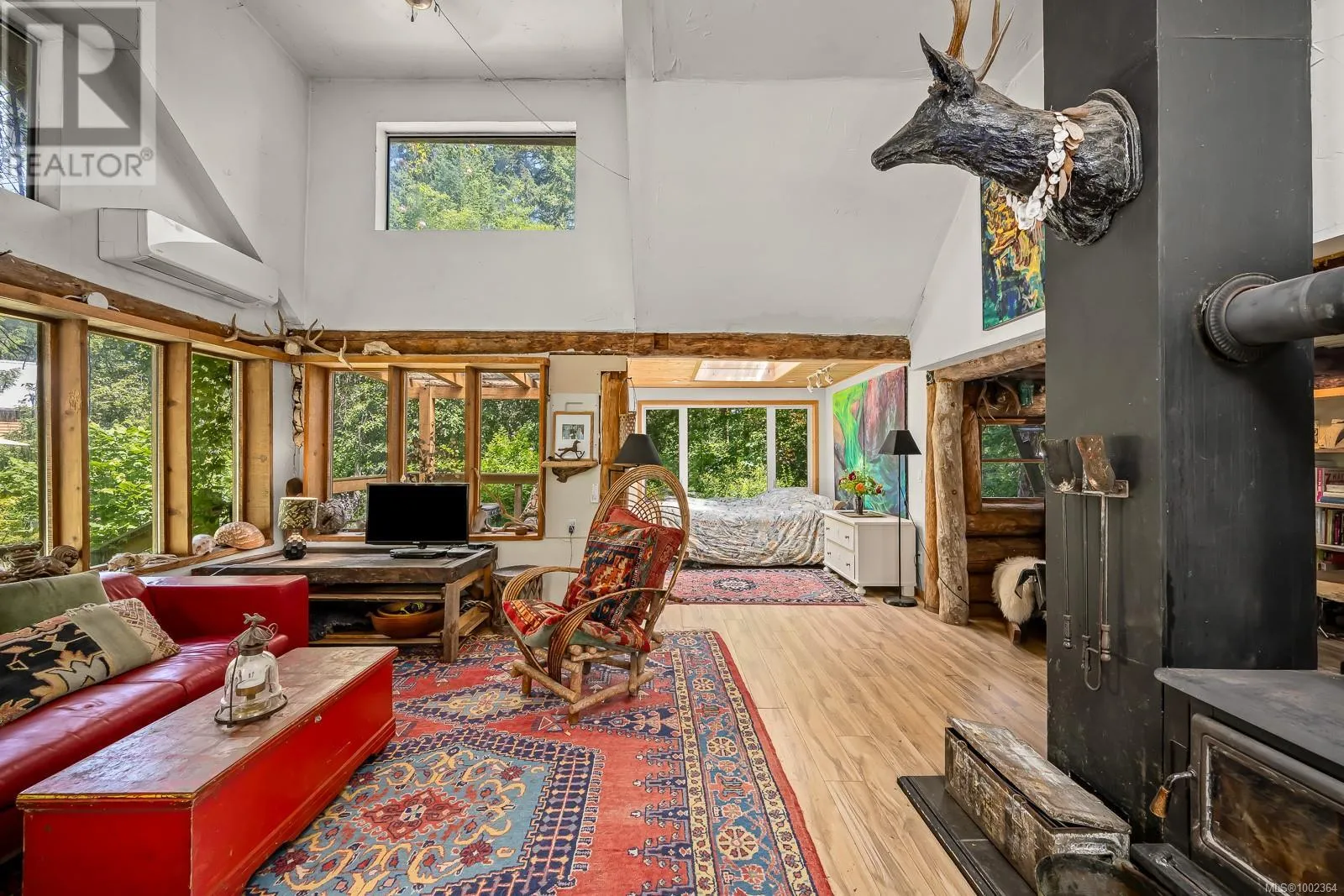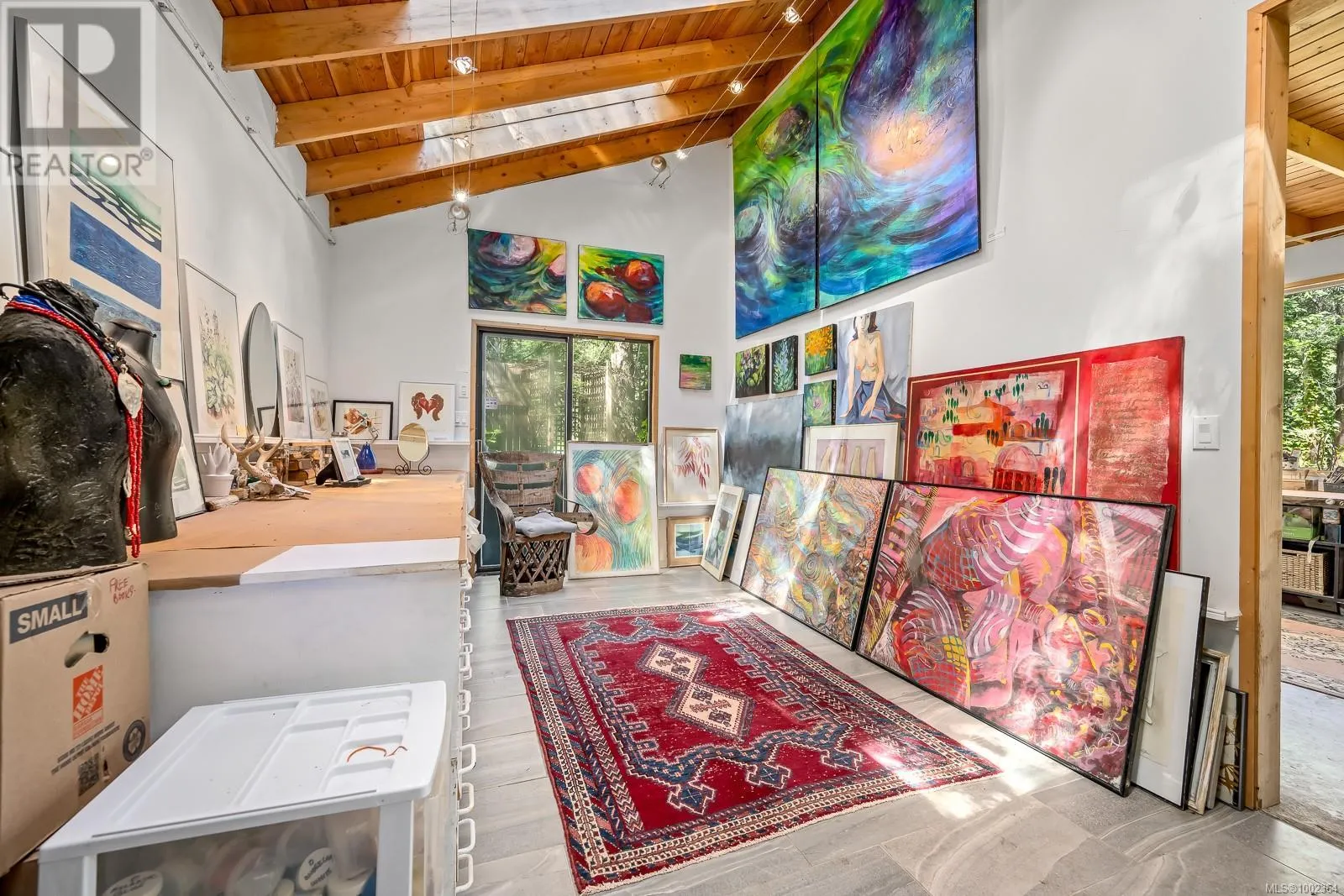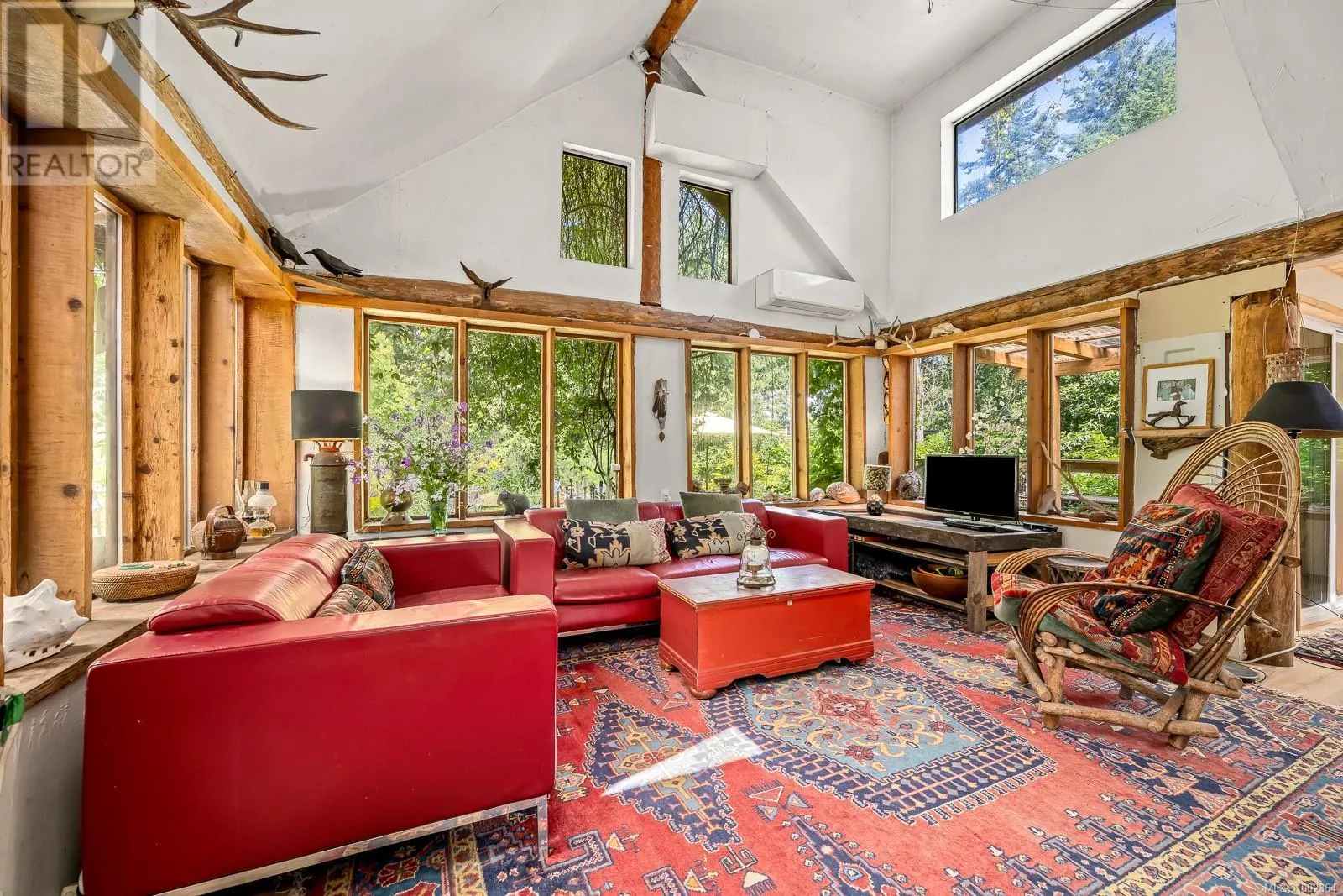 This versatile 0.591-acre property blends natural beauty with practical space, making it ideal for artists, gardeners, or families seeking a peaceful and/or active lifestyles. Terraced landscaping offers privacy, with beautiful flowering gardens, a tranquil pond, mature fruit trees, and greenhouses. The main residence features vaulted ceilings in an open-concept layout, a recently updated kitchen, and a heat pump. Fireplaces offer cozy living in winter while outdoor spaces provide settings for summer family gatherings. The detached artistâs studio is a modern, well-built, private space perfect for creative work or a home-based business, with its own entrance and parking. Additional features include a drilled well, two cisterns, a rainwater collection and septic systems. Whether you're nurturing creativity, running a home business, or looking to enjoy the many beaches, mountain bike and hiking trailsâthis property offers flexibility, functionality, and room to grow. (id:27476)