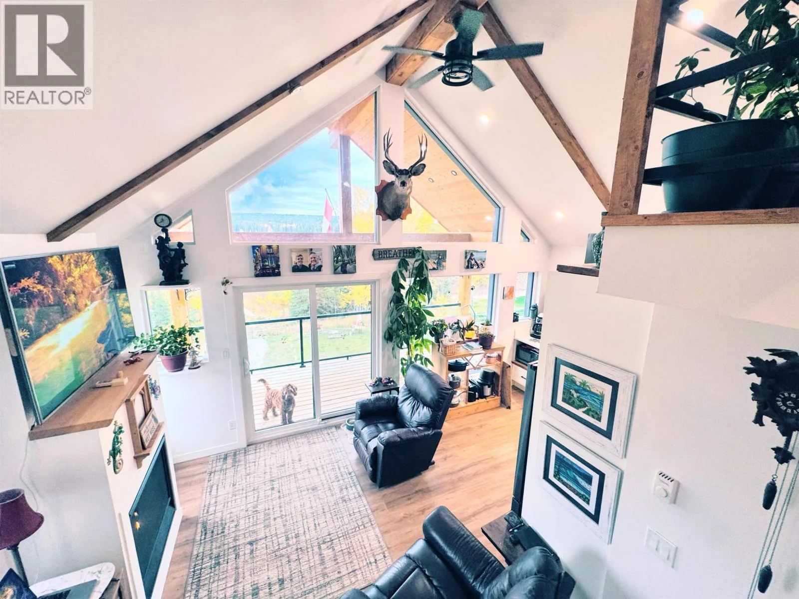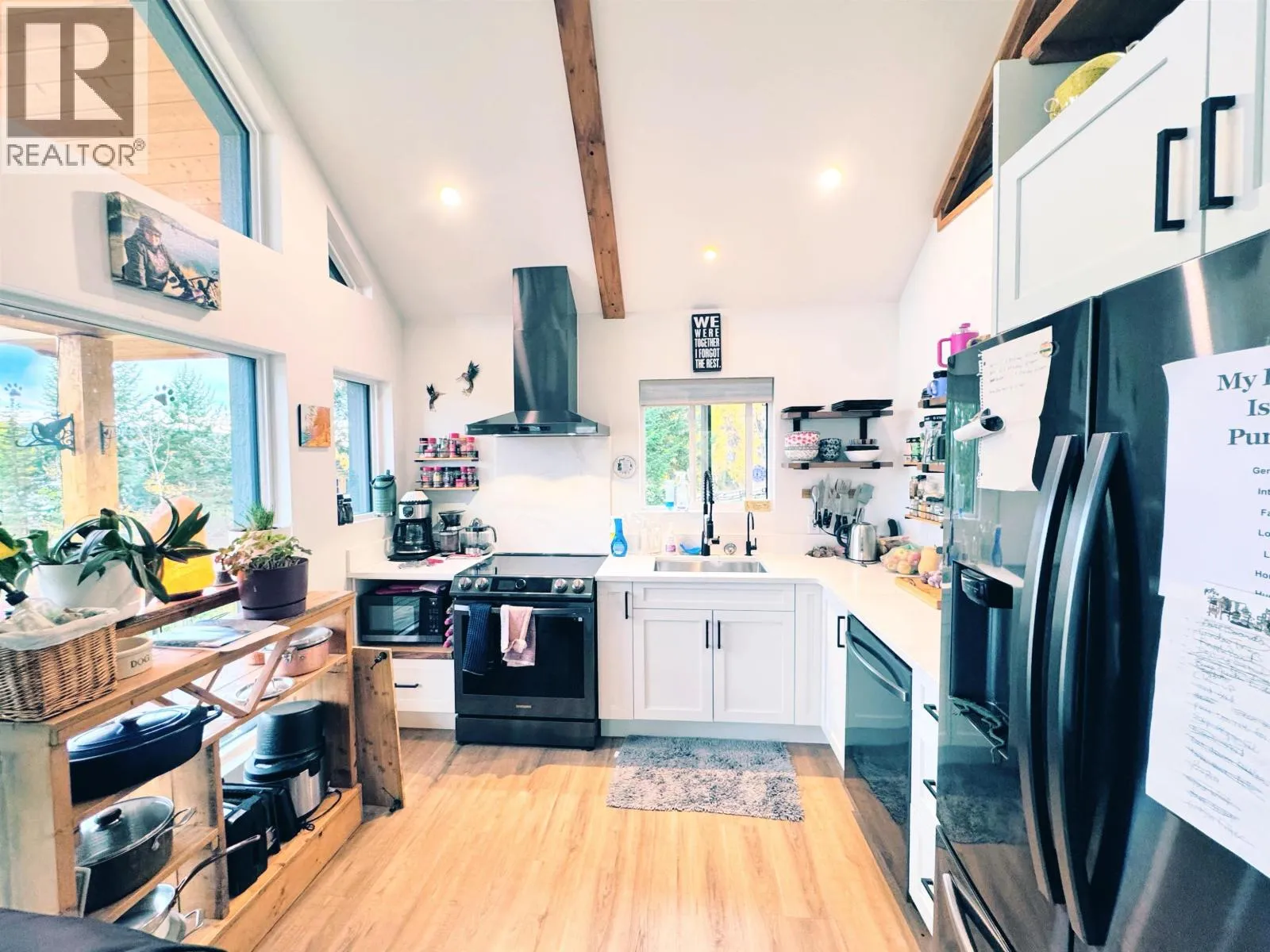 Nestled on 5 acres of pristine Horse Lake waterfront, this stunning property offers the perfect balance of modern comfort and natural beauty. The nearly new 2-bedroom home with loft showcases fresh, modern finishes throughout â from the stylish kitchen and bright open-concept living area to the expansive decks. Take in peaceful lake views from the large sundeck or unwind under the covered deck, perfect for morning coffee or evening sunsets. The property is fenced for dogs and includes a detached heated yoga studio or guest bunkie, ideal for creative space, home office, or year-round accommodation. Wander along private forest trails under old-growth fir trees, launch your kayak or boat from the private dock, or simply relax and listen to the quiet sounds of nature. (id:27476)