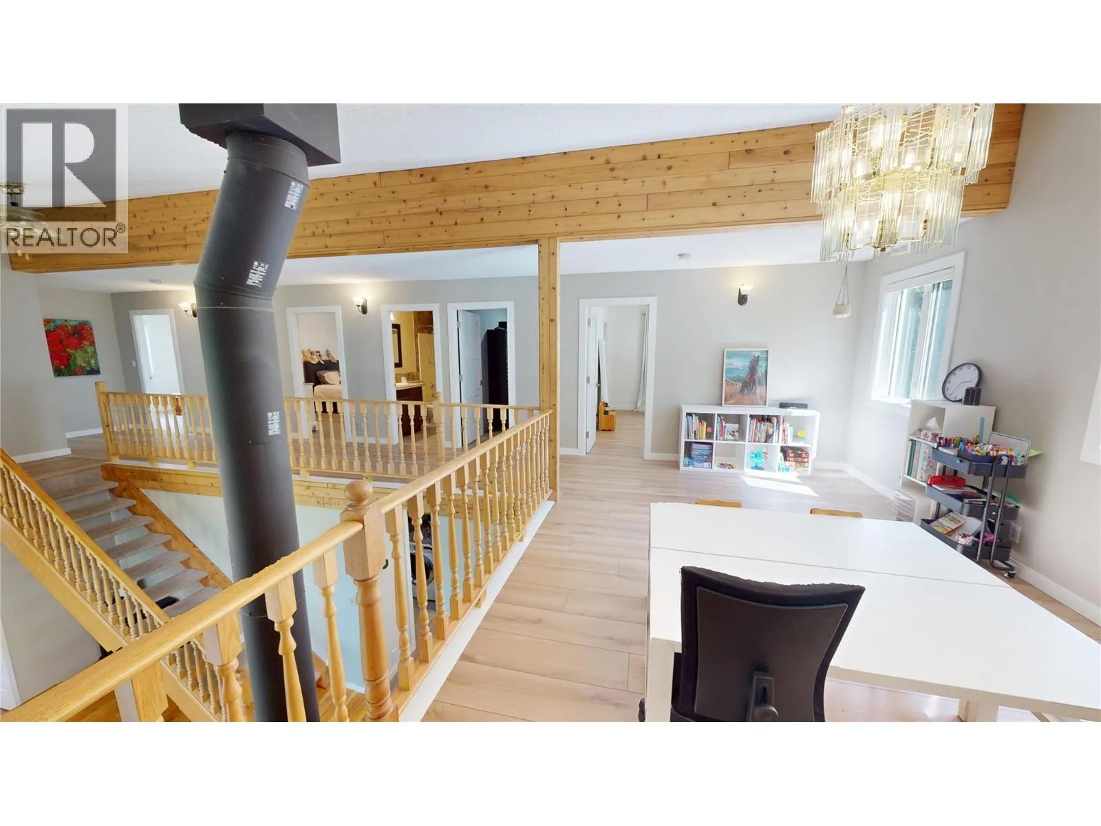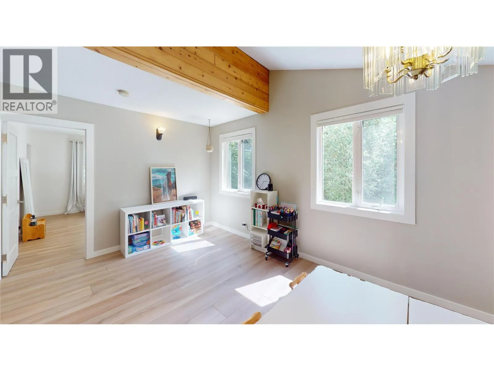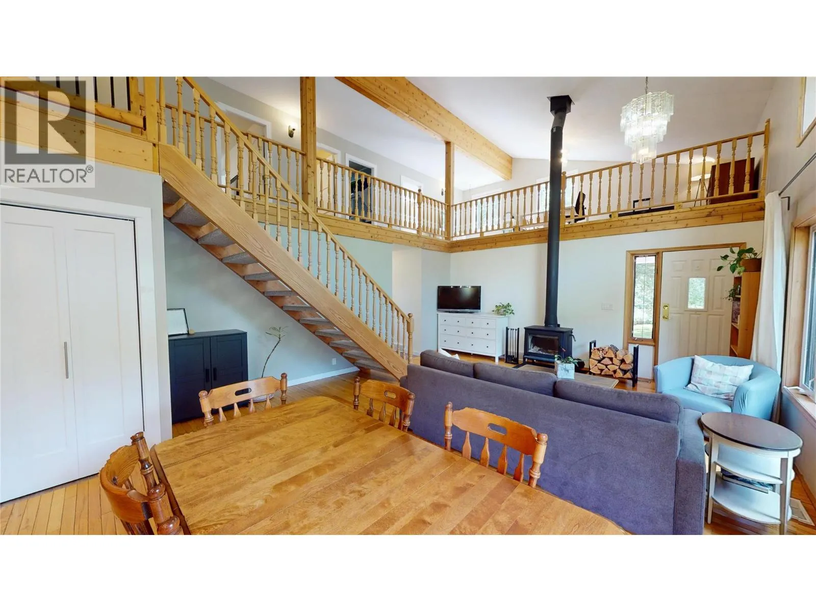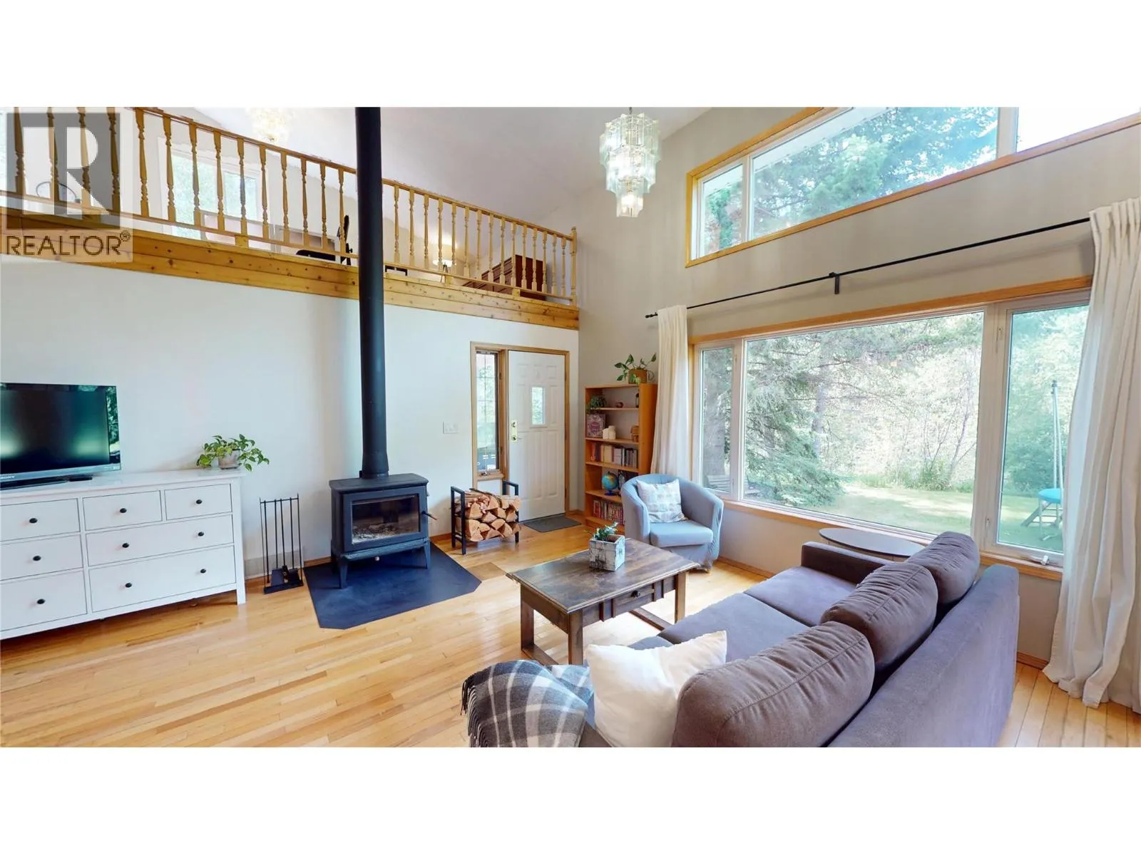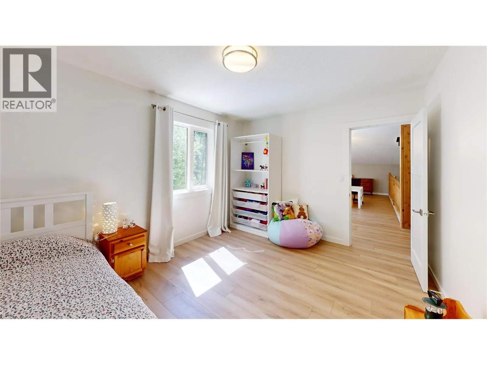 Beautiful Custom-Built Family Home on Over an Acre! Welcome to this stunning 5-bedroom, 2-bathroom family home, perfectly nestled on a serene 1.095-acre lot backing onto crown land, just steps from the Elk River. Thoughtfully designed with an open-concept layout and expansive windows, this bright, inviting home is filled with natural light and offers peaceful views of the park-like setting and Hosmer Mountain! The impressive vaulted great room features a cozy wood-burning fireplace and patio doors that lead to a private, tree-lined backyard. The spacious kitchen flows seamlessly to the dining area, creating the perfect space for entertaining. The main level includes one bedroom, a full bathroom, laundry, and access to a recently upgraded secluded back deck, built with pressure-treated wood. Upstairs, a charming loft overlooks the great room, alongside four additional bedrooms, including a spacious primary suite with a walk-in closet and access to a full bathroom. Even more, brand new luxury vinyl plank has just been masterfully installed on this level! Additional features include an attached double car garage, wood storage shed, access to nature trails, and the tranquility of country living just minutes from town amenities. This is the ideal family home for families seeking space, comfort, and a connection to nature. (id:27476)
