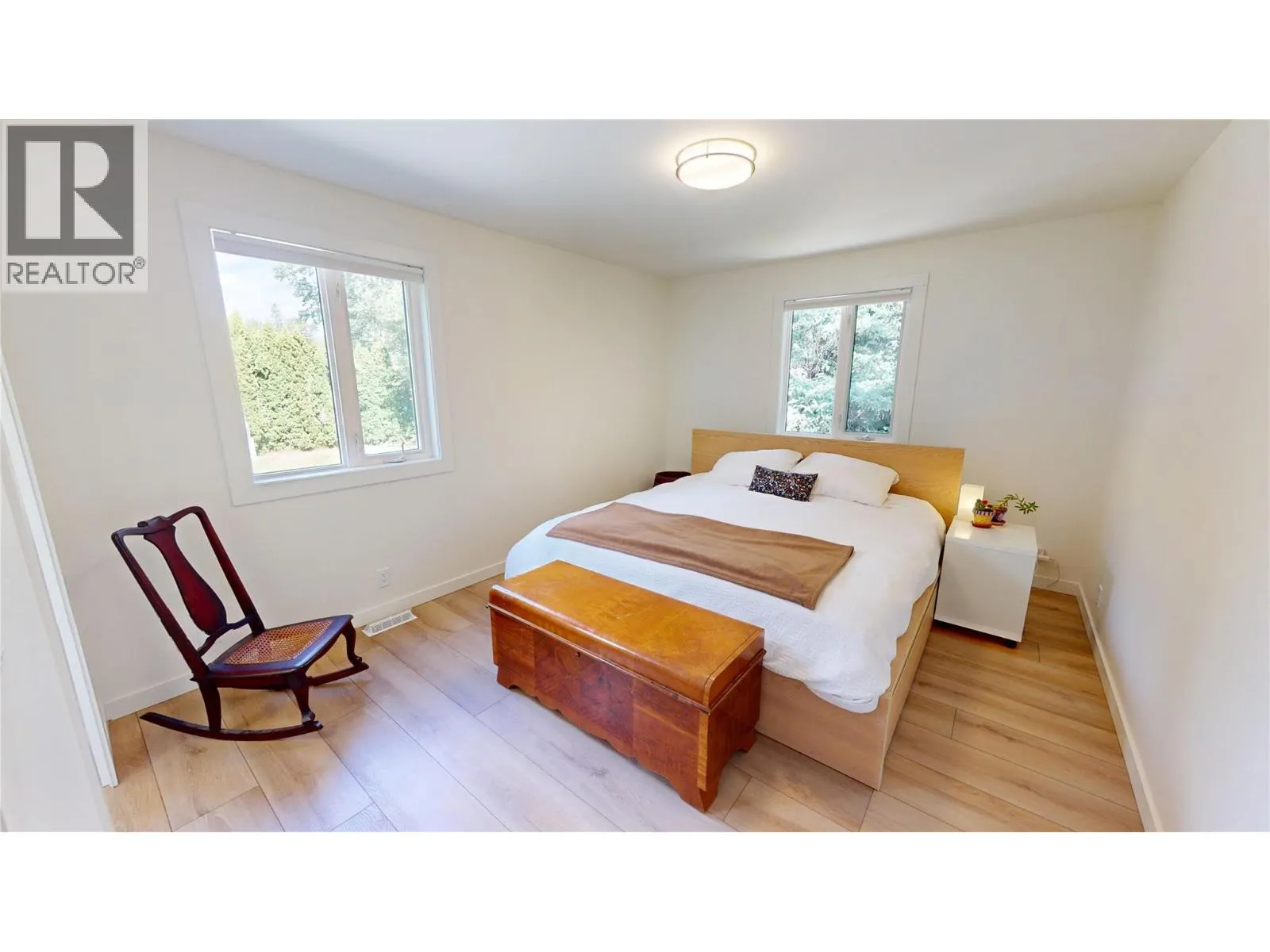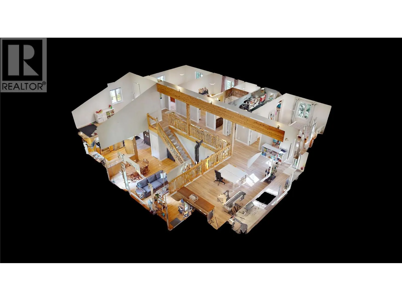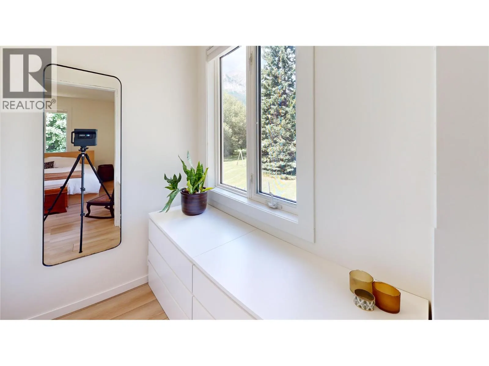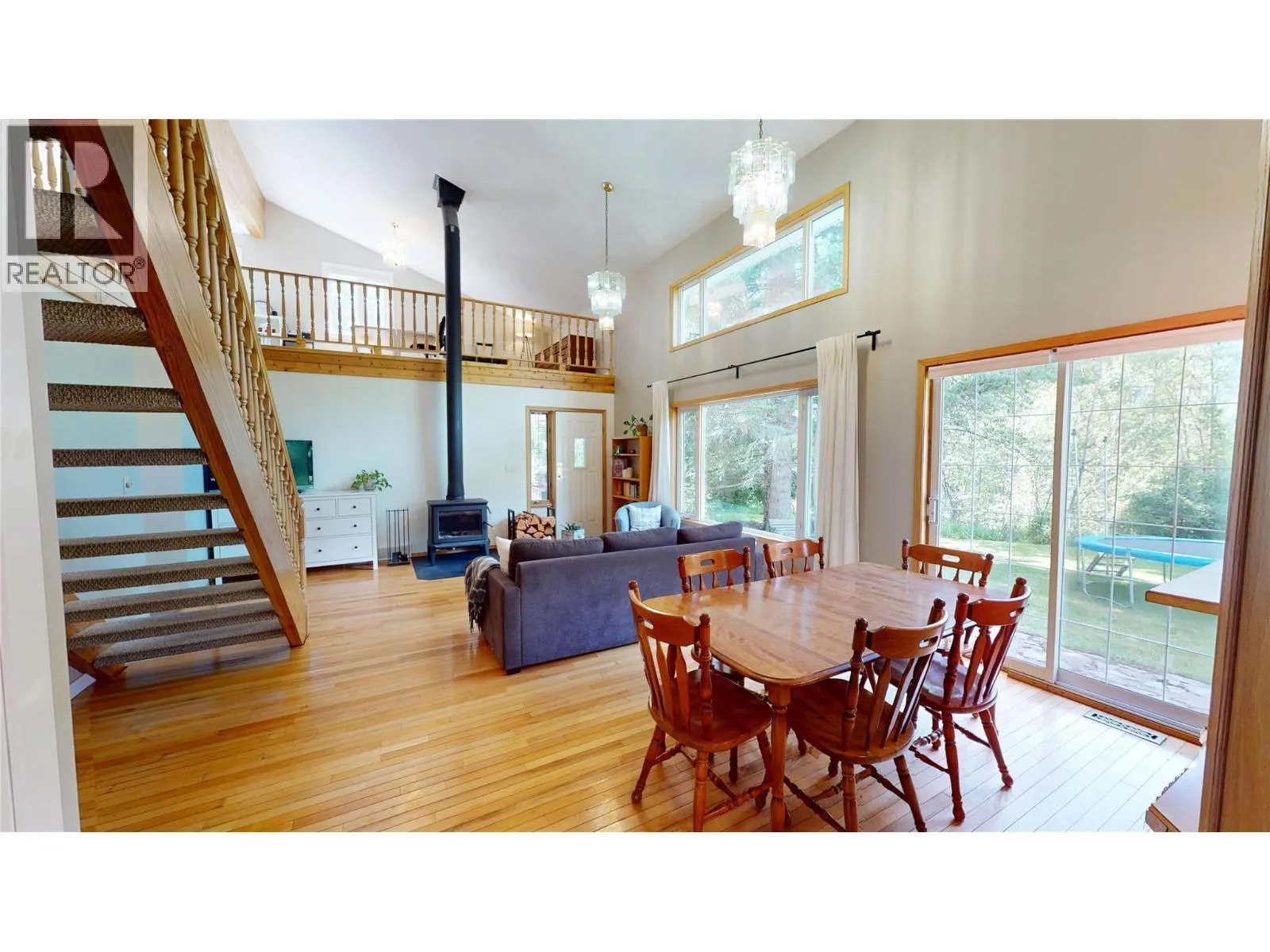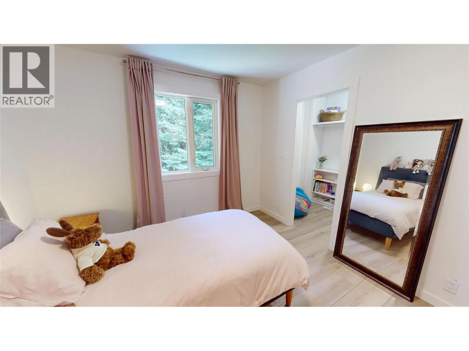 Beautiful Custom-Built Family Home on Over an Acre! Welcome to this stunning 5-bedroom, 2-bathroom family home, perfectly nestled on a serene 1.095-acre lot backing onto crown land, just steps from the Elk River. Thoughtfully designed with an open-concept layout and expansive windows, this bright, inviting home is filled with natural light and offers peaceful views of the park-like setting and Hosmer Mountain! The impressive vaulted great room features a cozy wood-burning fireplace and patio doors that lead to a private, tree-lined backyard. The spacious kitchen flows seamlessly to the dining area, creating the perfect space for entertaining. The main level includes one bedroom, a full bathroom, laundry, and access to a recently upgraded secluded back deck, built with pressure-treated wood. Upstairs, a charming loft overlooks the great room, alongside four additional bedrooms, including a spacious primary suite with a walk-in closet and access to a full bathroom. Even more, brand new luxury vinyl plank has just been masterfully installed on this level! Additional features include an attached double car garage, wood storage shed, access to nature trails, and the tranquility of country living just minutes from town amenities. This is the ideal family home for families seeking space, comfort, and a connection to nature. (id:27476)