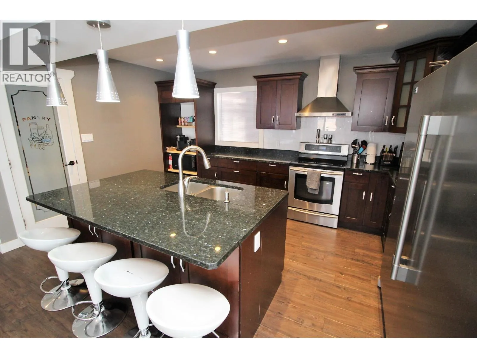 * PREC - Personal Real Estate Corporation. Newer than most! 2011 custom-built 4 bdrm family home centrally located in downtown neighborhood. Convenient main floor living w/ primary bdrm, kitchen, living rm, mudroom & laundry on main! Close to health centre, senior's centre, library, park, shopping, pool/arena & schools. Private fenced yard, nice landscaping, sundeck & wrap around veranda! Spacious open concept kitchen/dining/living rm. Huge kitchen island w/breakfast bar, granite countertops, dark cabinets, modern fixtures, S/S appliances, & large pantry. Spacious living rm w/ durable vinyl plank floors & electric fireplace. Main foyer entry plus large mud rm back entry w/laundry. MB suite on main w/walk-in closet, full ensuite & garden doors to sundeck. Large family rm upstairs w/3 bdrms & full bath. Appl. incl. Hot tub negotiable (id:27476)
