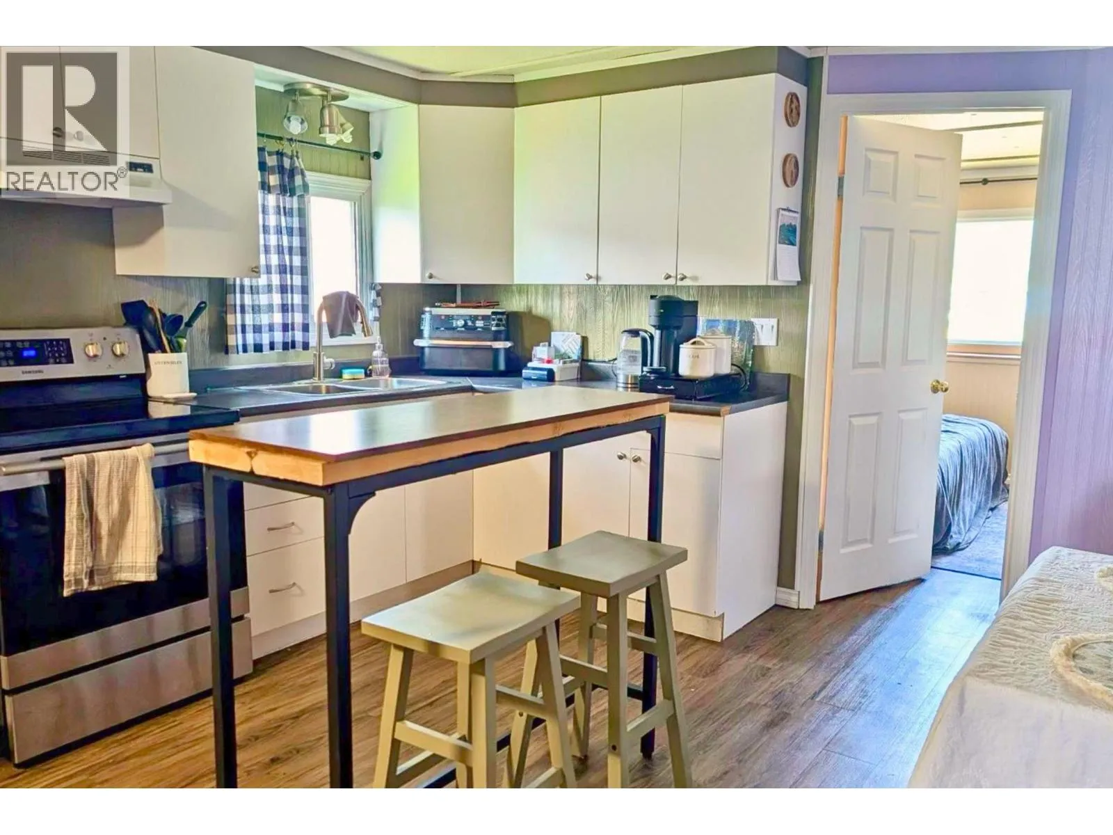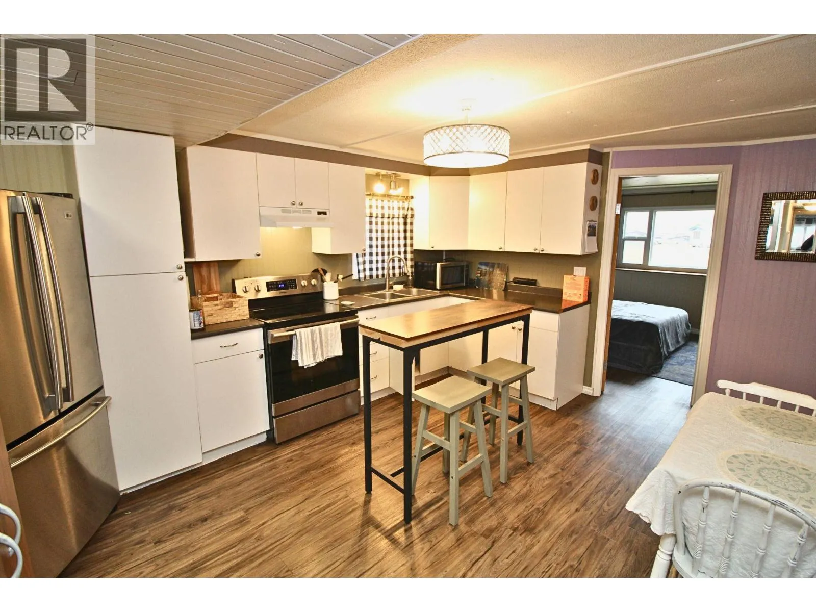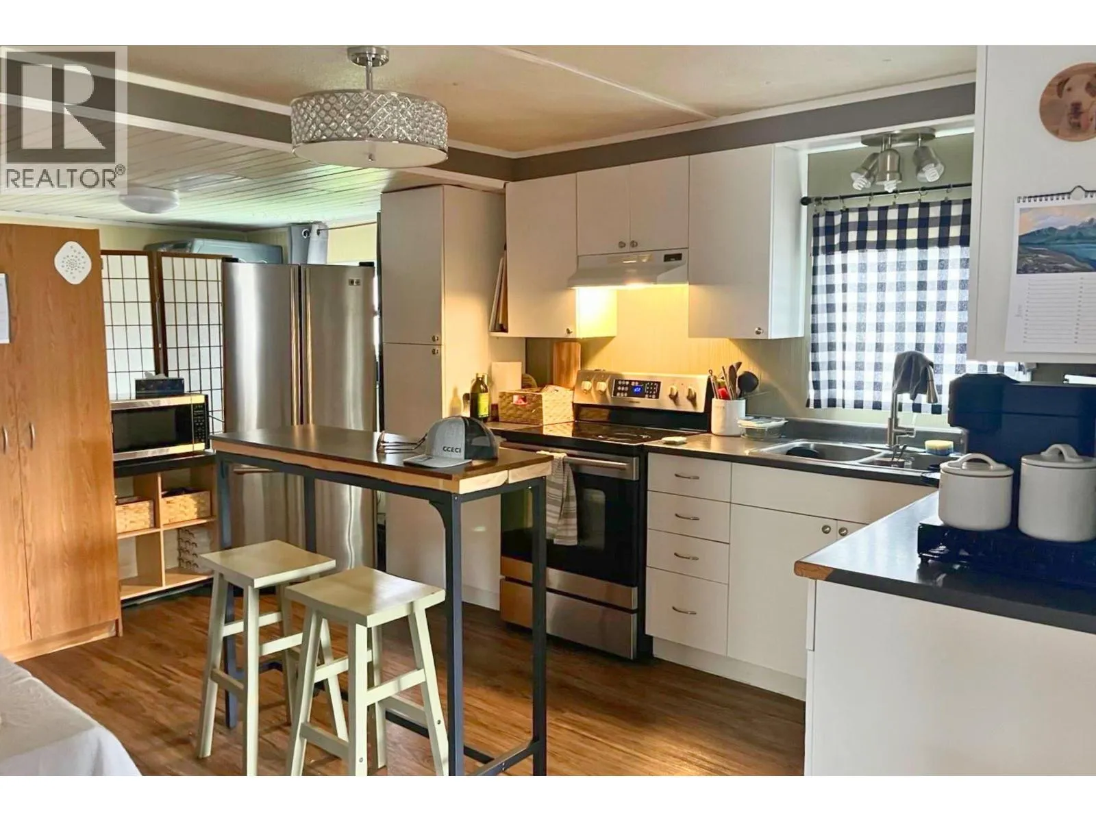 * PREC - Personal Real Estate Corporation. Affordable, cozy 2 bedroom mobile home with addition situated in the nicest part of Ambassador Manufactured Home Park backing onto a large field with a great view. Fenced yard with firepit overlooks the field, handy storage shed, sundeck, & covered parking. Spacious entry, large livingroom with certified pellet stove and patio door access to backyard sundeck. Updated flooring and paint, roof shingles appear to be in good condition. Electrical updates throughout in 2024 to obtain silver label. Plumbing lines re-done in 2025, new heat tape underneath, hotwater tank- 2018. Nicely set up kitchen with SS Fridge and stove. Electric baseboards and electrical wall heater unit plus axillary pellet stove. Current pad rent: $333/mo. Appliances, carport tent included. Quick Possession Available! (id:27476)