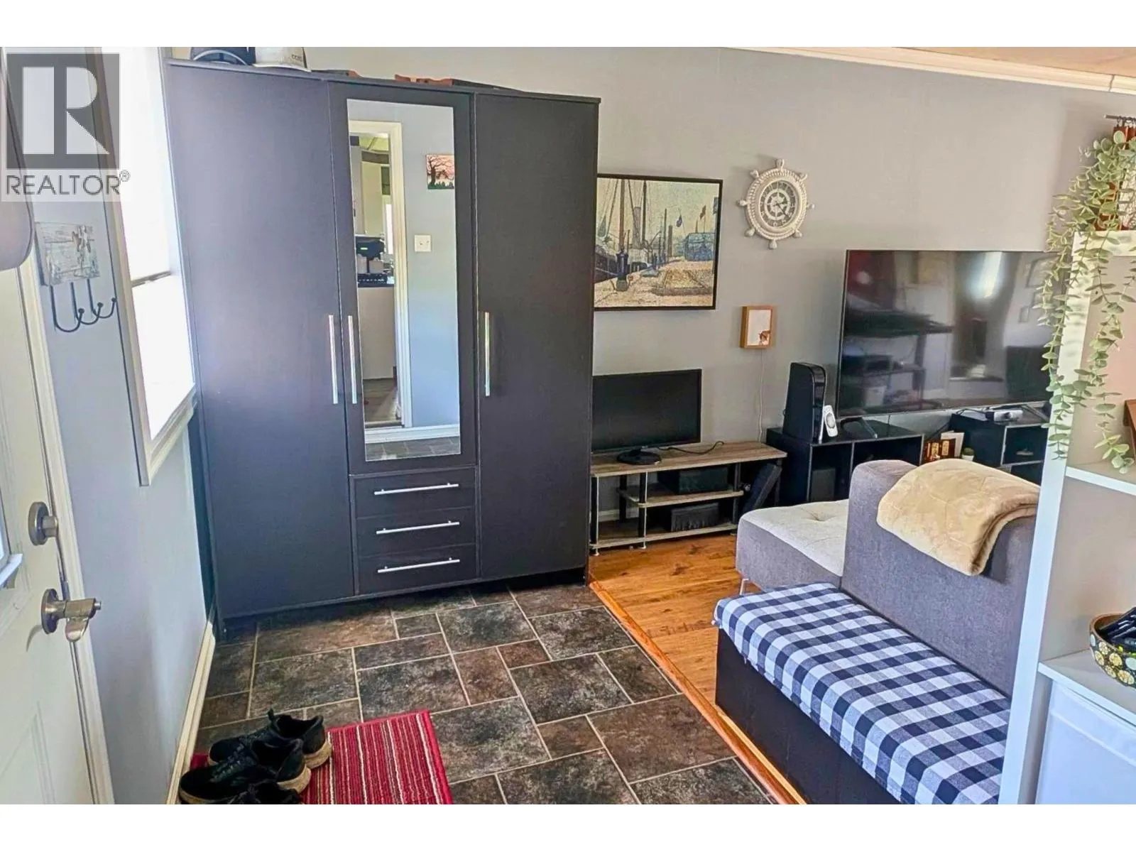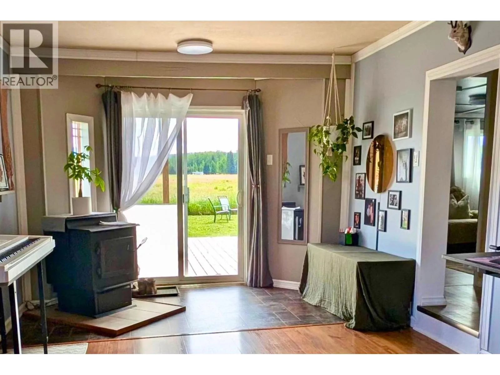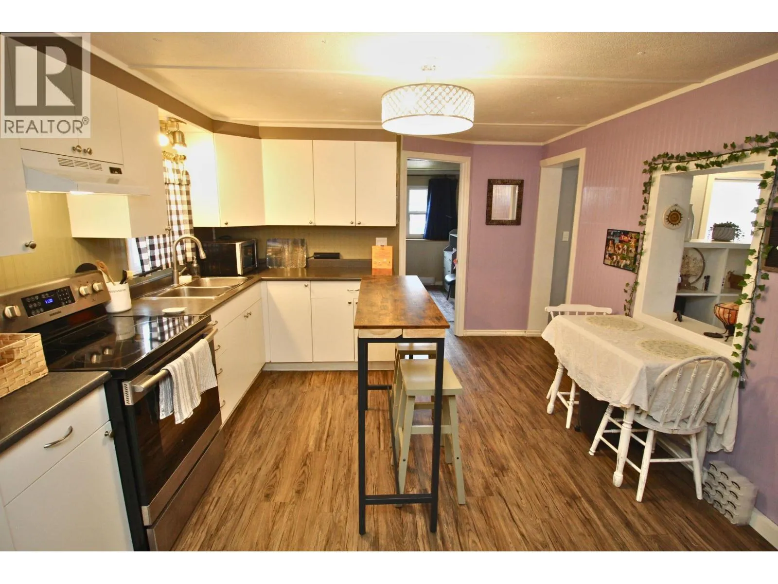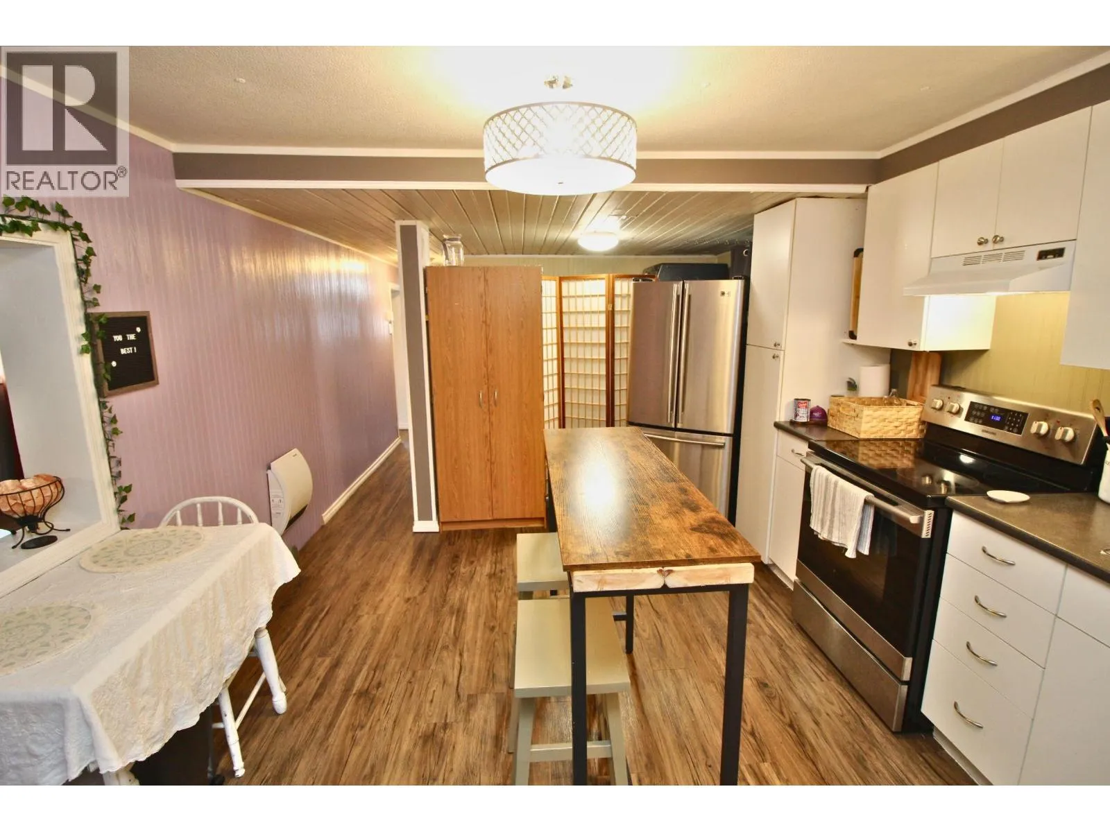 * PREC - Personal Real Estate Corporation. Affordable, cozy 2 bedroom mobile home with addition situated in the nicest part of Ambassador Manufactured Home Park backing onto a large field with a great view. Fenced yard with firepit overlooks the field, handy storage shed, sundeck, & covered parking. Spacious entry, large livingroom with certified pellet stove and patio door access to backyard sundeck. Updated flooring and paint, roof shingles appear to be in good condition. Electrical updates throughout in 2024 to obtain silver label. Plumbing lines re-done in 2025, new heat tape underneath, hotwater tank- 2018. Nicely set up kitchen with SS Fridge and stove. Electric baseboards and electrical wall heater unit plus axillary pellet stove. Current pad rent: $333/mo. Appliances, carport tent included. Quick Possession Available! (id:27476)