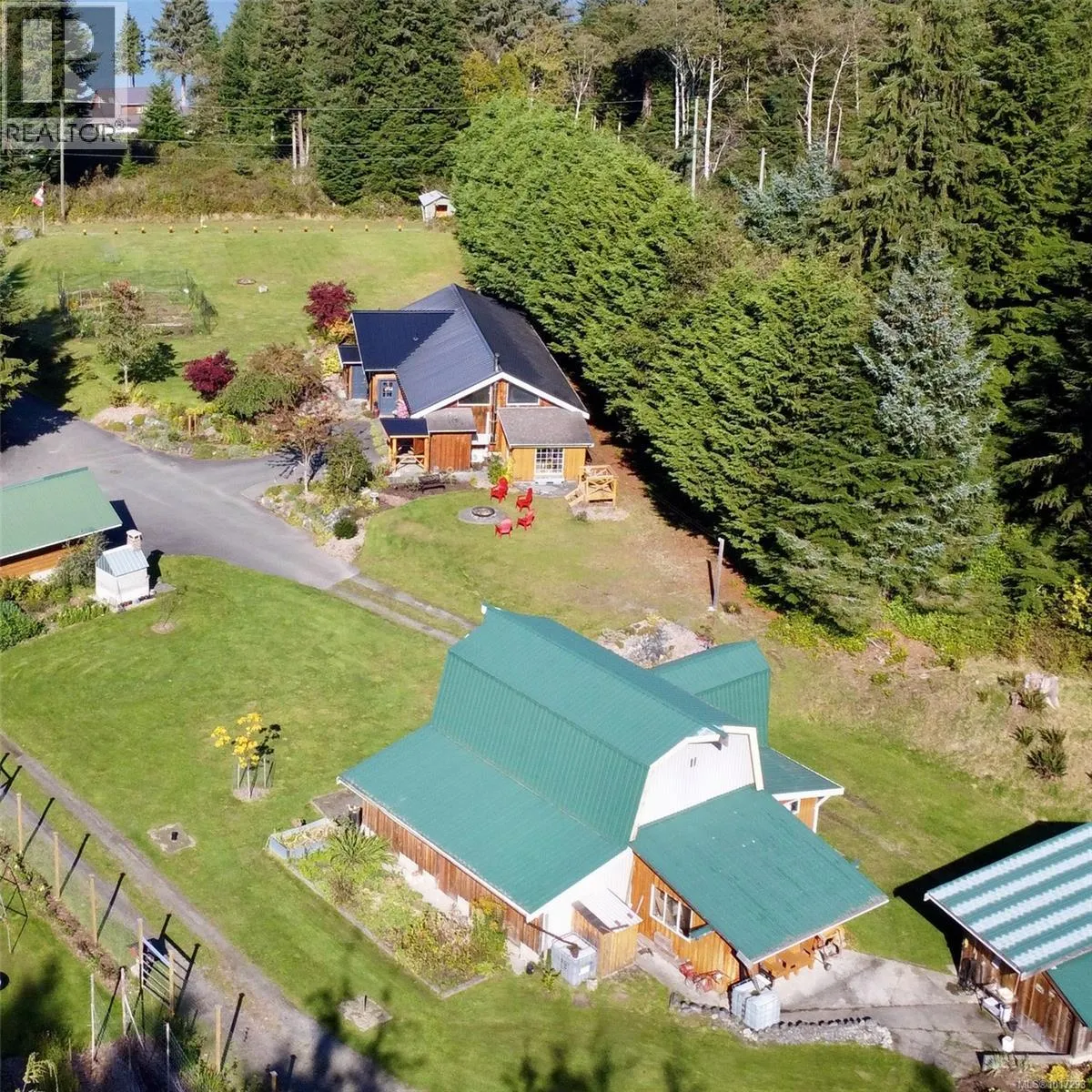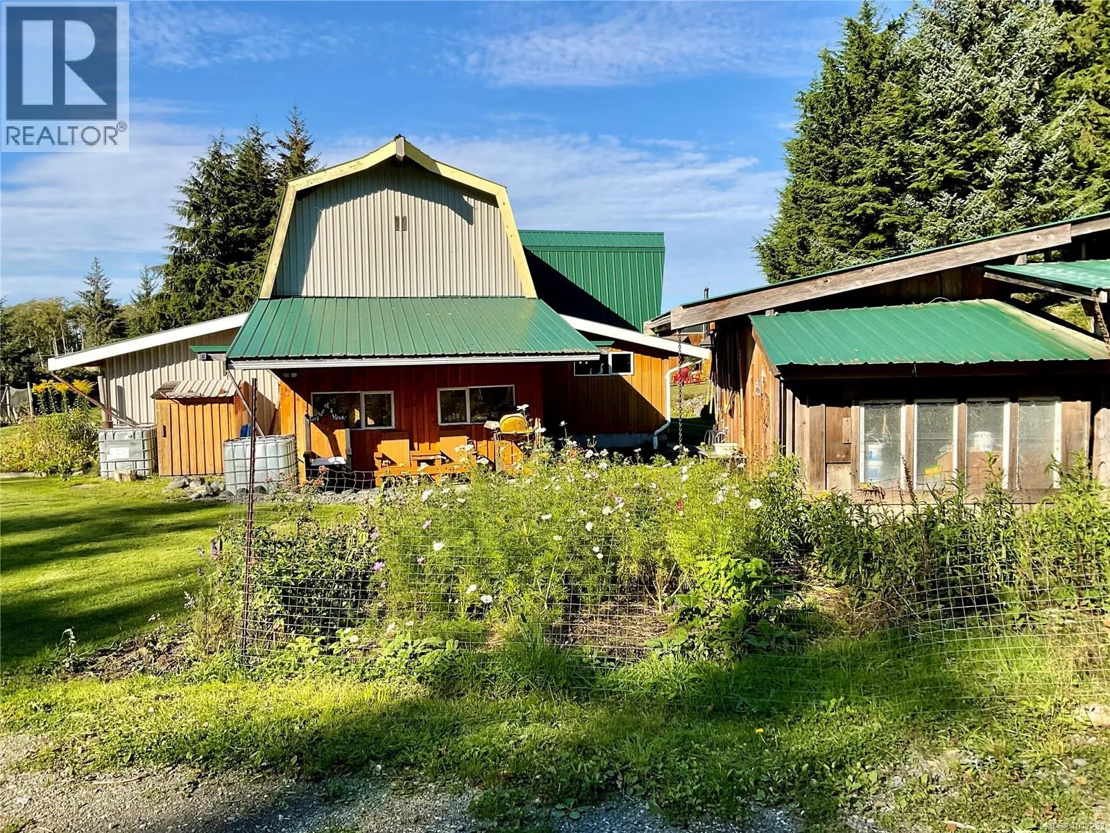 Check out 885 Lanqvist Rd in picturesque Hyde Creek, where craftsmanship, natural abundance, and coastal serenity unite on nearly two acres of ocean-view land. Ideal for those seeking a blend of coastal living and rural independence, this property will appeal to gardeners, equestrians, hobby farmers, and anyone drawn to a peaceful, self-sustaining lifestyle. This 1.5-storey home (built 1999, addition 2018) blends artistry and comfort, featuring cedar, spruce, and fir shiplap throughout. The 3-bed, 2-bath residence offers an airy, open layout filled with light and Pacific views. Enjoy a Blaze King wood stove (WETT inspected), heat pump (2022), and warm fir-edge-grain kitchen floors that add timeless character. Every detail reflects care and thoughtful design, from fine joinery to windows framing vibrant perennial, bulb, and ornamental gardens, and thoughtfully placed cisterns throughout the grounds ensure an easy, reliable water supply for maintaining the lush gardens and seasonal blooms. The property celebrates the richness of the landâmature trees, fertile soil, and established plantings that burst with colour through the seasons. A timber-frame barn (2003) features three powered stalls with plumbing, concrete floors, and hayloft storageâideal for horses or versatile workshop use. Additional outbuildings include an insulated shop with large windows, a powered chicken coop, a greenhouse (2019), a patio bar (2021) with live-edge seating and aggregate terrace, a covered carport (2021) with glass roll-up door, and a powered woodshed. Connected to community sewer and served by a drilled well, this remarkable acreage offers flexibility for hobby farming, equestrian pursuits, gardening, or creative retreat living. The land itself provides generously, offering peace, productivity, and inspiration in equal measure. Here, ocean breezes mix with the scent of cedar and blooming flowersâa truly special North Island sanctuary where nature and craftsmanship flourish side by side. (id:27476)
