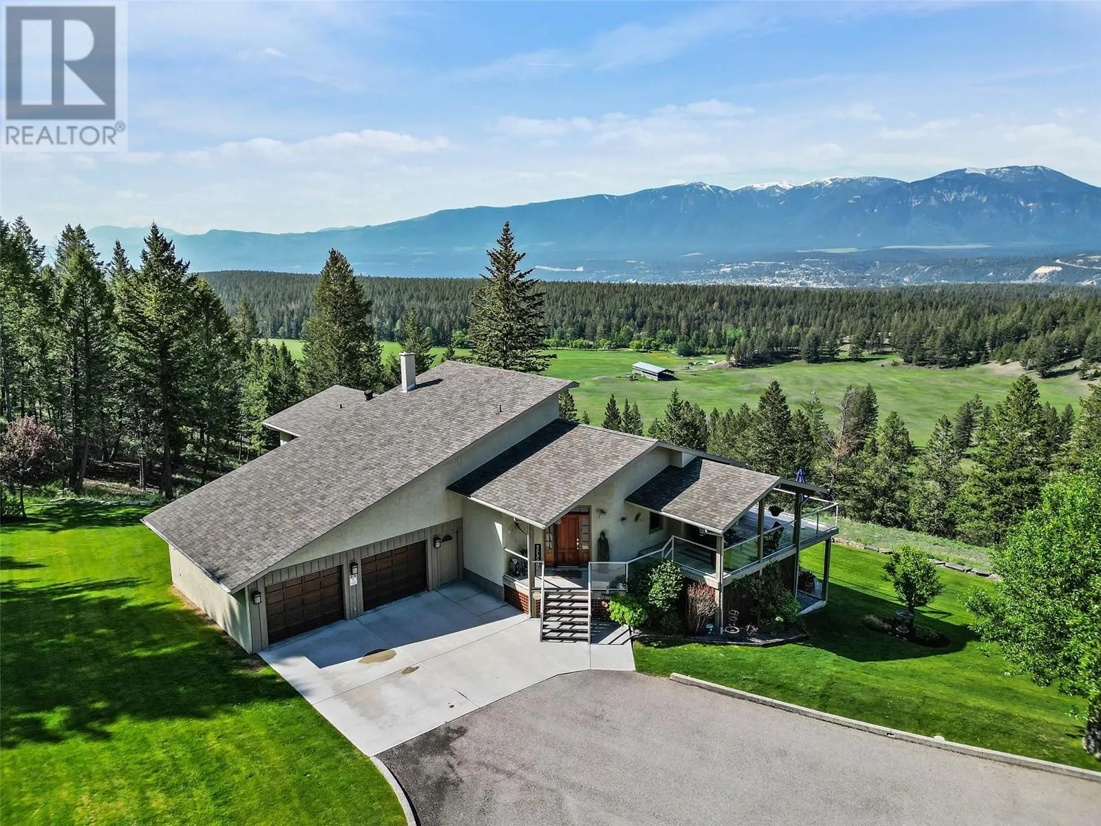 Looking for a private acreage with stunning views? Look no further! This luxury residence offers close to 4,000 sq ft of living space, five bedrooms and three bathrooms. Situated only 10 mins from town, this property offers unparalleled views of the mountains and valley below. As you step inside, you will be greeted by an aura of elegance and sophistication. The grand foyer sets the tone for the impeccable craftsmanship and attention to detail found throughout the home. The open-concept design seamlessly connects the living, dining, and kitchen areas, creating an ideal space for all your needs. The gourmet kitchen is a chef's dream, featuring top-of-the-line appliances, custom cabinetry, and a center island perfect for preparing and enjoying meals. The adjacent dining area offers a stunning panoramic view of the mountains. The master suite is a haven of tranquility, complete with a private en-suite bathroom, a massive walk-in closet. The additional bedrooms are generously sized. The accompanying bathrooms are meticulously designed, adorned with high-end finishes as well as floor heat. Beyond the interior, this remarkable 50 ac property offers an outdoor paradise including a hot tub, a large heated shop (31x46), lush landscaping complete with 9 zone irrigation system fed from the water rights of a nearby creek, well water with a 5000 gal reservoir, wood/electric furnace & a 15 acre meadow. Don't miss this opportunity and book a showing today! Brand new Furnace & Heat Pump. (id:27476)