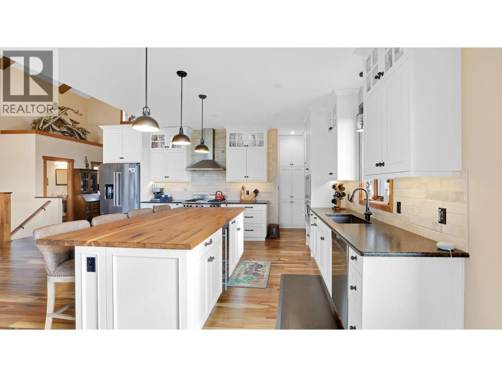 Welcome to 2621 Brewer Ridge Rise, a stunning custom home in Invermereâs prestigious Castlerock Estates, where exceptional craftsmanship meets breathtaking mountain and valley views. Built in 2019, this post-and-beam residence showcases quality at every turnâfrom its ICF construction and triple-pane windows to its refined interior finishes. The open-concept main floor features soaring vaulted ceilings and floor-to-ceiling windows that flood the space with natural light while framing panoramic vistas of the Rockies and Purcell Mountains. The chefâs kitchen impresses with custom cabinetry, leathered granite counters, and premium appliances, seamlessly connecting to the dining and living areas anchored by a striking stone fireplace. The primary suite offers a serene retreat with a luxurious ensuite and walk-in closet, complemented by private views. Downstairs, the fully finished lower level provides radiant-heated floors, a spacious recreation area, and two additional bedroomsâperfect for guests or family. Step outside to the expansive deck and take in the ever-changing mountain skyline, or enjoy quiet evenings in the beautifully landscaped yard. With an oversized heated garage and energy-efficient design, this home delivers both elegance and practicality. Situated on a generous corner lot close to Invermereâs lake, golf courses, and ski hills, 2621 Brewer Ridge Rise is the perfect balance of modern luxury, enduring quality, and the natural beauty of the Columbia Valley. (id:27476)