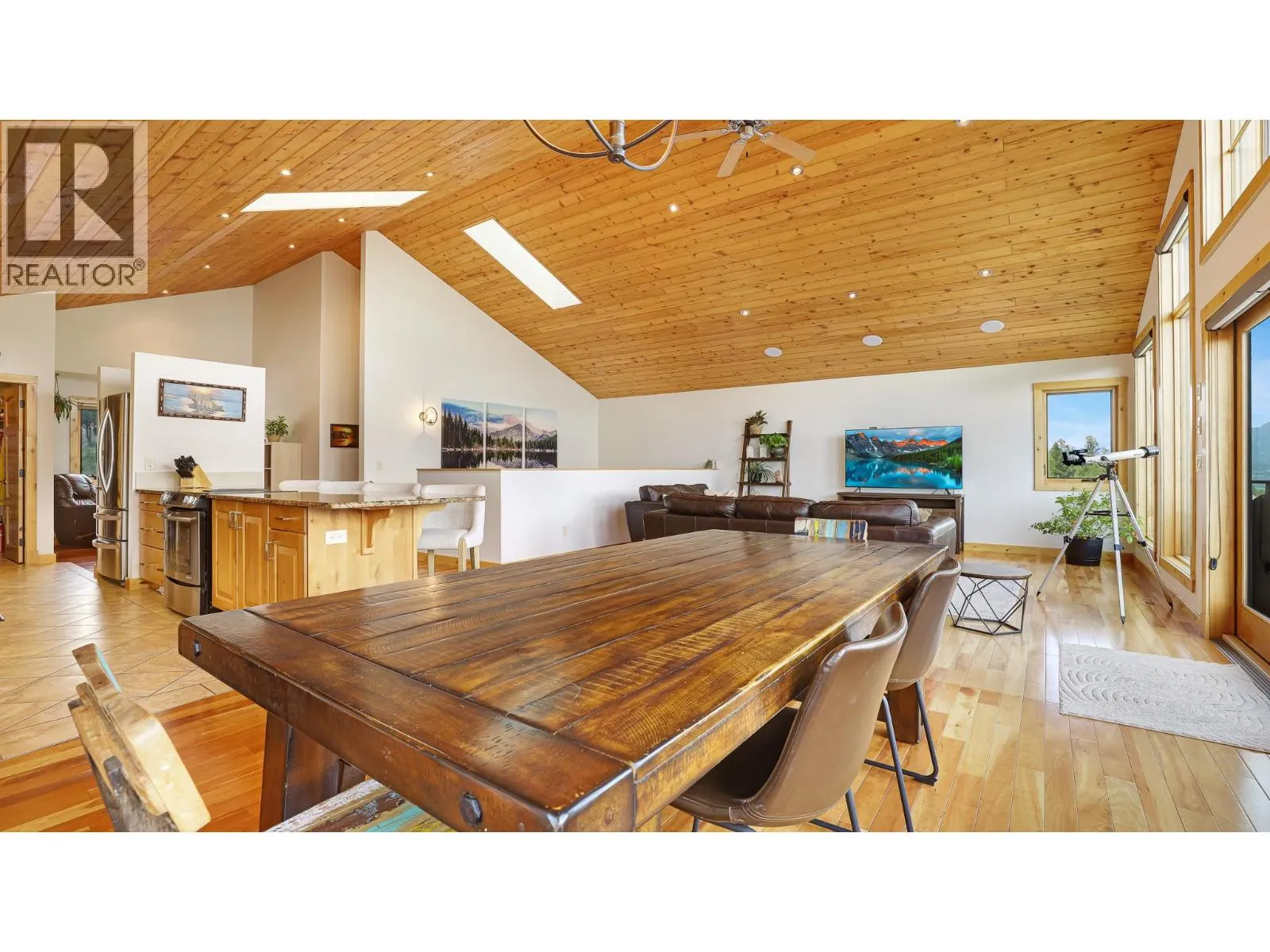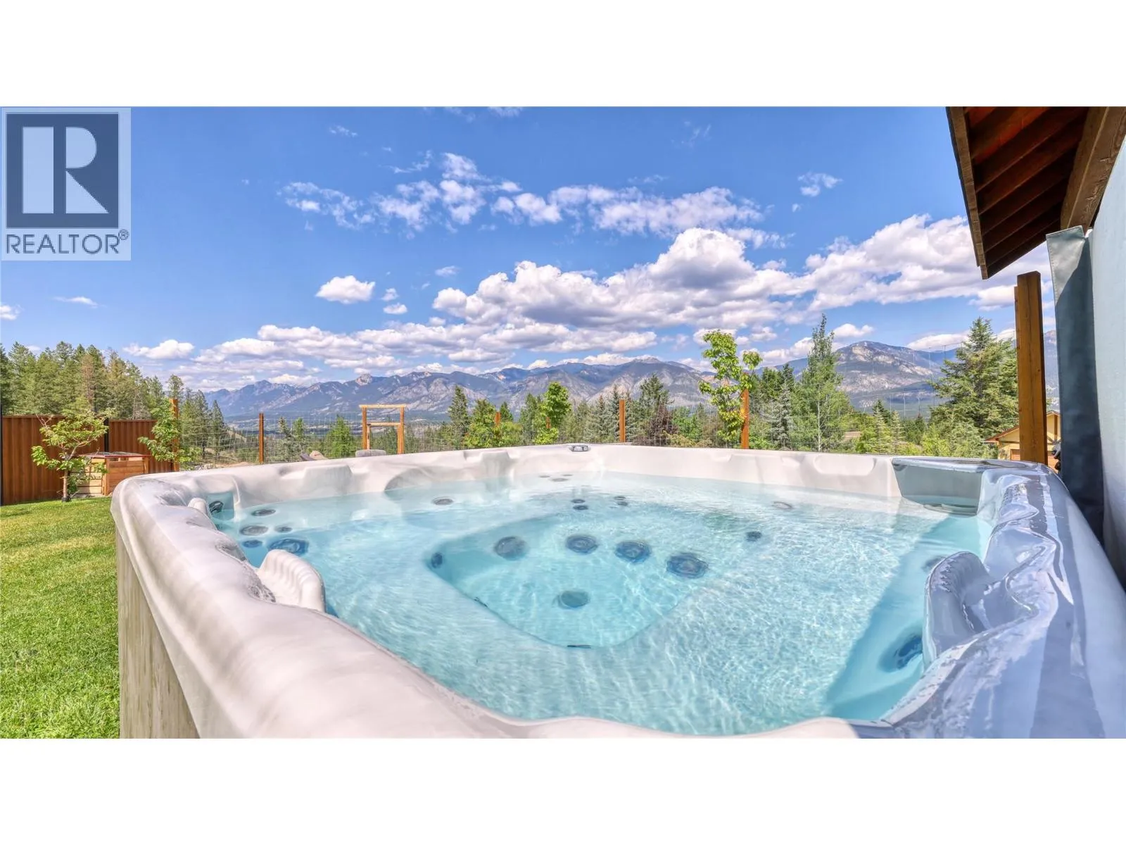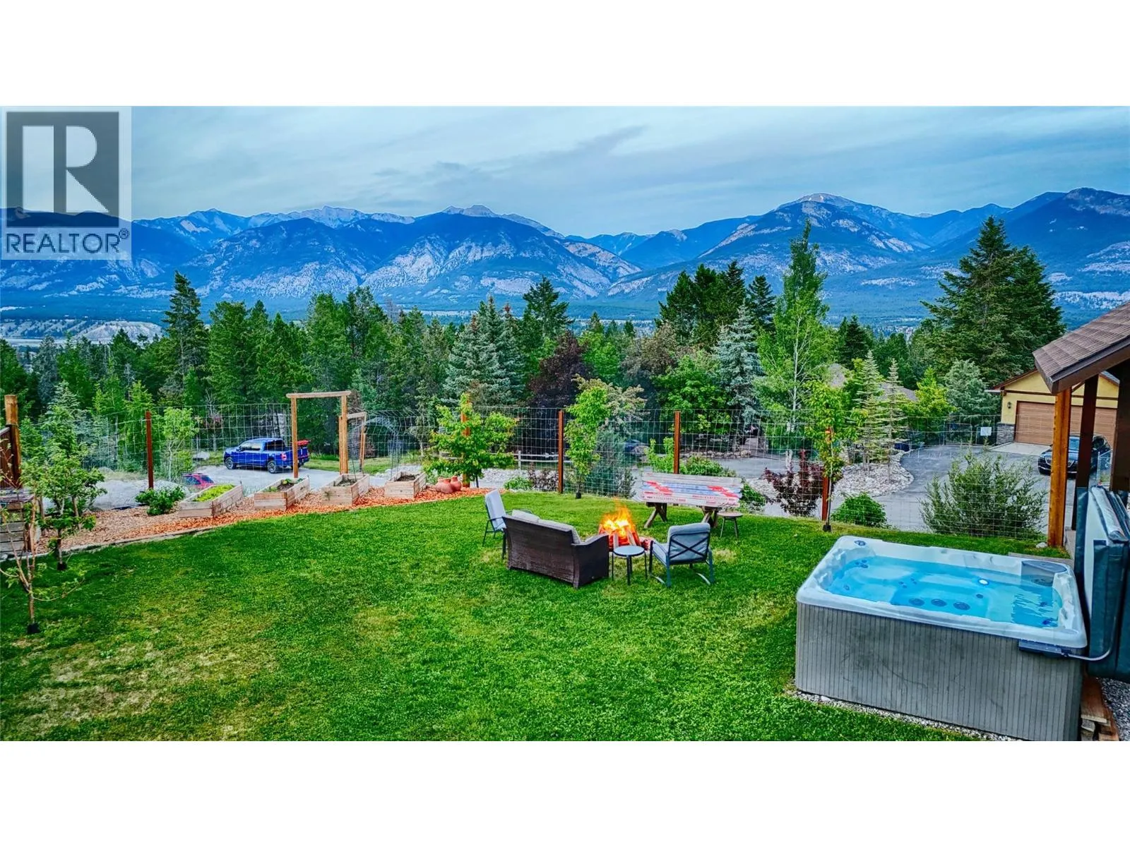 Where quality craftsmanship meets breathtaking views. This stunning 5-bedroom, 3-bathroom home sits in one of Invermereâs most desirable neighbourhoods, offering privacy, comfort, and panoramic vistas of the Rocky Mountains and Columbia Valleyâfrom Radium to Fairmont, with glimpses of Lake Windermere. Thoughtfully designed with high-end finishes throughout, the home features maple hardwood flooring, vaulted alder ceilings with skylights, and large-format ceramic tile in the kitchen and baths. The gourmet kitchen includes stainless steel appliances and flows seamlessly into the open-concept top-floor living space, where oversized windows and an expansive deck invite you to soak in the spectacular scenery. The spacious primary suite is a true retreat, complete with a walk-in closet and a luxurious 5-piece ensuite featuring his and her sinks, jetted soaker tub, and large tiled shower. Downstairs, youâll find heated floors in both the finished basement and oversized double garage. Outdoors, enjoy a fully fenced backyard oasis with a hot tub, garden, greenhouse, and shedâperfect for entertaining, relaxing, or growing your own produce. The home is non-strata, giving you the freedom and flexibility to make it your own. Ideally located near biking trails, parks, pickleball courts, and schools, and just minutes to downtown Invermere, Kinsmen Beach, Panorama Mountain, and world-class golf. Experience the perfect blend of luxury, comfort, and adventureâright from your doorstep. (id:27476)