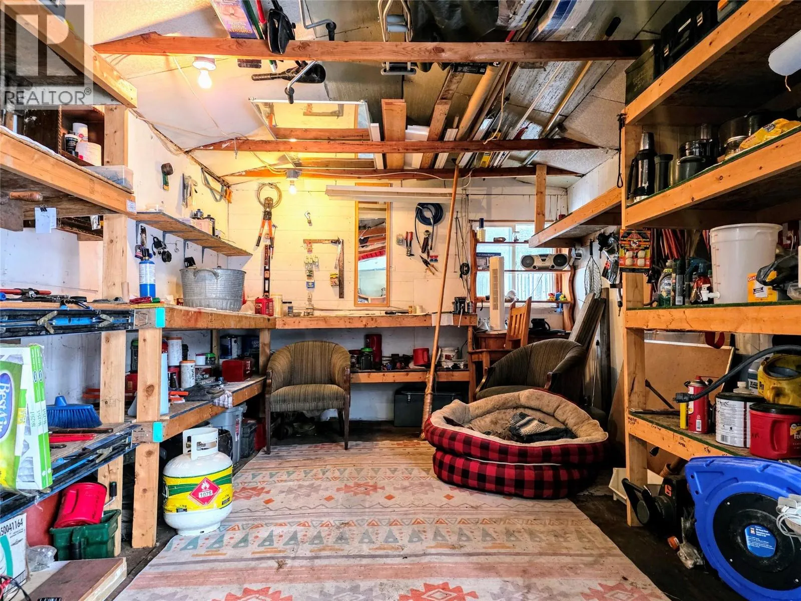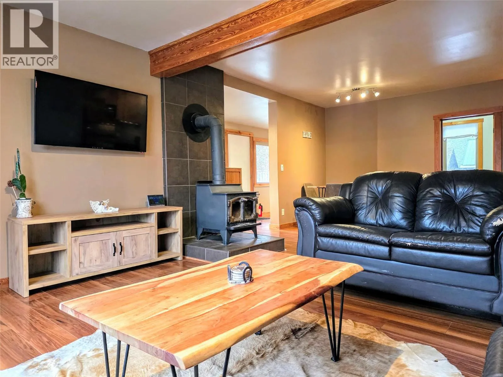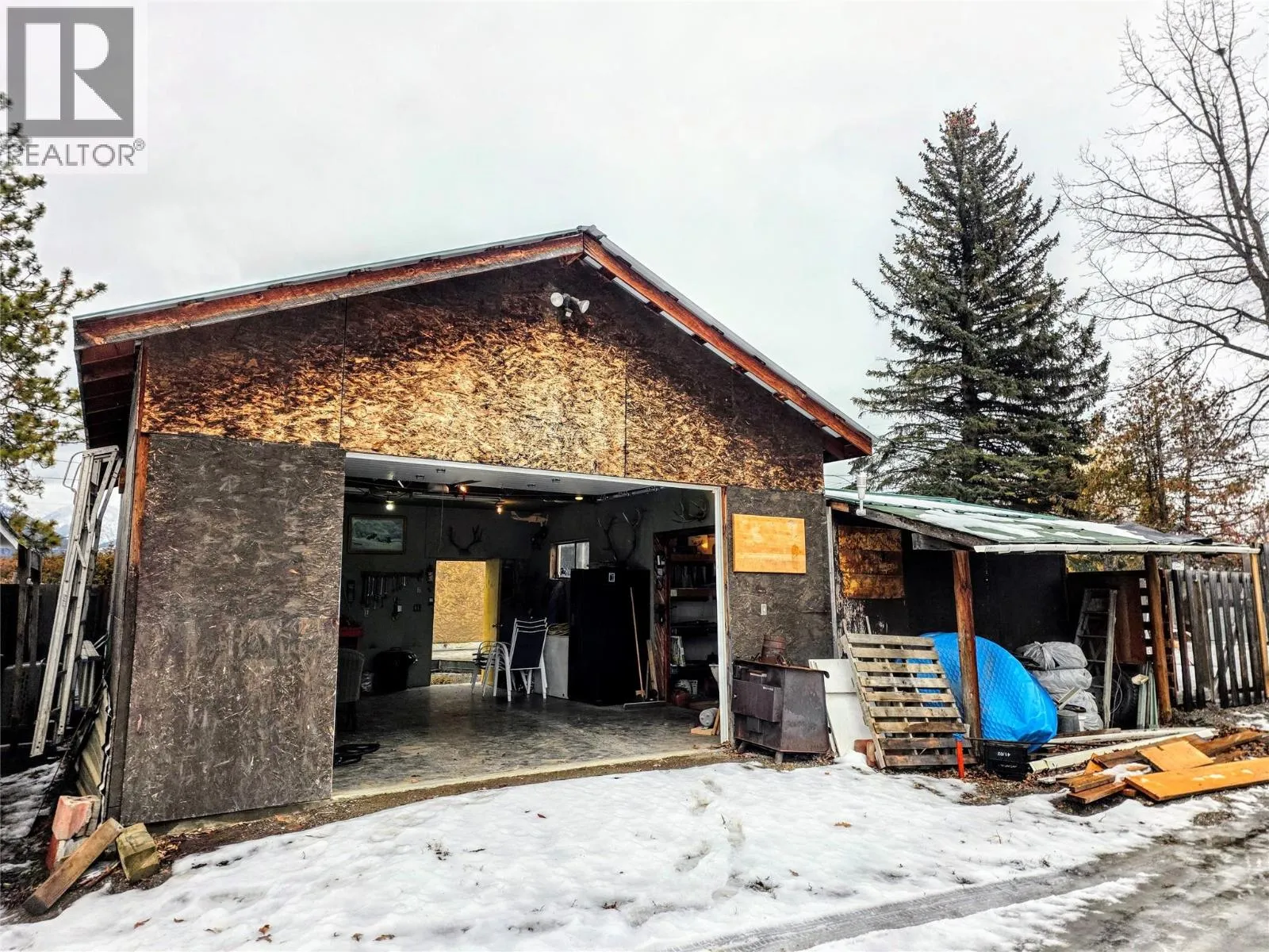 This is the ONE you've been waiting for. Modest home, MASSIVE fenced yard and HUGE detached garage. Discover a perfect blend of 1930s charm and high-quality modern upgrades in this well maintained 2 Bedroom + Flex Room, 1 Bathroom home. As you arrive, the established privacy hedges and fully fenced yard create a sense of privacy and comfort, complete with a newly poured concrete patioâideal for summer hosting. The property boasts a massive detached garage accessed from the laneway and featuring a finished concrete pad, ample loft storage, and a dedicated workshop space. A 70-amp sub-panel already in place lends possibilities for so many activities! While full of character, this home offers peace of mind with major updates: New Roof (2023) & New Propane Furnace (2022). Many newer vinyl casement windows and supplemental electric baseboard heat ensuring comfort. Beautiful engineered flooring throughout is durable and looks amazing! The cozy wood stove with a elevated tiled pad helps create ambience and the heart of the home is the kitchen, featuring timeless solid wood cabinets, classic subway tile backsplash, and modern black appliances, including a double oven. Nearby, the ""mudroom"" entry includes your laundry area with stacked Whirlpool Washer/Dryer. The bathroom maximizes style and function with an ""industrial"" flair, featuring double sinks, iron pipe mounts for lights and a clean tiled tub surround. Every detail here reflects quality craftsmanship and pride of ownership. (id:27476)