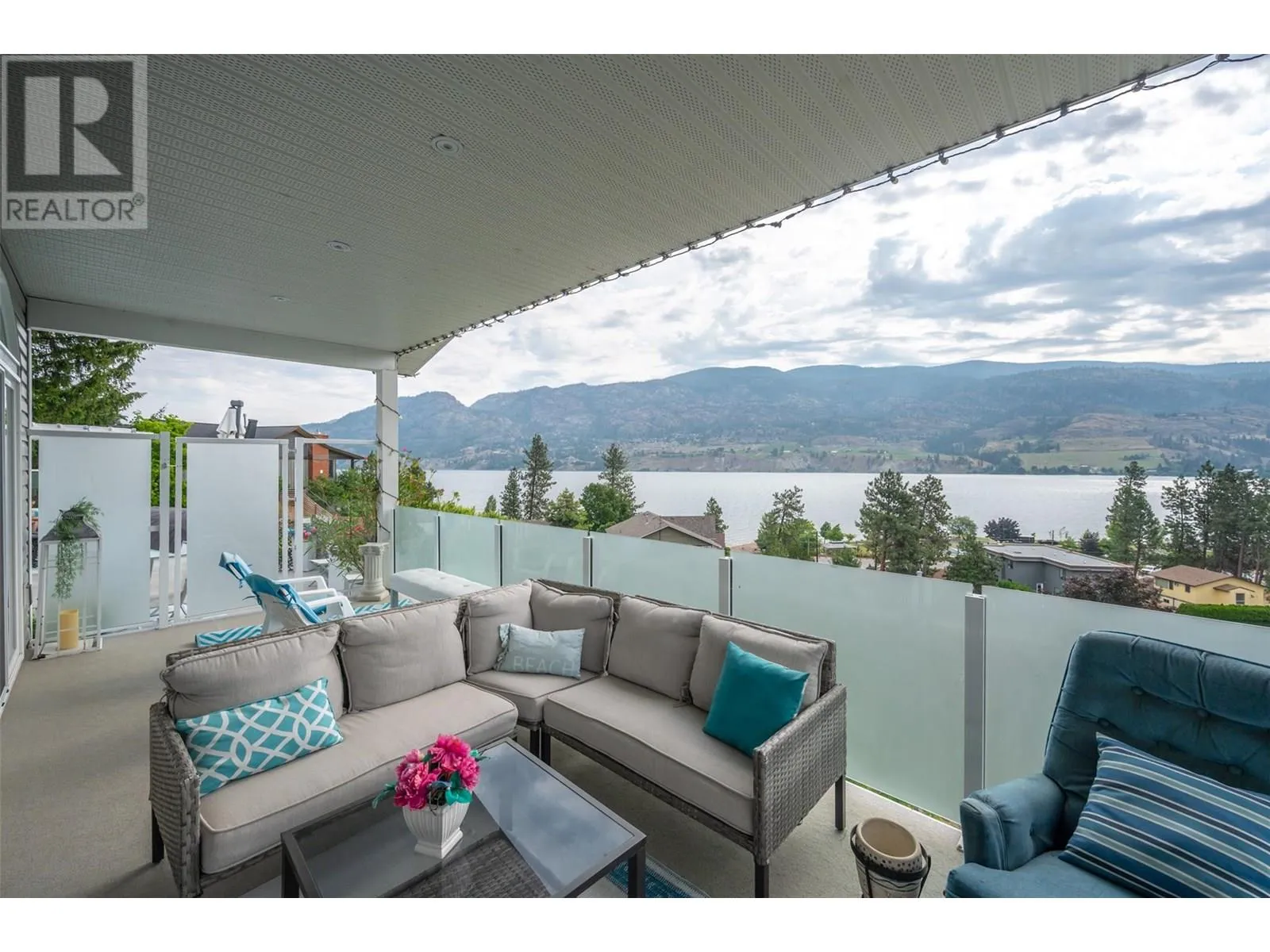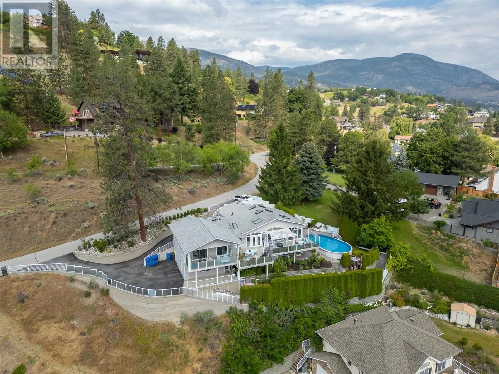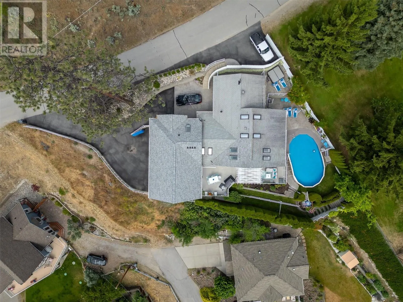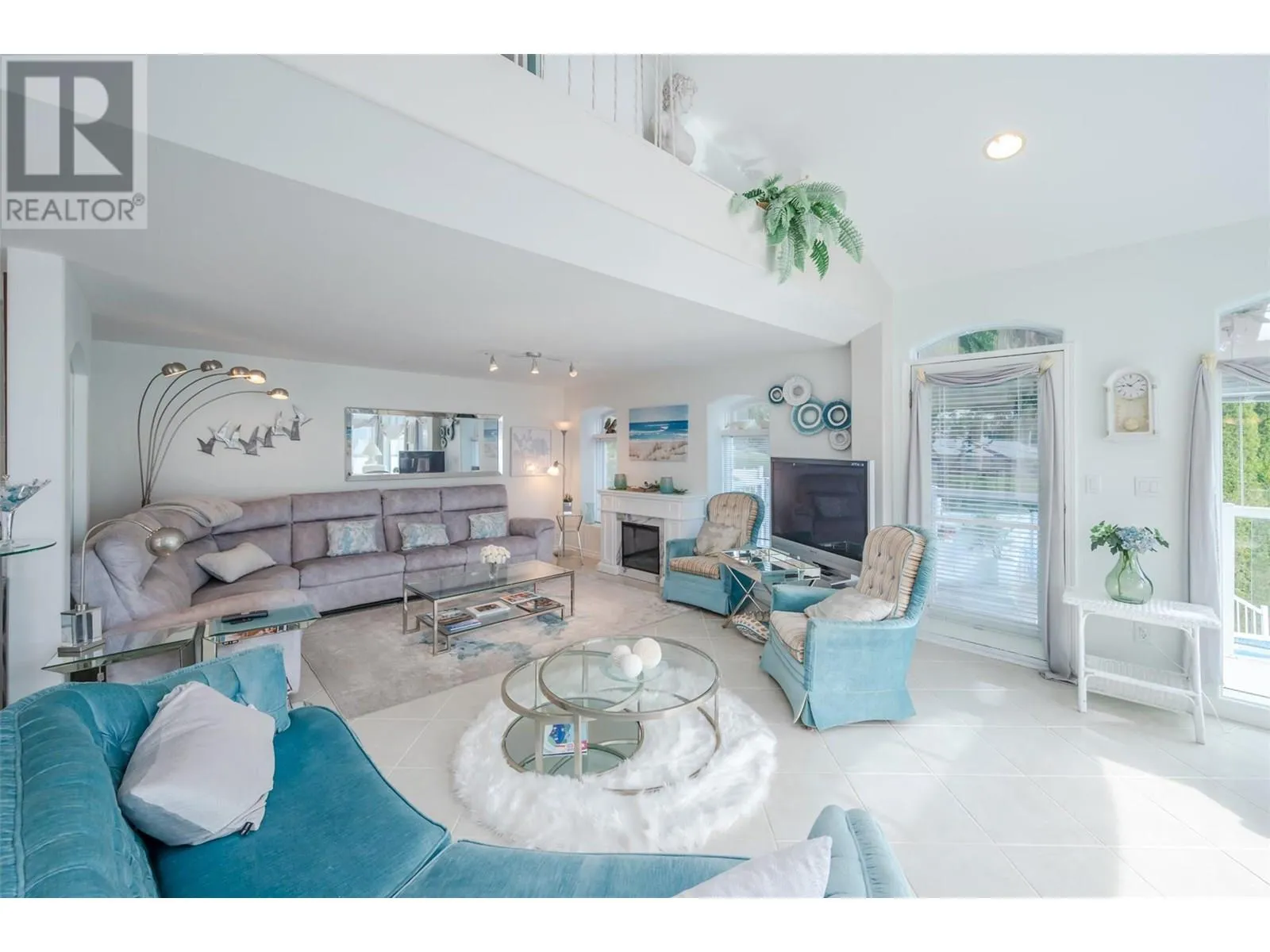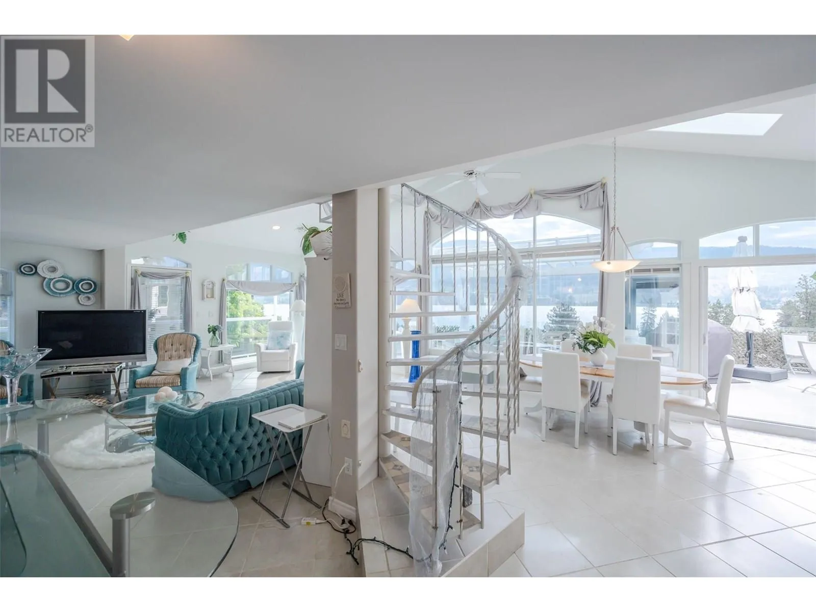 This stunning, entertainerâs dream home offers a spacious open-concept main floor with a bright living and kitchen area featuring a spiral staircase to an upper loft/bedroom. Expansive windows, skylights, and deck access from living areas. The chefâs kitchen boasts a walk-in pantry, island, built-in double oven, electric cooktop, and ample storage, complemented by a wet bar with a double-door fridge, double dishwasher, sink and more storage. The main level includes a luxurious primary suite with balcony access, walk-in closet, and a 5-piece ensuite with a soaker tub, plus two additional bedroomsâone with its own ensuiteâa den, laundry room, and a 3-piece bath. The daylight basement features a large rec room, another bedroom and 4-piece bath, laundry with sink and storage, and a fully equipped in-law suite with its own kitchen, dining, bedroom, and bath. Set on a large lot with lakeviews, mature landscaping, RV and open parking, a double garage with workshop, an above-ground pool, hot tub, covered patio, and multiple outdoor living spaces, this home is ideally located near Kaleden beach and recreationâperfect for those seeking luxury, comfort, and functionality. Contact the listing agent to view! (id:27476)