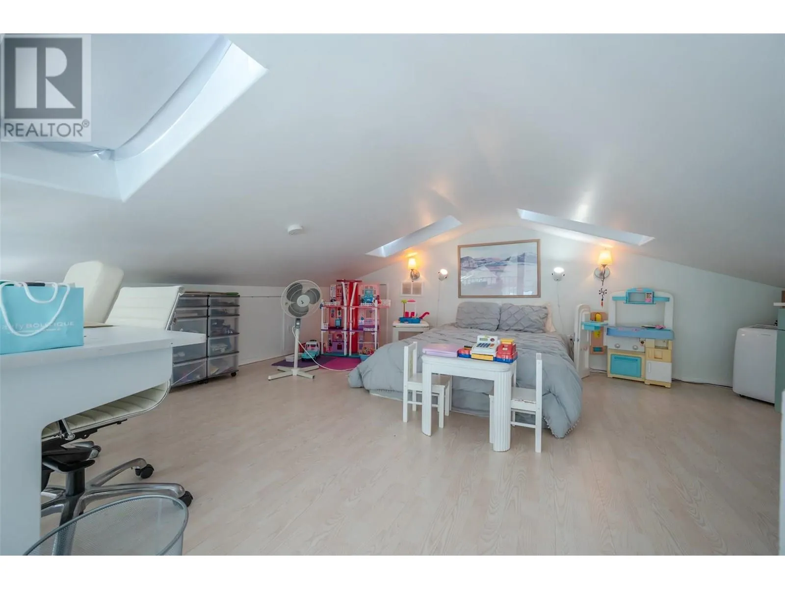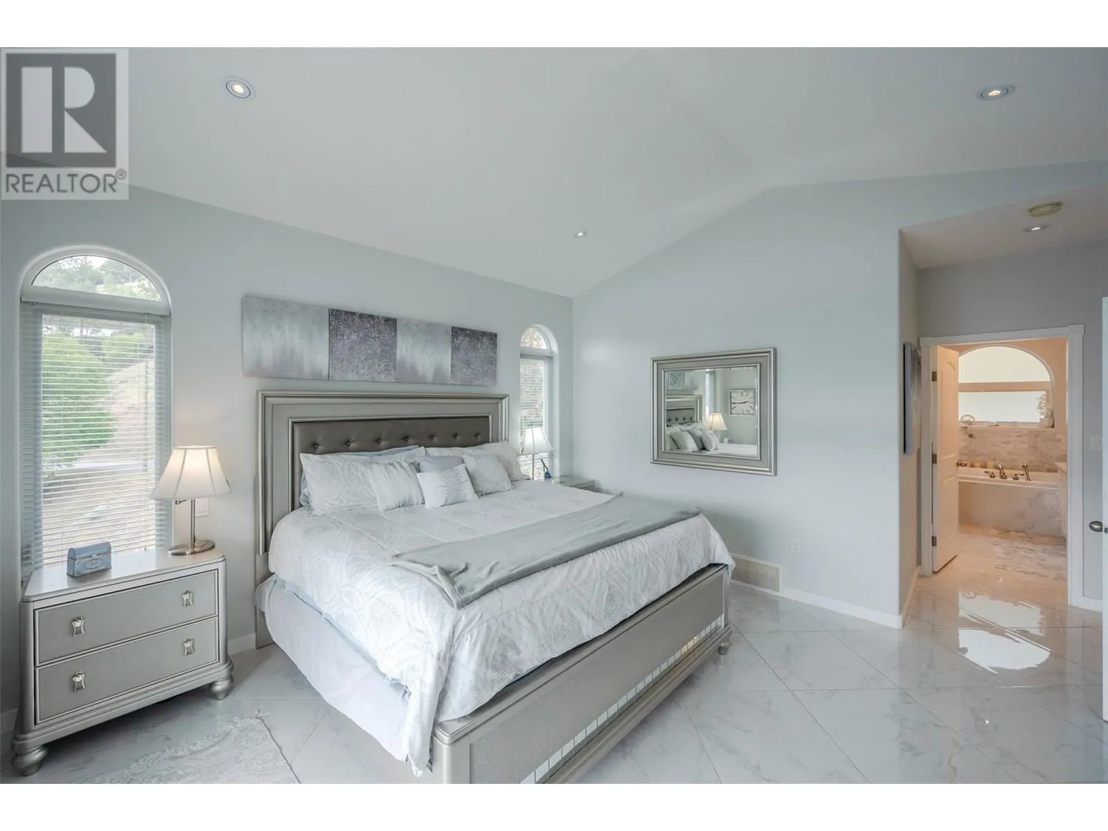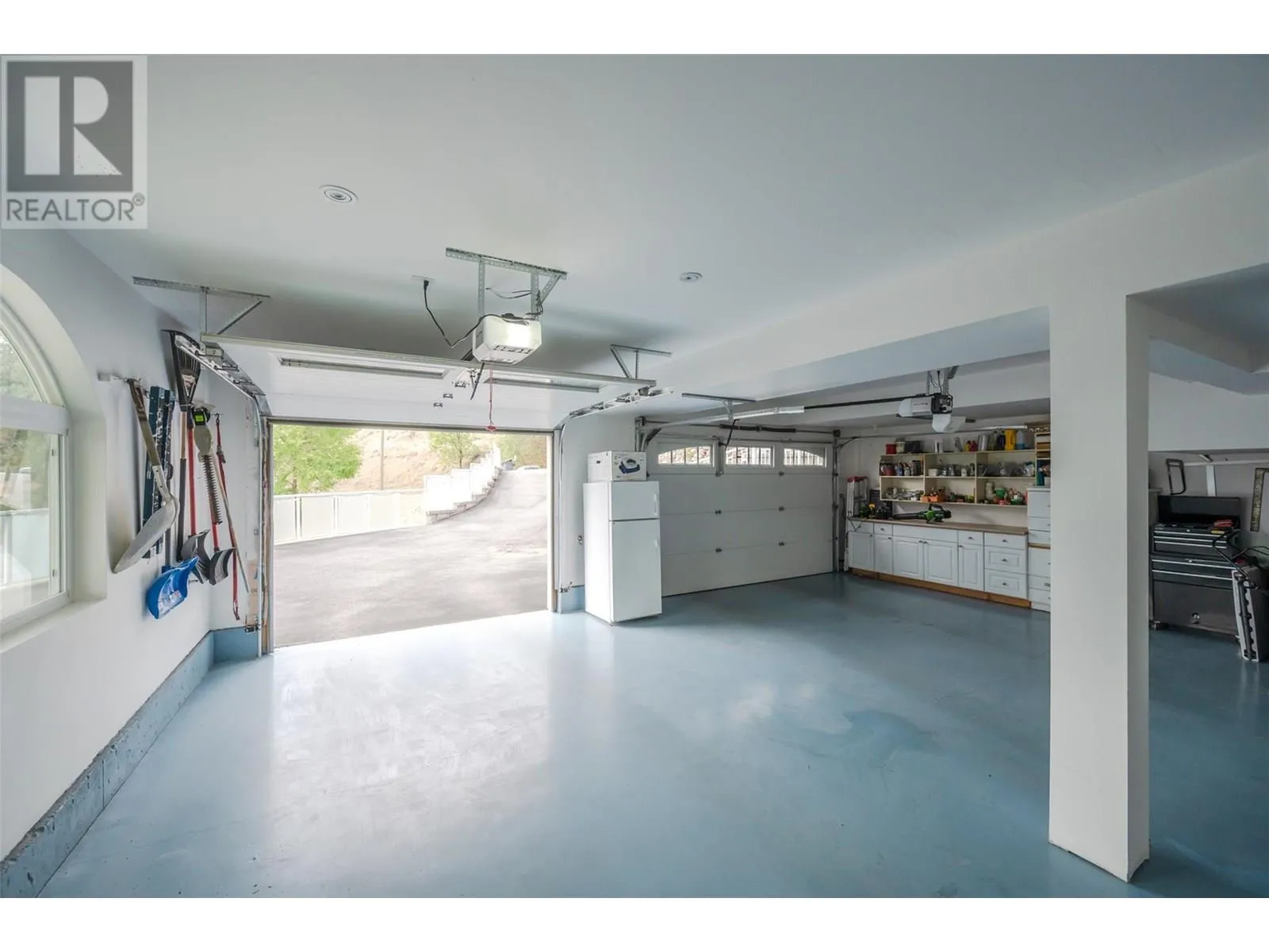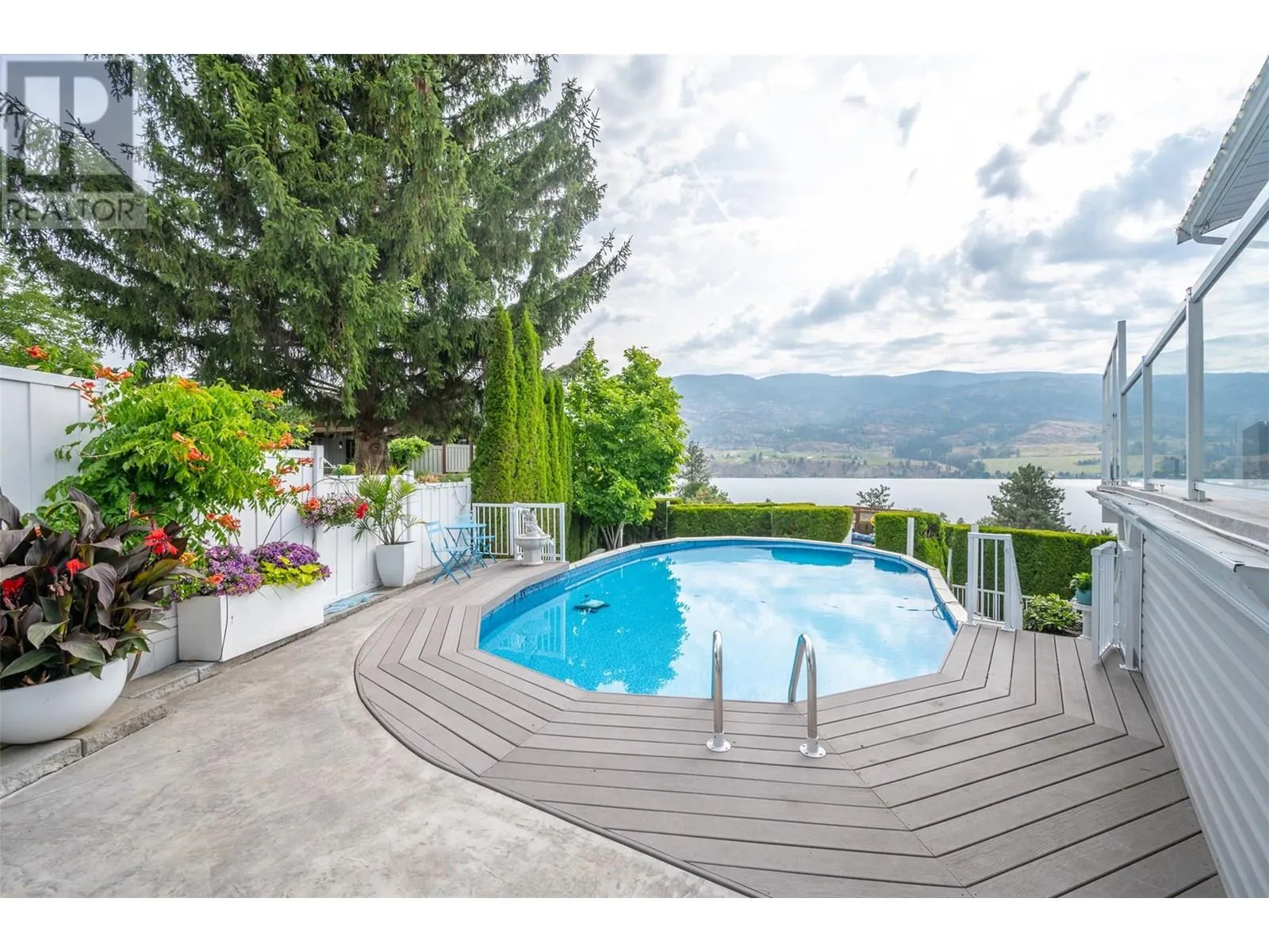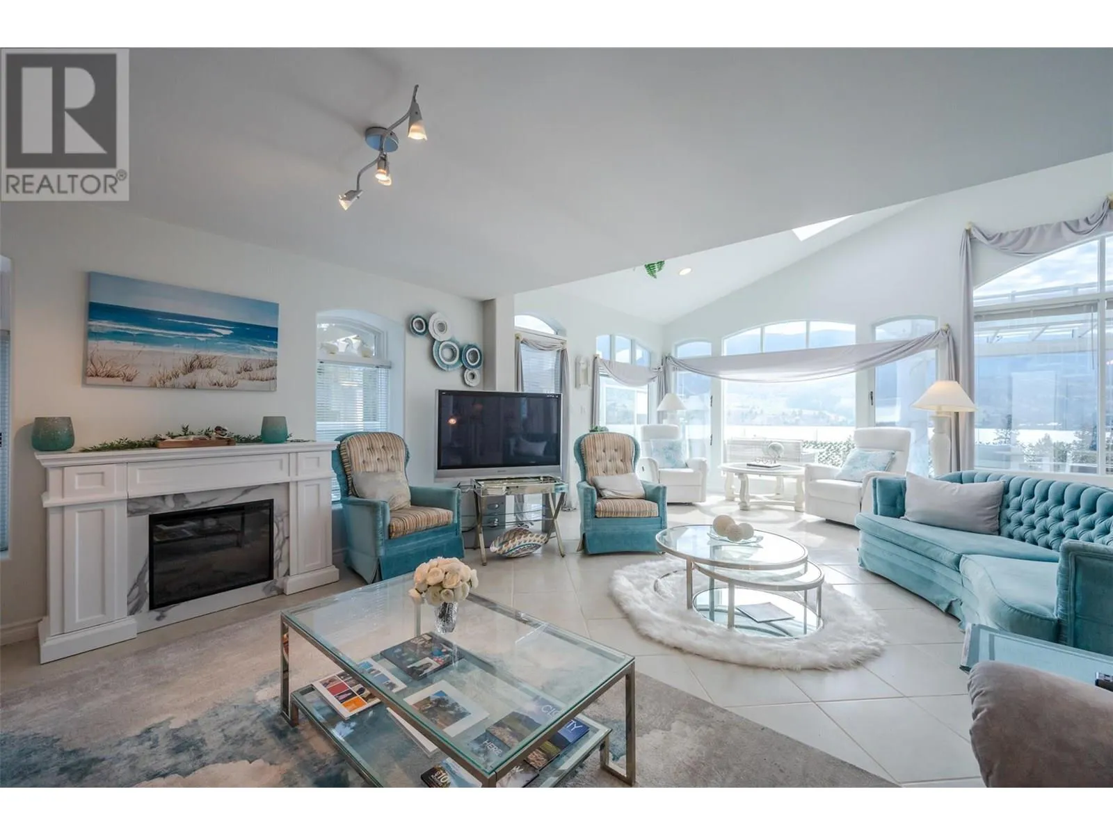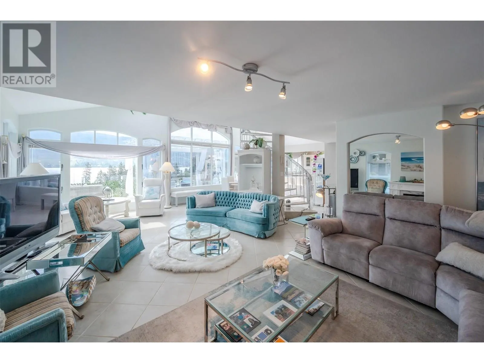 This stunning, entertainerâs dream home offers a spacious open-concept main floor with a bright living and kitchen area featuring a spiral staircase to an upper loft/bedroom. Expansive windows, skylights, and deck access from living areas. The chefâs kitchen boasts a walk-in pantry, island, built-in double oven, electric cooktop, and ample storage, complemented by a wet bar with a double-door fridge, double dishwasher, sink and more storage. The main level includes a luxurious primary suite with balcony access, walk-in closet, and a 5-piece ensuite with a soaker tub, plus two additional bedroomsâone with its own ensuiteâa den, laundry room, and a 3-piece bath. The daylight basement features a large rec room, another bedroom and 4-piece bath, laundry with sink and storage, and a fully equipped in-law suite with its own kitchen, dining, bedroom, and bath. Set on a large lot with lakeviews, mature landscaping, RV and open parking, a double garage with workshop, an above-ground pool, hot tub, covered patio, and multiple outdoor living spaces, this home is ideally located near Kaleden beach and recreationâperfect for those seeking luxury, comfort, and functionality. Contact the listing agent to view! (id:27476)