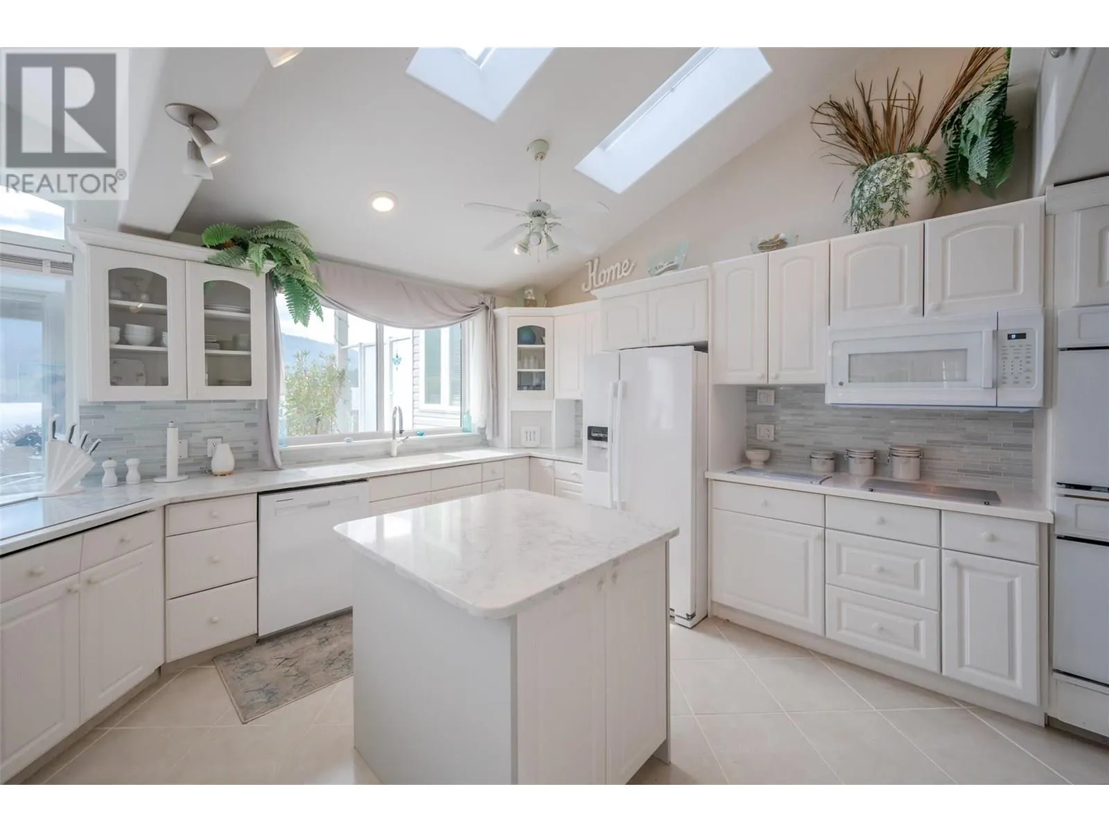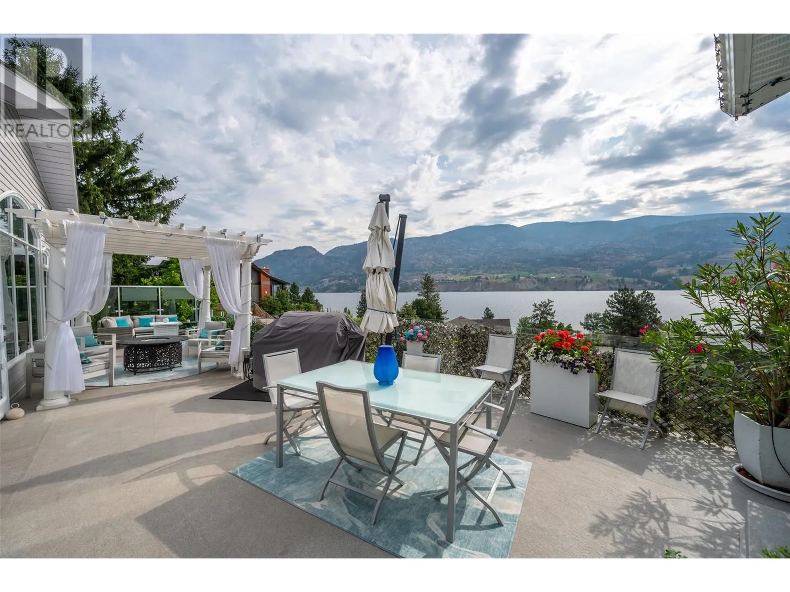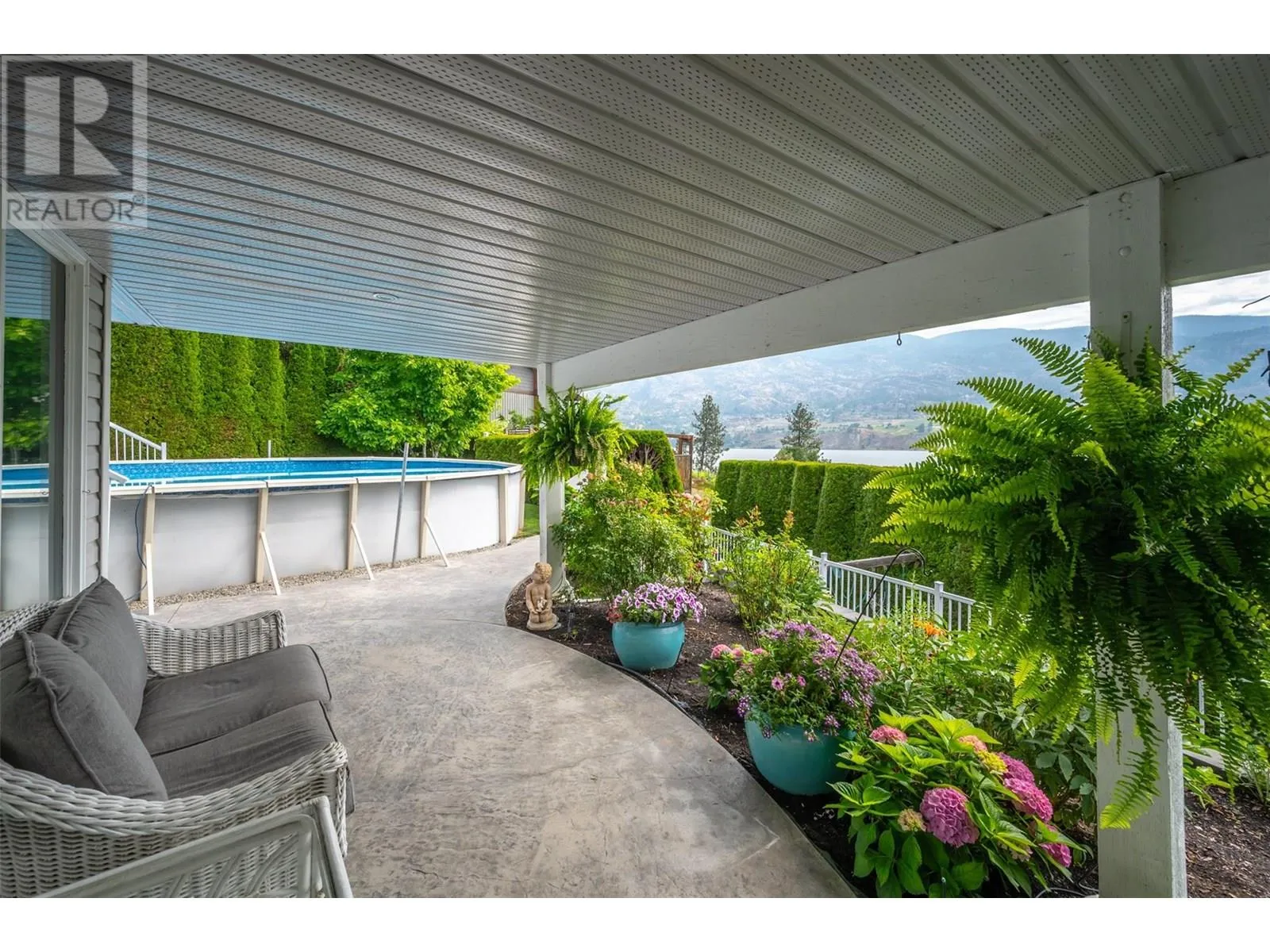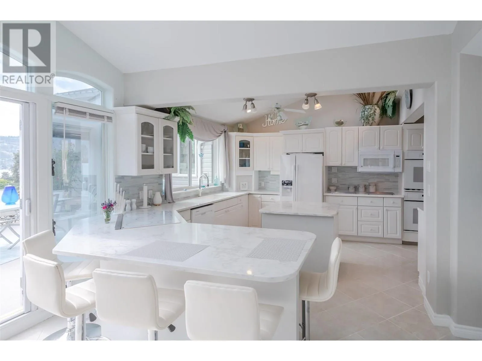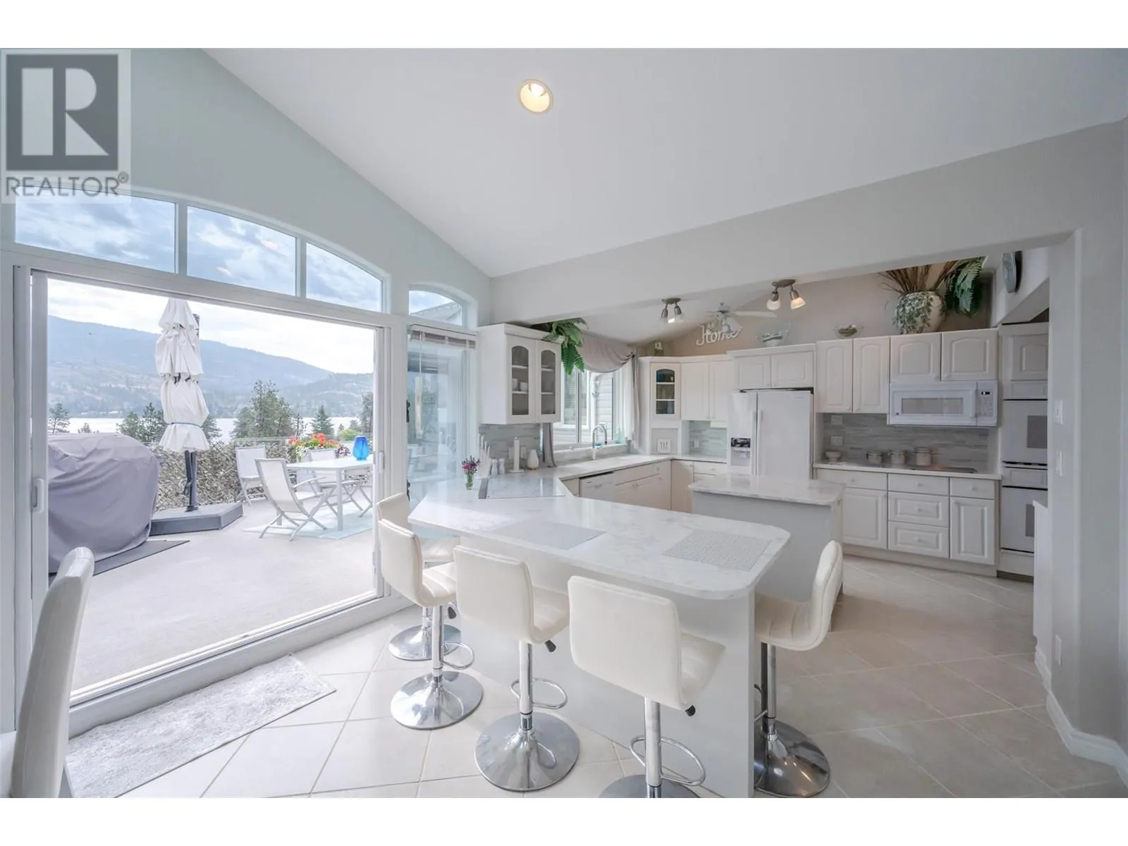 This stunning, entertainerâs dream home offers a spacious open-concept main floor with a bright living and kitchen area featuring a spiral staircase to an upper loft/bedroom. Expansive windows, skylights, and deck access from living areas. The chefâs kitchen boasts a walk-in pantry, island, built-in double oven, electric cooktop, and ample storage, complemented by a wet bar with a double-door fridge, double dishwasher, sink and more storage. The main level includes a luxurious primary suite with balcony access, walk-in closet, and a 5-piece ensuite with a soaker tub, plus two additional bedroomsâone with its own ensuiteâa den, laundry room, and a 3-piece bath. The daylight basement features a large rec room, another bedroom and 4-piece bath, laundry with sink and storage, and a fully equipped in-law suite with its own kitchen, dining, bedroom, and bath. Set on a large lot with lakeviews, mature landscaping, RV and open parking, a double garage with workshop, an above-ground pool, hot tub, covered patio, and multiple outdoor living spaces, this home is ideally located near Kaleden beach and recreationâperfect for those seeking luxury, comfort, and functionality. Contact the listing agent to view! (id:27476)