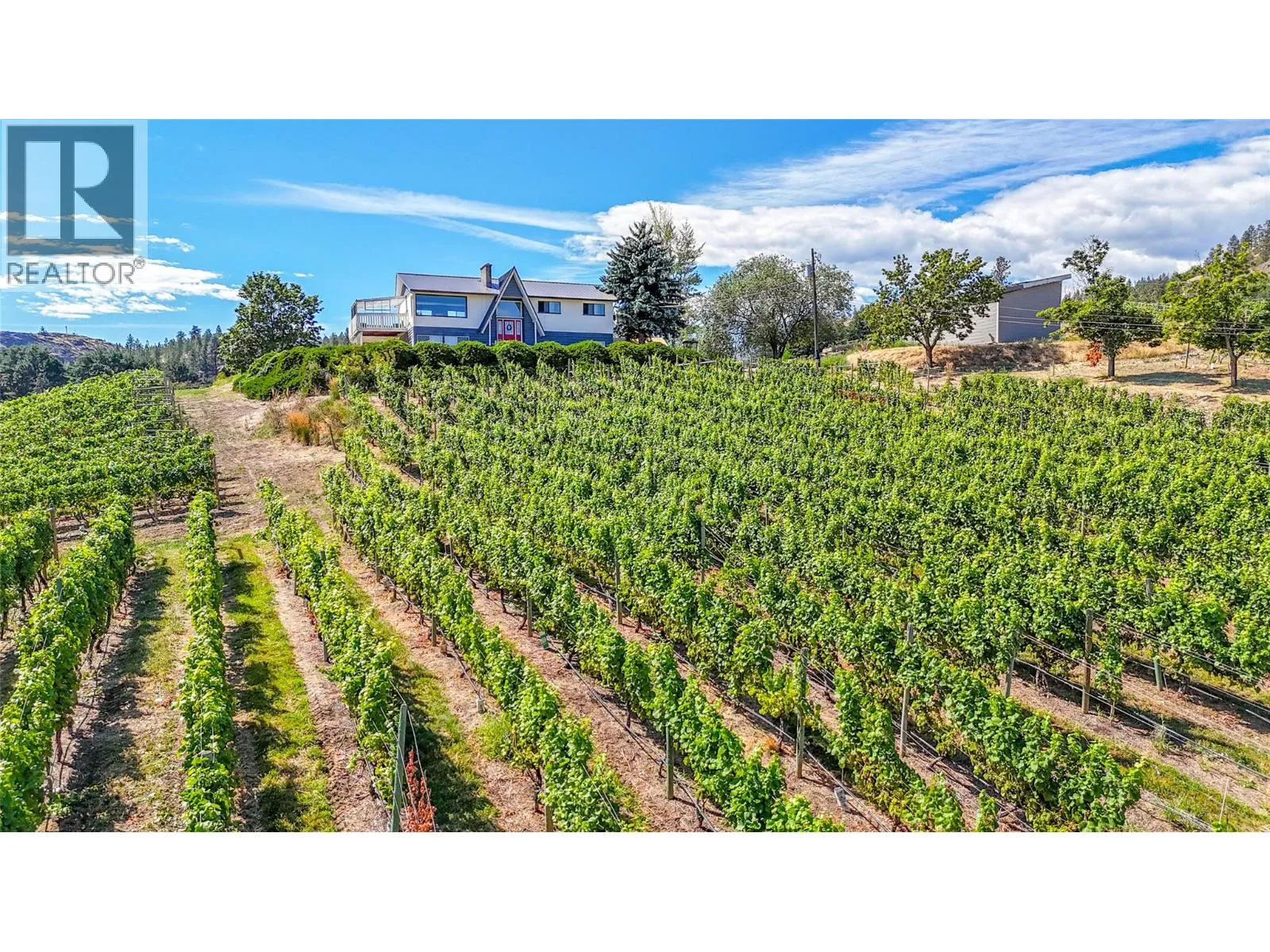 This expansive 5-acre vineyard estate encompasses a primary residence adorned with 4 bedrooms and 3 bathrooms, an independent in-law suite complete with its own entrance and laundry facilities, and a charming 3-bedroom cottage. The main house, surrounded by picturesque vineyard panoramas, also boasts a generously sized deck accessible from the kitchen, ideally positioned to capture the southern and eastern sunlight, making it ideal for BBQs and basking in the Okanagan's radiant sun. Have you been dreaming of being the proprietor of your very own vineyard? This property, with its 4 acres of meticulously cultivated Gewurtztraminer, Pinot Noir, and Merlot with drip irrigation and Vertical Shoot Positioned vines, could make that dream a reality. This investment property is a treasure trove, with its low tax bracket, appealing farm status, agricultural income potential, and prospective suitability for a winery site. The estate also houses a storage building, two separate garages, a large farm edifice, and a garden shed. Its location in a highly sought-after rental area ensures reliable rental revenue streams. Nestled in a quaint rural community with a school and beach just 3 minutes away, and proximity to Penticton and all its amenities, it's a perfect mix of tranquillity and accessibility. The property offers ample space for parking, trailers, and vehicles, making it an ideal investment for the discerning buyer or an outdoor lifestyle enthusiast with a passion for gardening. (id:27476)