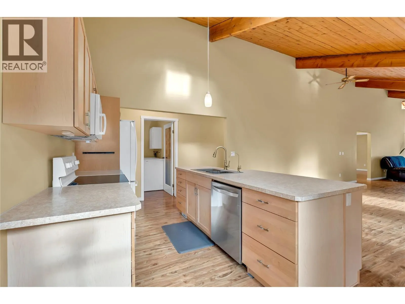 Experience one of the regionâs finest golf courses just a short golf cart ride away. Located in the sought-after St. Andrews by the Lake golf community, this updated 2,151 sq ft home offers privacy, beautiful views, and a peaceful setting only minutes from Penticton. The main living area features vaulted ceilings, laminate flooring, and expansive windows that frame forested surroundings and mountain scenery. A spacious front deck is perfect for outdoor dining or relaxing, with no homes directly in front or to the right, plus easy access to walking trails and expansive green space. The primary bedroom includes a private 3-piece ensuite, along with two additional bedrooms, a full bathroom, and a laundry room with extra storage. The lower level offers a generous family room with a wood-burning stove, flexible bonus space, and ample storage. Recent upgrades include a new electric furnace and heat pump, commercial-grade water softener with reverse osmosis, new hot water tank, replacement of approximately 80% of the windows, fresh interior paint, and a recently pumped and inspected 1,000-gallon septic system. Residents enjoy unlimited golf on the scenic 9-hole course, a renovated clubhouse with restaurant, pro shop, guest suites, games area, a heated pool with extensive upgrades, and new tennis, pickleball, and sport courts nearing completionâoffering resort-style living in the South Okanagan. (id:27476)