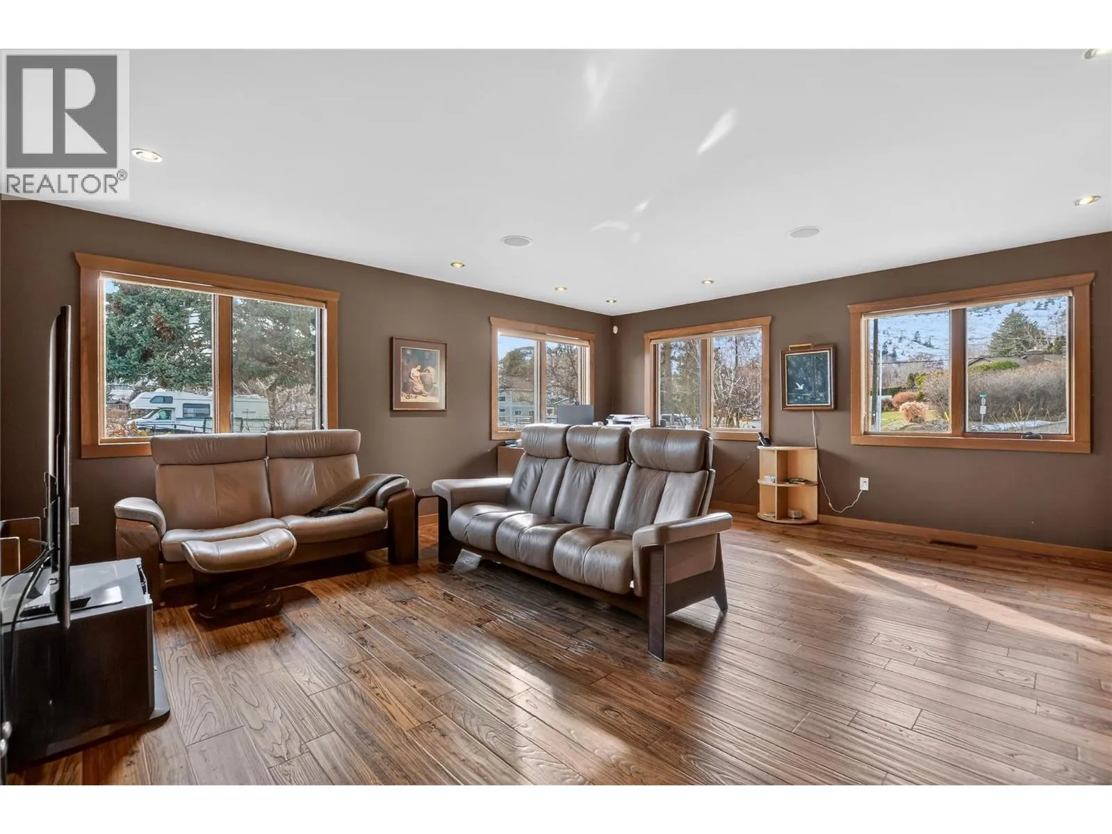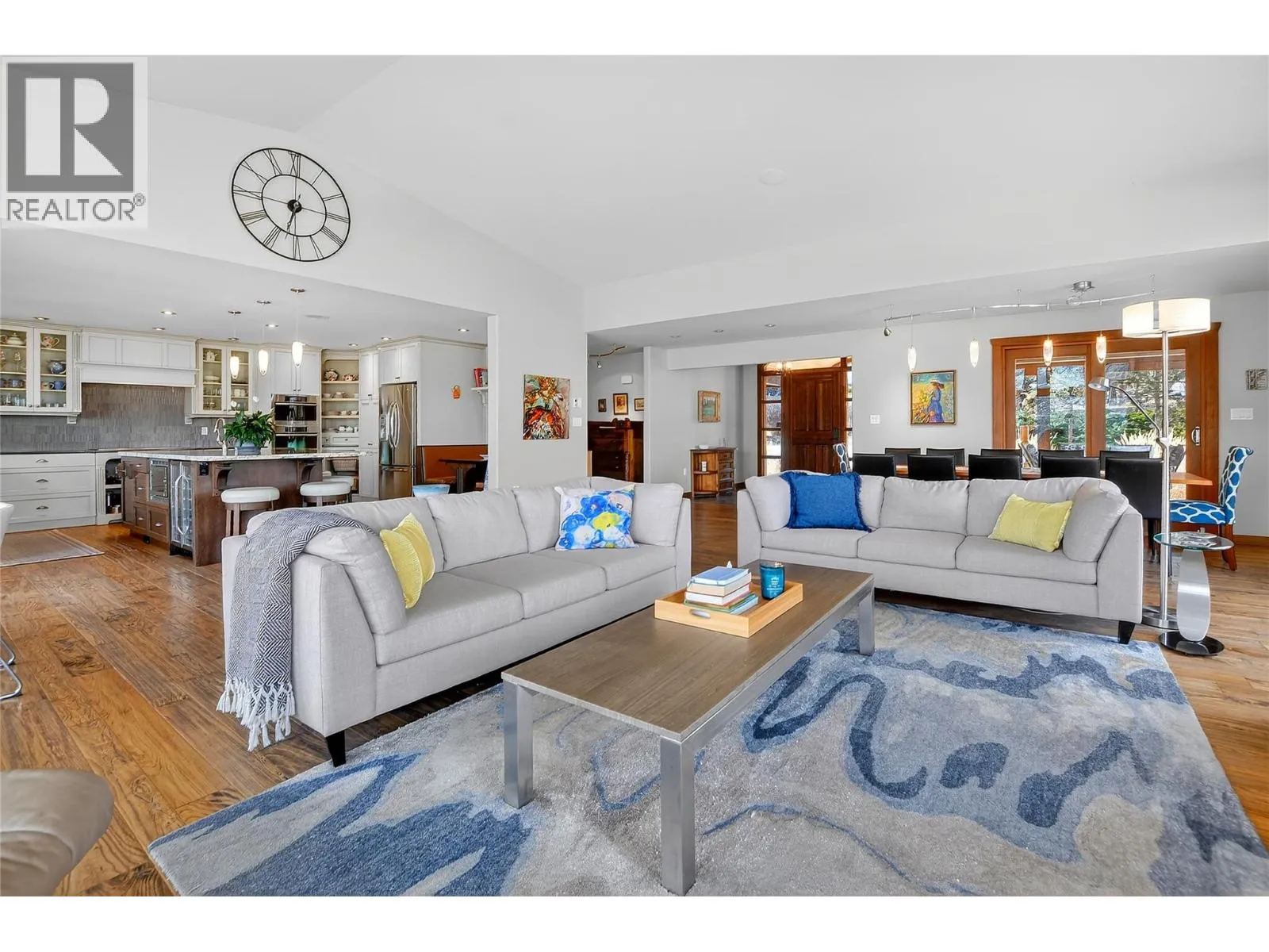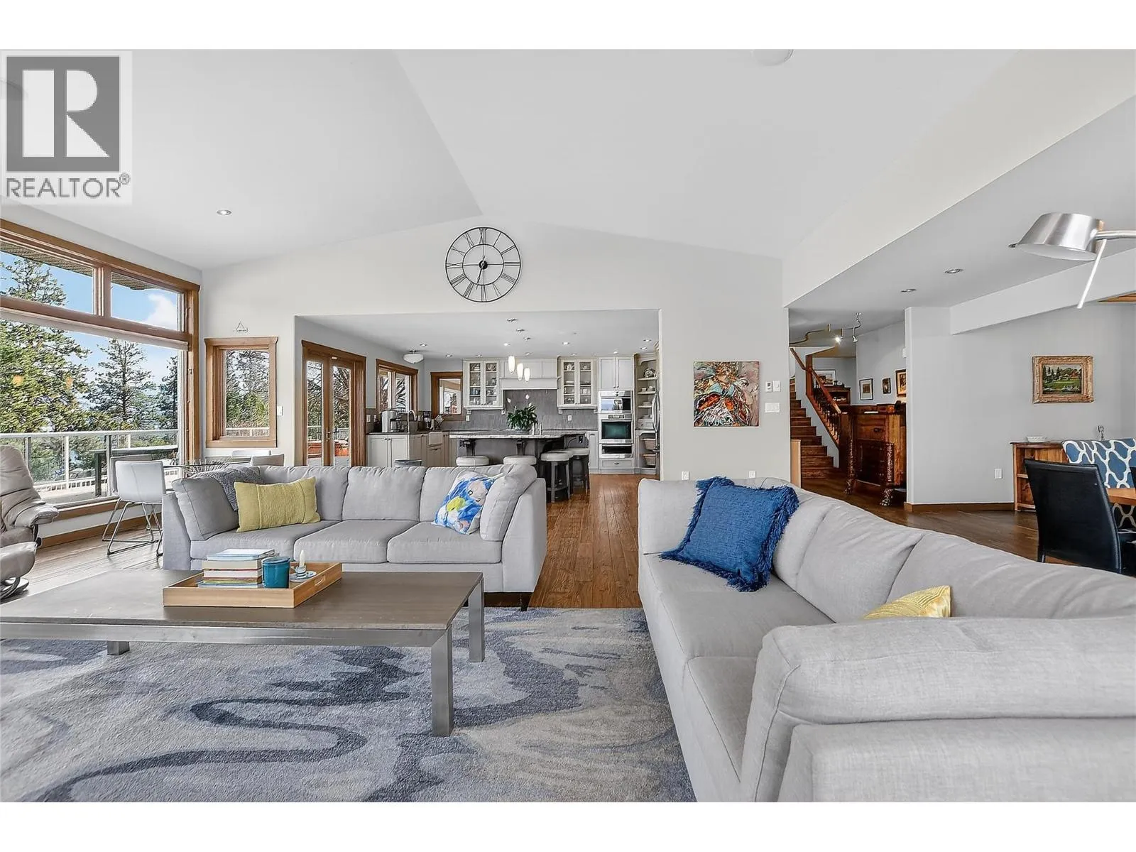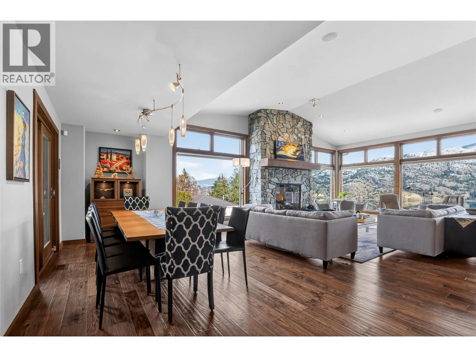 Set above Skaha Lake in Kaleden, next to the KVR Trail, this custom home is one of those properties people slow down to admire. It offers 7,000 sqft of living space w/ 5 baths, 4 bedrms plus an additional 2 bedrms set up in the flex room on the main floor & the loft. With almost 2.5 acres, it has space to add features like a pool & a pool house. The covered front porch w/ its barrel-style ceiling flows right into the foyer. In the great room, the timber mantle & stone fireplace anchor the space, while the fir trim throughout adds elegance & shows that no expense was spared in building this home. The kitchen w/ a massive granite-topped island, Miele appliances, banquette seating, & direct access to the concrete stamped deck w/ glass railing for unobstructed views of nature. The primary suite is a retreat with french doors to a private sitting area, a two-way fireplace, and renovated ensuite with a soaker tub. The loft is the perfect space for a bedroom or home office/art studio. The lower lvl adds a full kitchen, media room, games area, 3 bedrms & storage. Excellent opportunity for a short-term rental set up. The detached 4-bay garage is a dream for hobbies, cars or toys. ICF construction, geo-thermal, stamped concrete with radiant floor on all 3 lvls. Step-free access on the main floor, wider interior hallways, and direct access to the backyard path, which leads to a magical viewpoint, add comfort and flexibility for new homeowners to age in place. (id:27476)