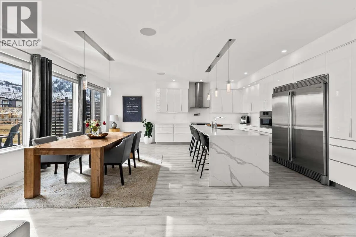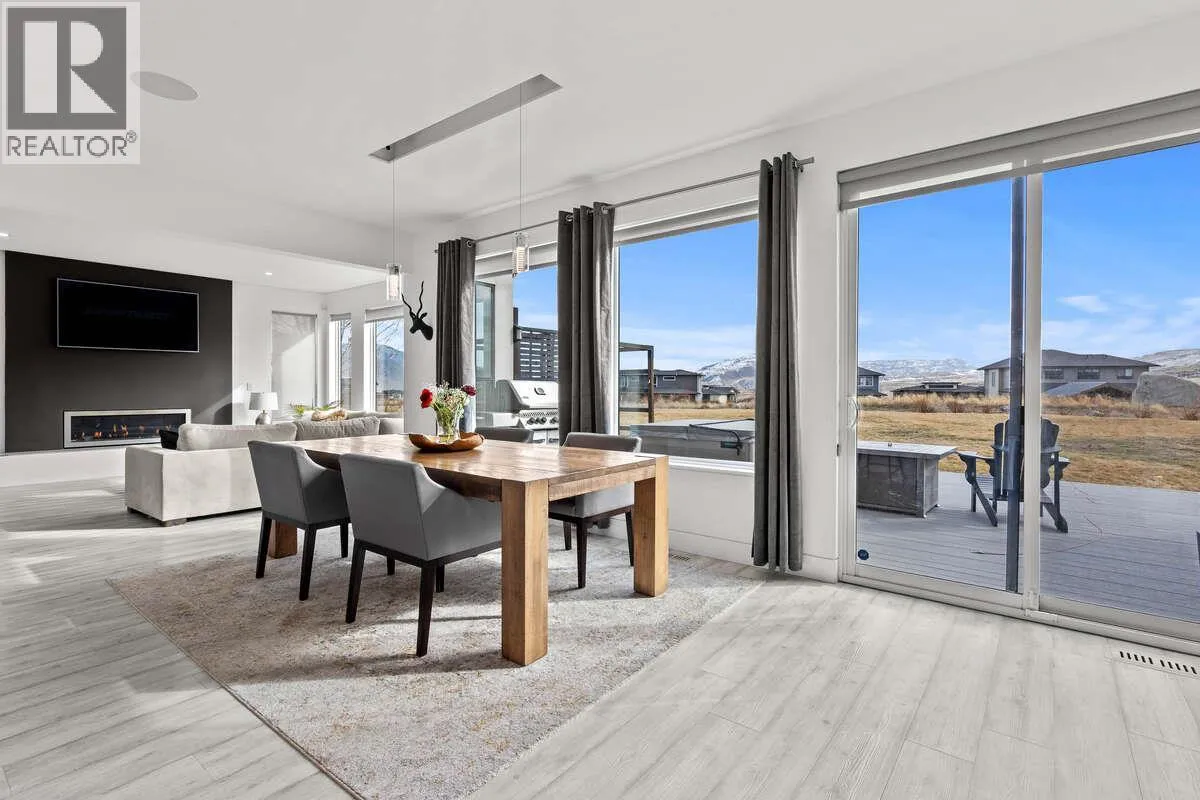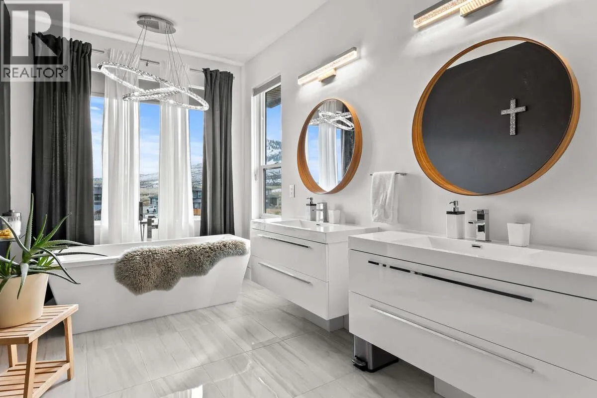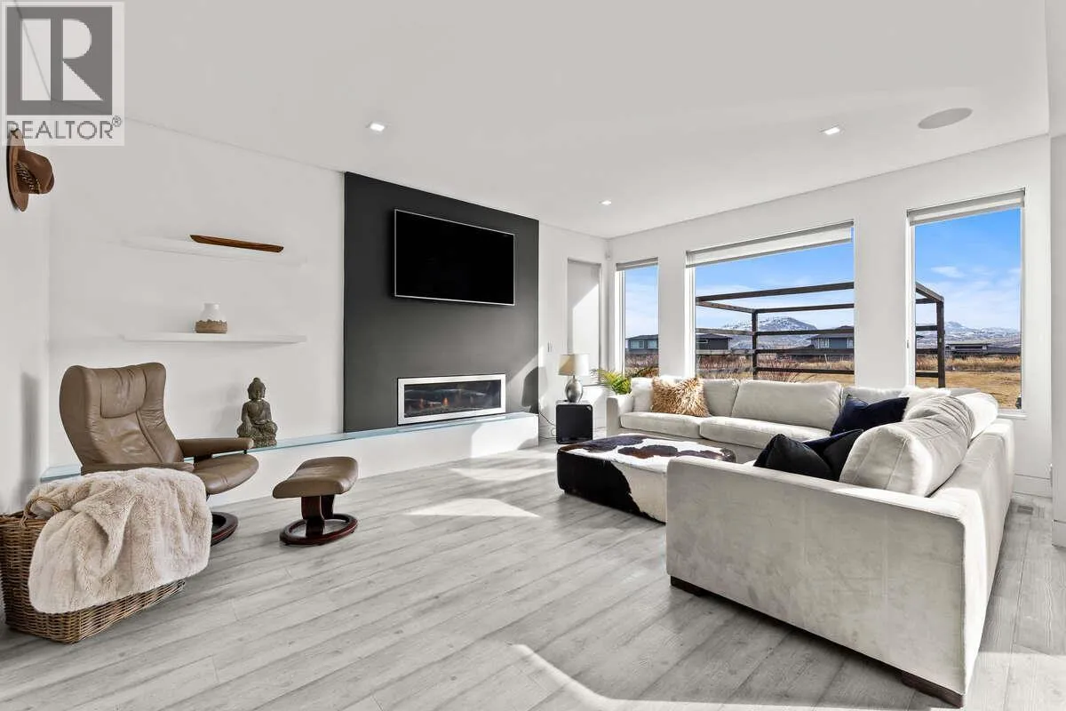 For more information, please click Brochure button. Experience modern elegance in this custom-built home by Absolute Home Builders, located in the prestigious Tobiano community. Spanning over 3,900 sq ft, this home offers premium upgrades, breathtaking views, & seamless indoor-outdoor living. The open-concept main floor is filled with natural light, featuring an expansive great room with a gas fireplace & floor-to-ceiling windows. The gourmet kitchen boasts waterfall countertops, a Bosch dishwasher, a double Electrolux fridge/freezer, a built-in convection oven, a pot filler, and under-counter lighting. Sliding doors lead to a spacious deck, a covered gazebo, a seven-person hot tub, & a private backyard oasis. Upstairs, the primary suite offers a cozy fireplace, walk-in closet, and spa-like ensuite with floating vanities, a soaker tub, and a walk-in shower. Two additional bedrooms, a full bathroom, and a convenient upstairs laundry room complete the floor. The lower level is designed for entertainment, featuring a temperature-controlled wine cooler, built-in bar, theatre room with surround sound, & a home gym with outdoor access. A bonus flex space, plus two bedrooms and a four-piece bathroom. Smart home features include built-in iPads, a six-zone speaker system, Hunter Douglas blinds, Lutron lighting, a security system, & central vacuum. 9/23/25 Recent Interior Update. Come have a look! (id:27476)