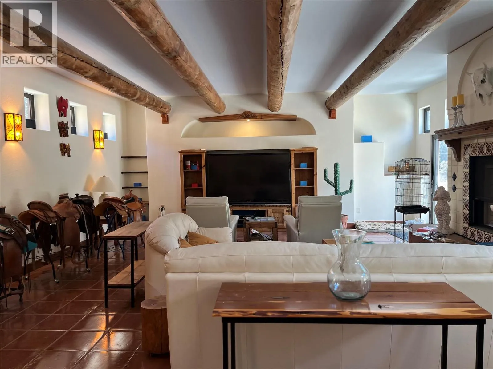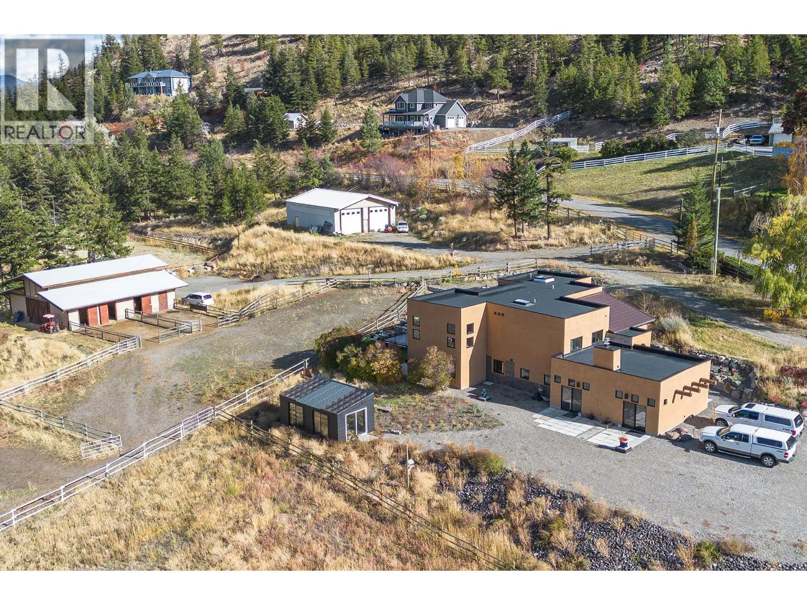 Flat fenced and cross fenced 6.3 acres with city water plus drilled well. Massive 40' x 48' heated and air conditioned shop with 14' high doors. Also 40' x 48' modern barn with 3-6 paddocks, heated tack room, separate corrals, riding arena and outside lean to. Very little of pre-existing home left as new 4700 sq ft home built and finished off in very high quality in past 3 years. 3 bedrooms, plus office, 10ft high ceilings, ultra modern kitchen - 'Cafe' brand oven and fridge, heated tile floors, back up electric furnace, massive master bedroom with ensuite. Copper tub w/wash basins. Massive open rec room decorated in high quality and Mexican decor. Large covered sundeck, bird avery, greenhouse and more. Too many high end quality features to mention. Only 15 mins from downtown, basically a 2-3 year old home, massive heated air conditioned shop and very functional and modern barn. Great property for horse enthusiasts or large trucks. Everything is âDone up Rightâ on the improvements and dwellings on this property. (id:27476)