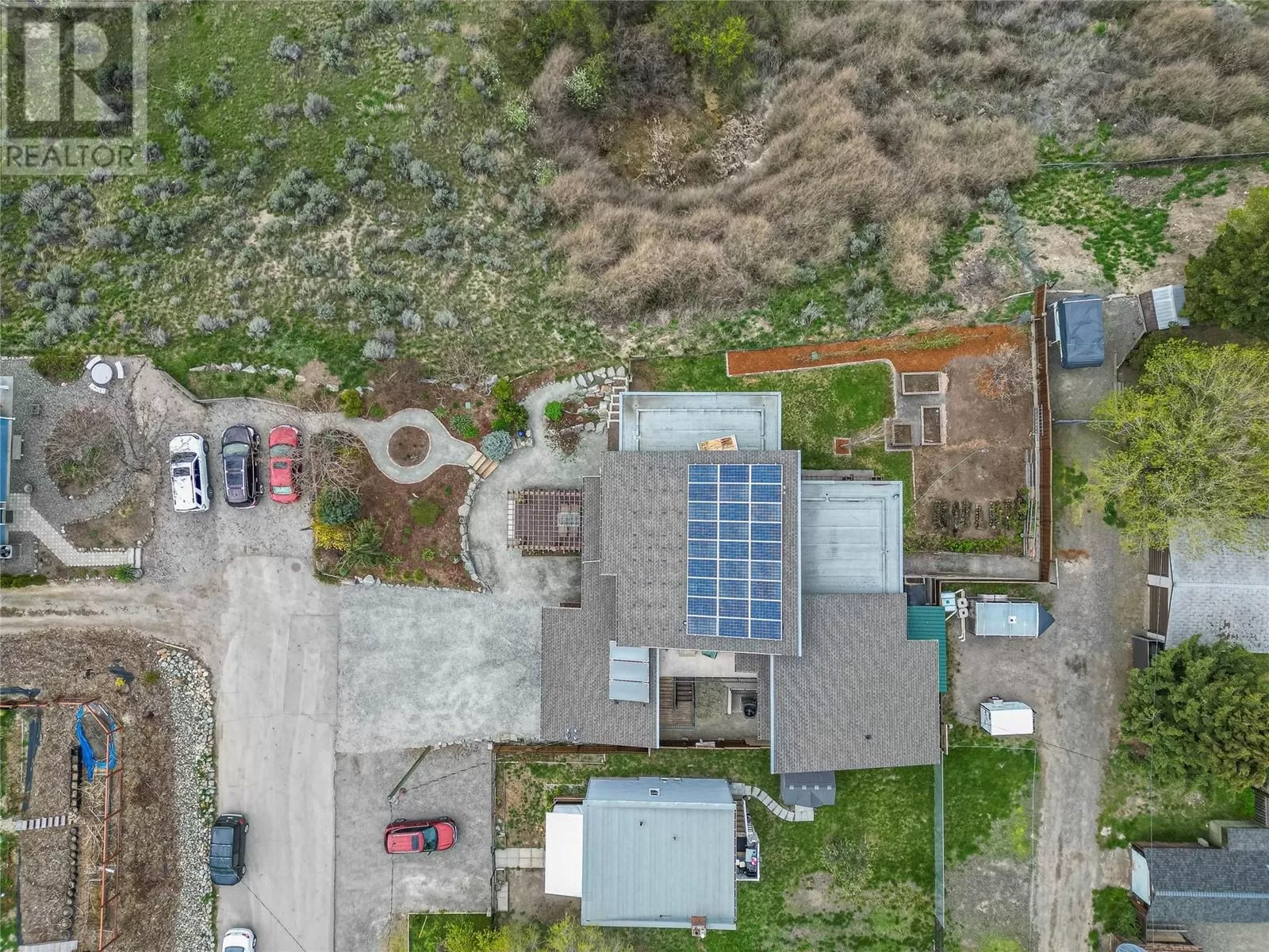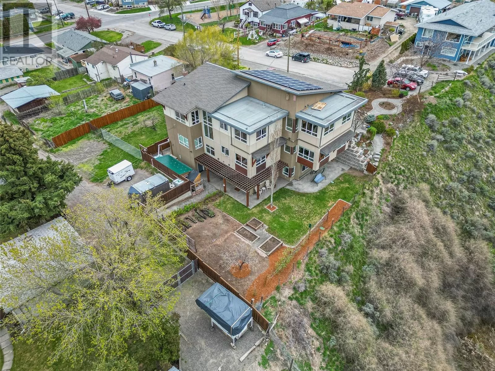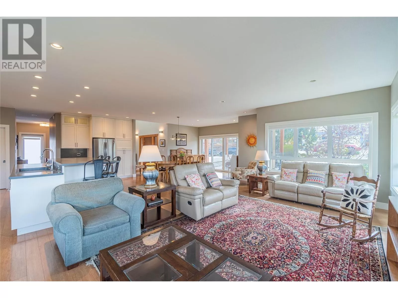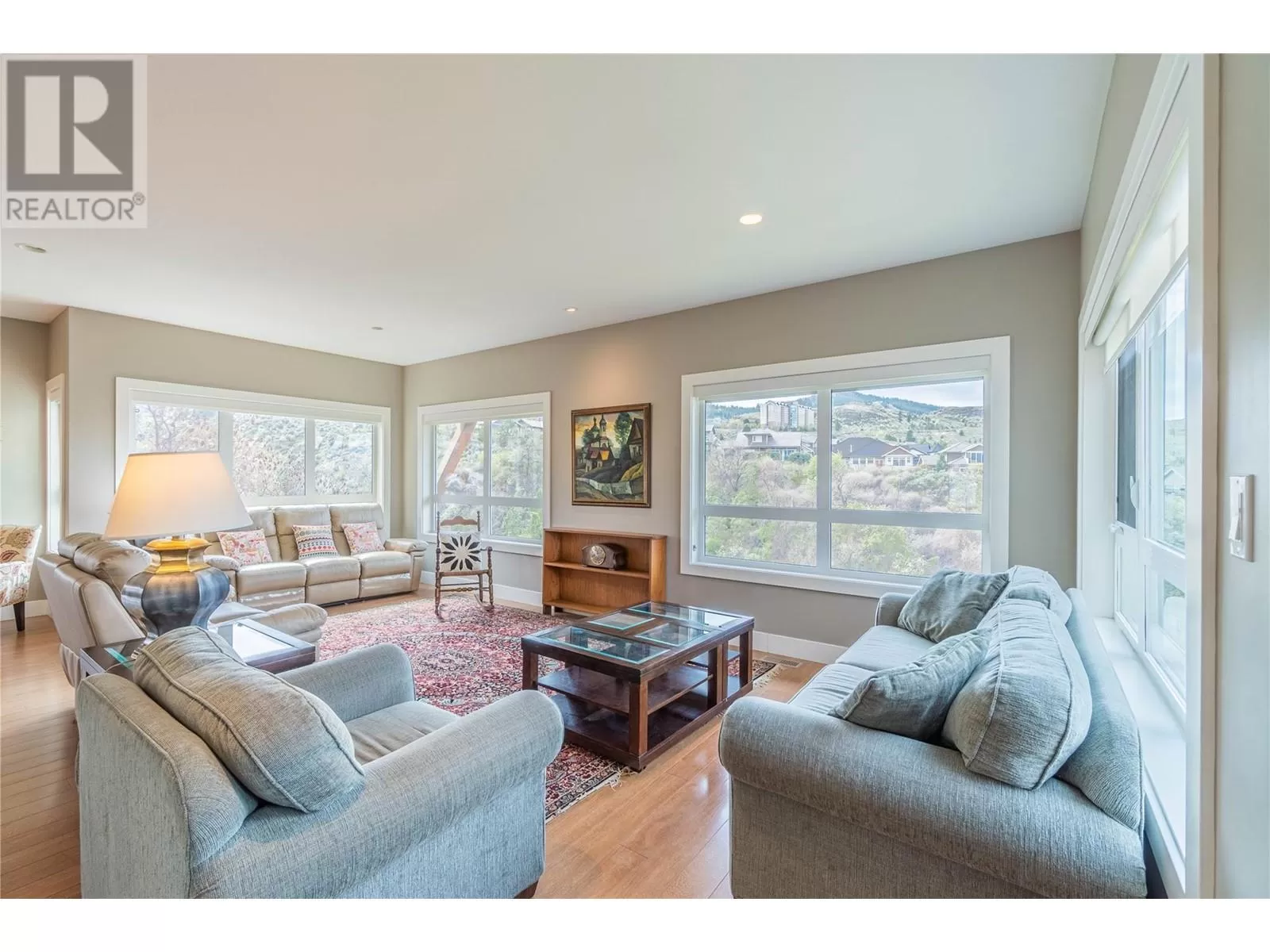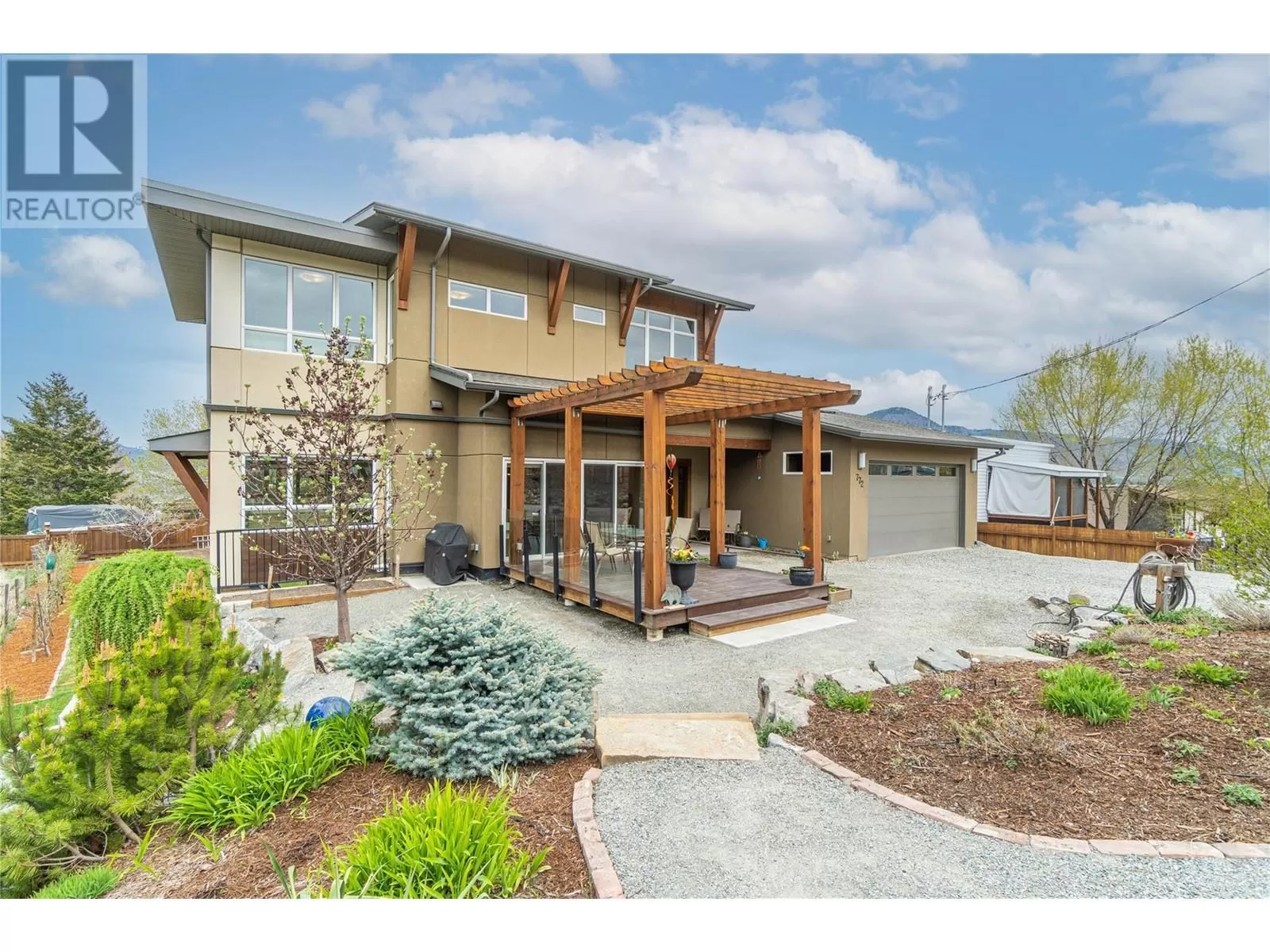 ONE OF A KIND! This is the perfect home for the large family or group living Main floor boasts a breathtaking open plan with huge windows to capture the stunning views. The large island kitchen boasts 2 dishwashers & stainless appliances plus a large walk in pantry for great storage. Wall of cabinets with clever microwave cabinet built in. The spacious living and dining room are great for the largest gatherings with panoramic views from every window. 2 large bedrooms with 4pc ensuites on the main plus 2pc guest bath and office area with outer door. Central shaft for future elevator provides great storage on each level till elevator is desired. Upper floor features 4 more deluxe bedrooms each with a 4pc ensuite and large closet. Upper laundry room, plus a dramatic library that overlooks the vaulted ceiling with feature origami crane mobile. Outer door to relaxation deck and external staircase. Basement level enjoys access to the fenced yard & gardens with UG sprinklers for easy care. 2 more bedrooms down with shared 4pc bath, large rec room and laundry room. This area designed for future suite if desired. Utility room has components for the solar heat recovery system, Central Air, HRV system and extra storage plus featured climate controlled cold room pantry. Property comes with 9 open parking spaces plus double garage. (id:27476)