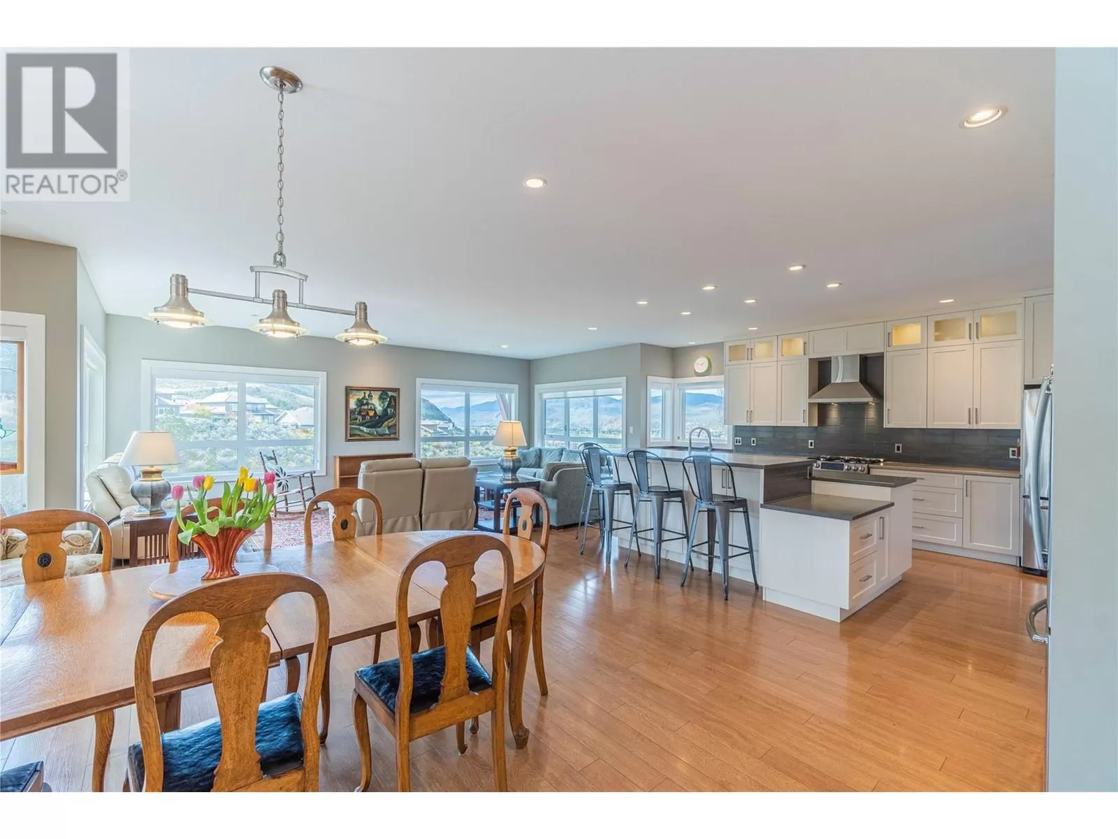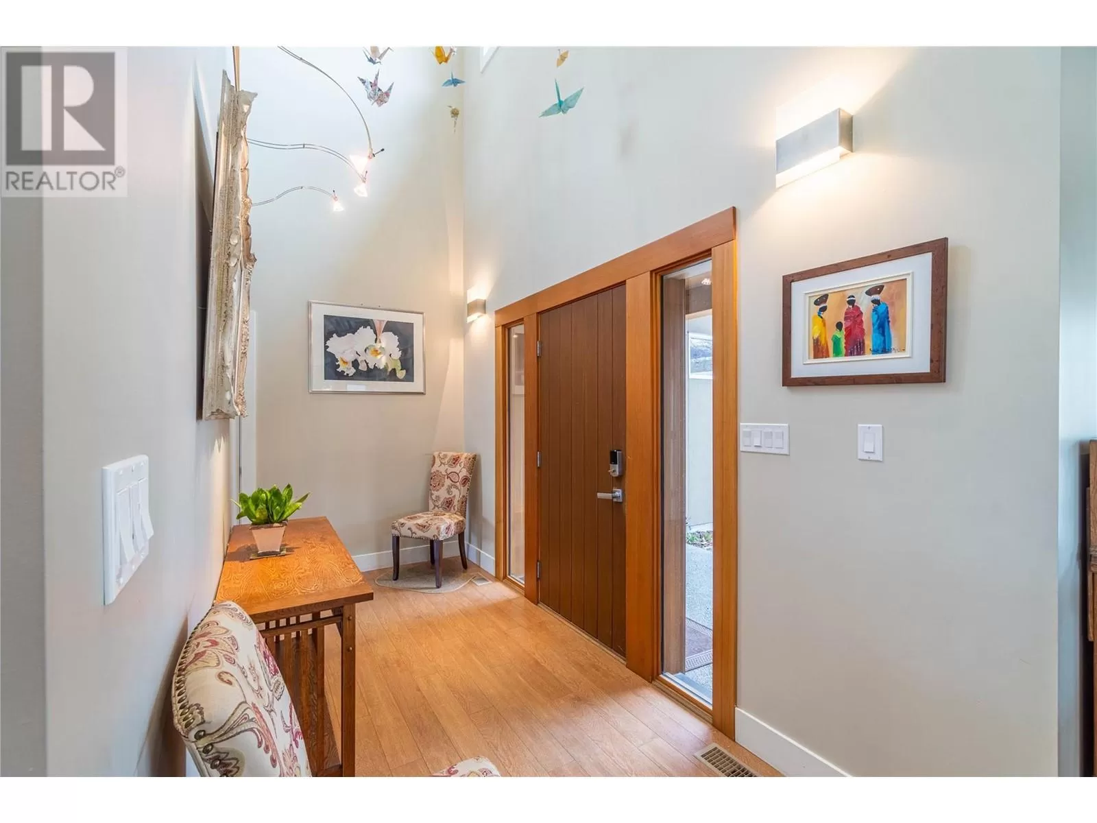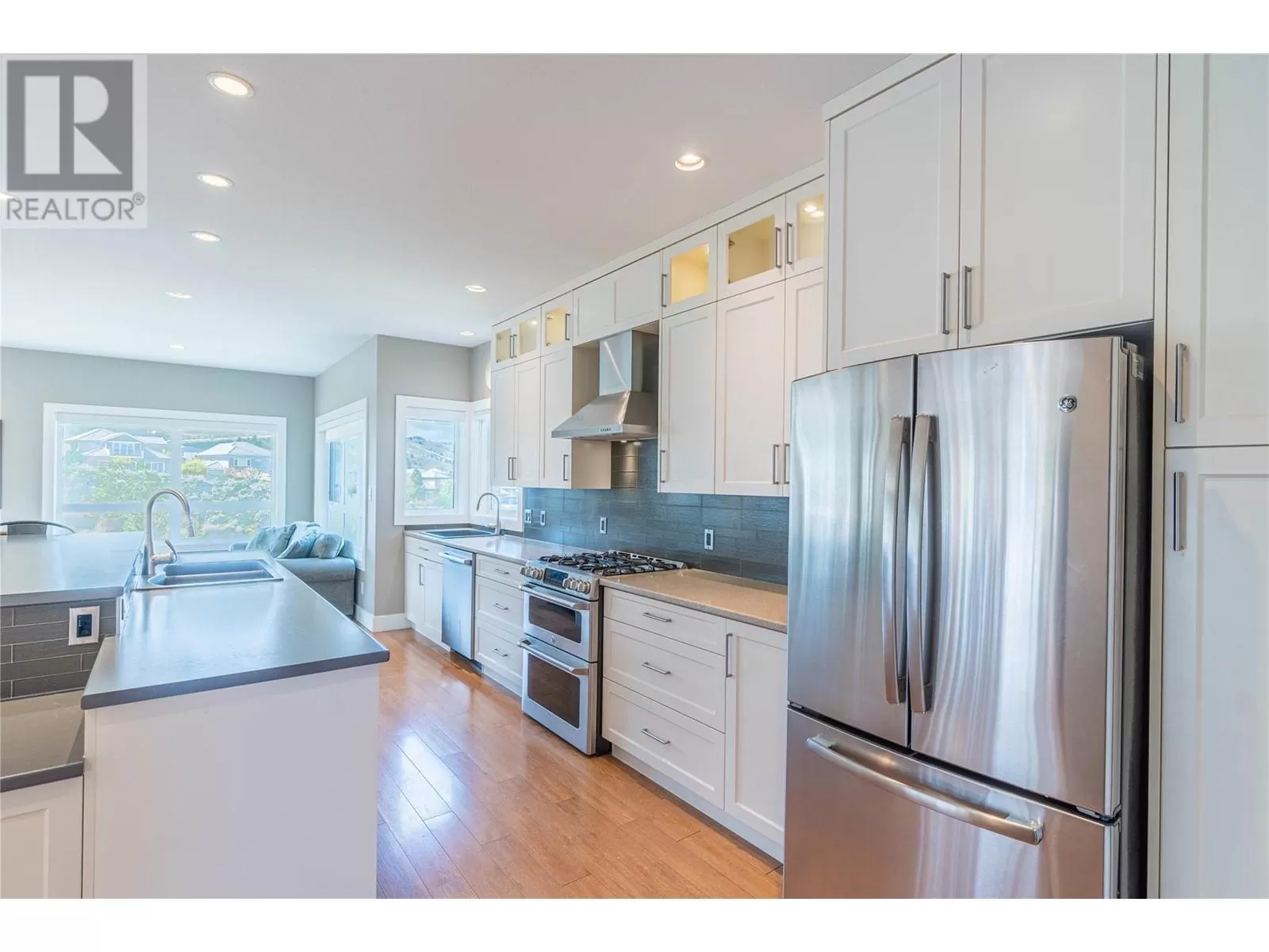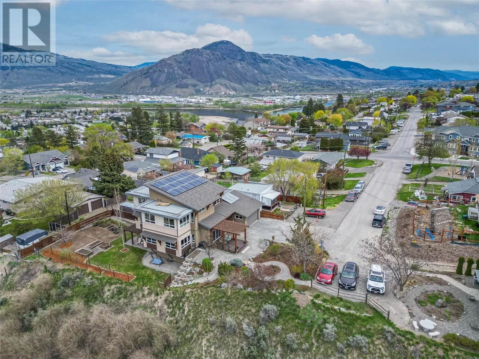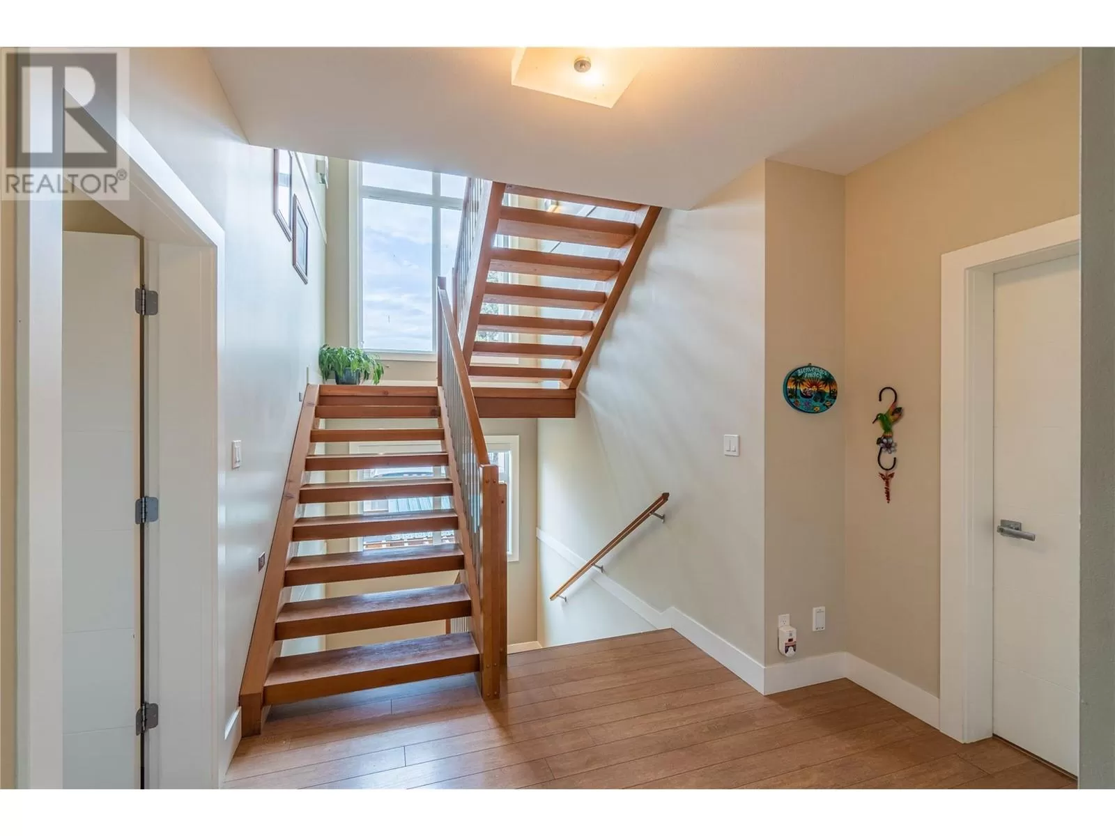 ONE OF A KIND! This is the perfect home for the large family or group living Main floor boasts a breathtaking open plan with huge windows to capture the stunning views. The large island kitchen boasts 2 dishwashers & stainless appliances plus a large walk in pantry for great storage. Wall of cabinets with clever microwave cabinet built in. The spacious living and dining room are great for the largest gatherings with panoramic views from every window. 2 large bedrooms with 4pc ensuites on the main plus 2pc guest bath and office area with outer door. Central shaft for future elevator provides great storage on each level till elevator is desired. Upper floor features 4 more deluxe bedrooms each with a 4pc ensuite and large closet. Upper laundry room, plus a dramatic library that overlooks the vaulted ceiling with feature origami crane mobile. Outer door to relaxation deck and external staircase. Basement level enjoys access to the fenced yard & gardens with UG sprinklers for easy care. 2 more bedrooms down with shared 4pc bath, large rec room and laundry room. This area designed for future suite if desired. Utility room has components for the solar heat recovery system, Central Air, HRV system and extra storage plus featured climate controlled cold room pantry. Property comes with 9 open parking spaces plus double garage. (id:27476)