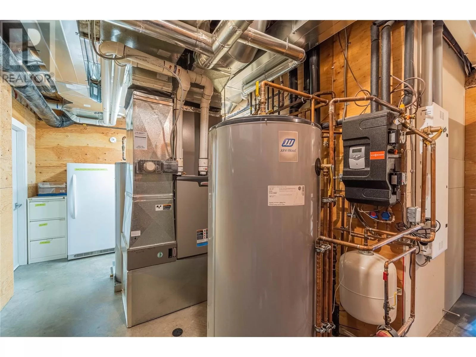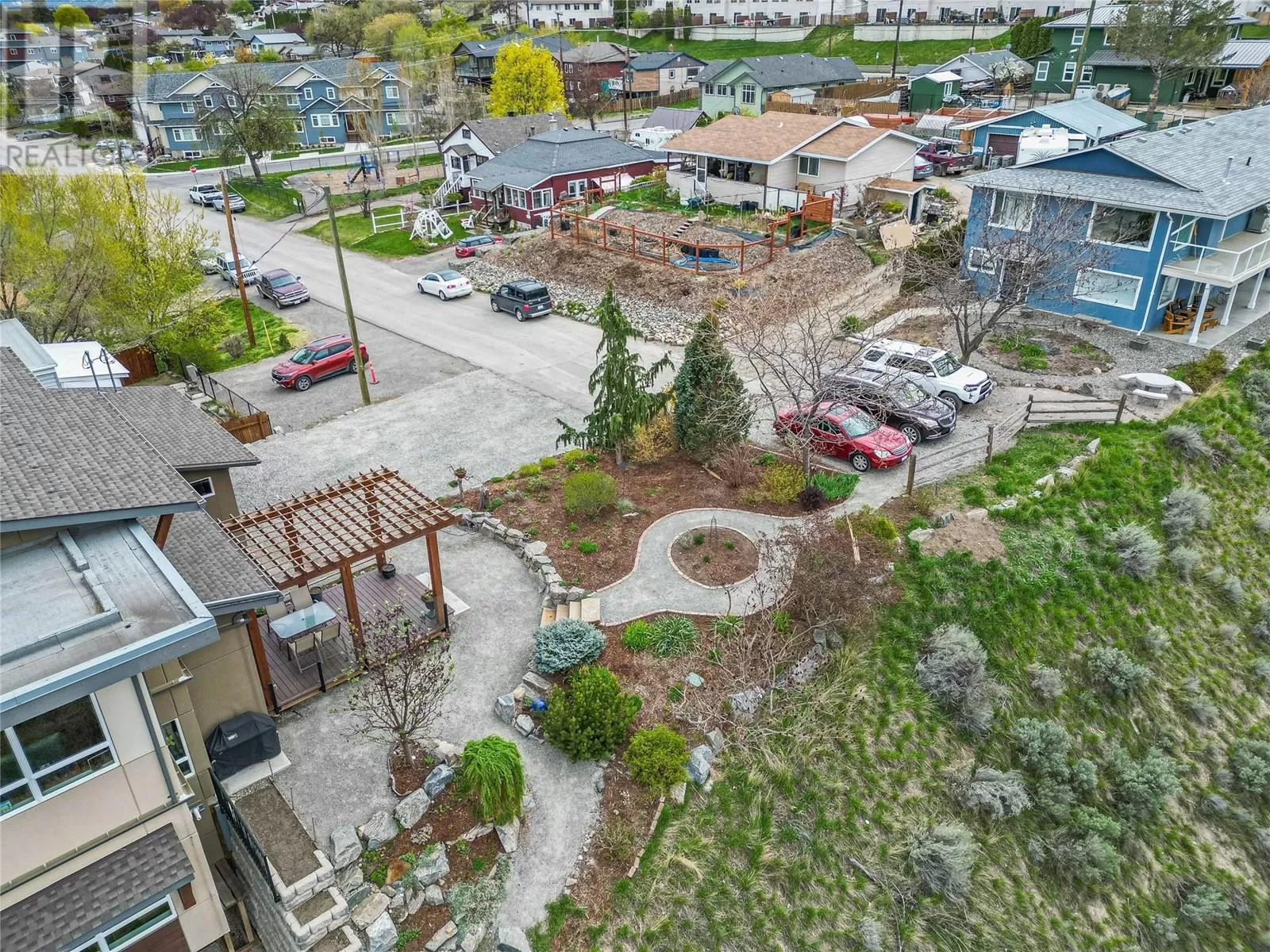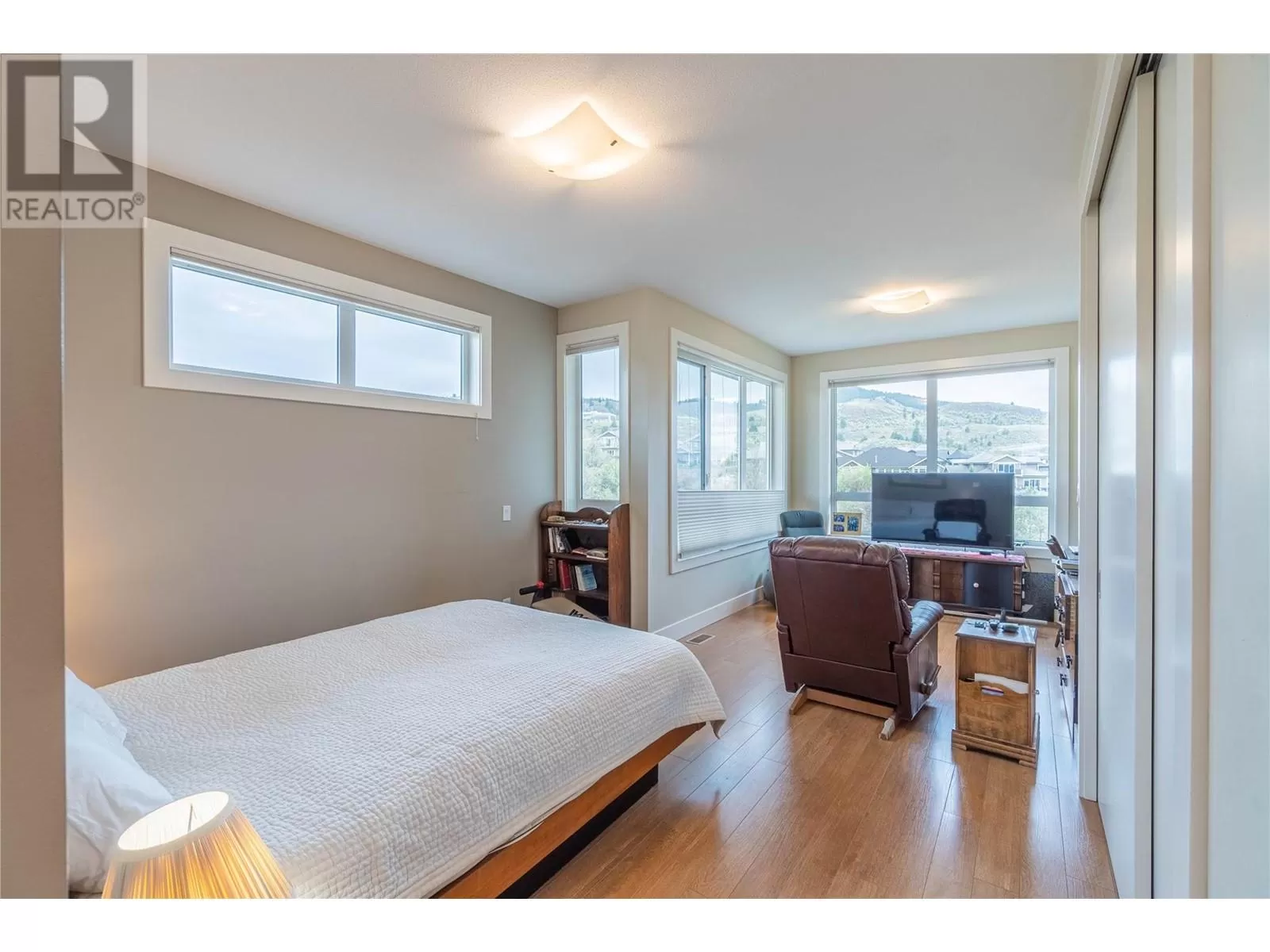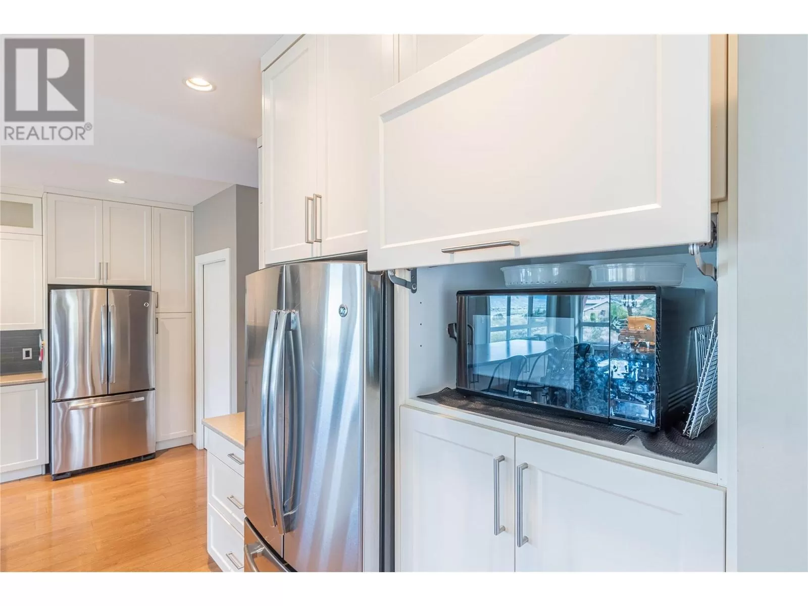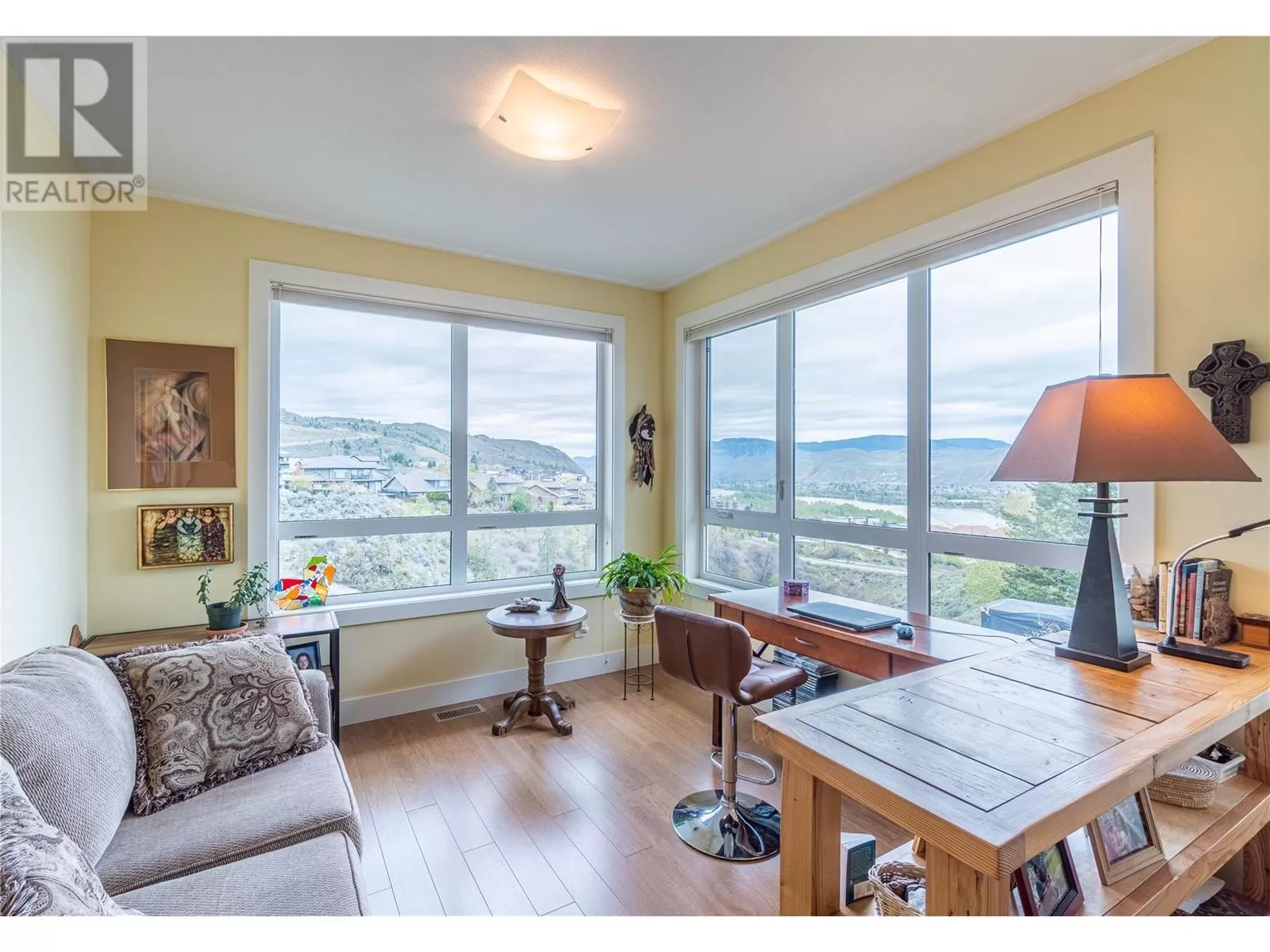ONE OF A KIND! This is the perfect home for the large family or group living Main floor boasts a breathtaking open plan with huge windows to capture the stunning views. The large island kitchen boasts 2 dishwashers & stainless appliances plus a large walk in pantry for great storage. Wall of cabinets with clever microwave cabinet built in. The spacious living and dining room are great for the largest gatherings with panoramic views from every window. 2 large bedrooms with 4pc ensuites on the main plus 2pc guest bath and office area with outer door. Central shaft for future elevator provides great storage on each level till elevator is desired. Upper floor features 4 more deluxe bedrooms each with a 4pc ensuite and large closet. Upper laundry room, plus a dramatic library that overlooks the vaulted ceiling with feature origami crane mobile. Outer door to relaxation deck and external staircase. Basement level enjoys access to the fenced yard & gardens with UG sprinklers for easy care. 2 more bedrooms down with shared 4pc bath, large rec room and laundry room. This area designed for future suite if desired. Utility room has components for the solar heat recovery system, Central Air, HRV system and extra storage plus featured climate controlled cold room pantry. Property comes with 9 open parking spaces plus double garage. (id:27476)