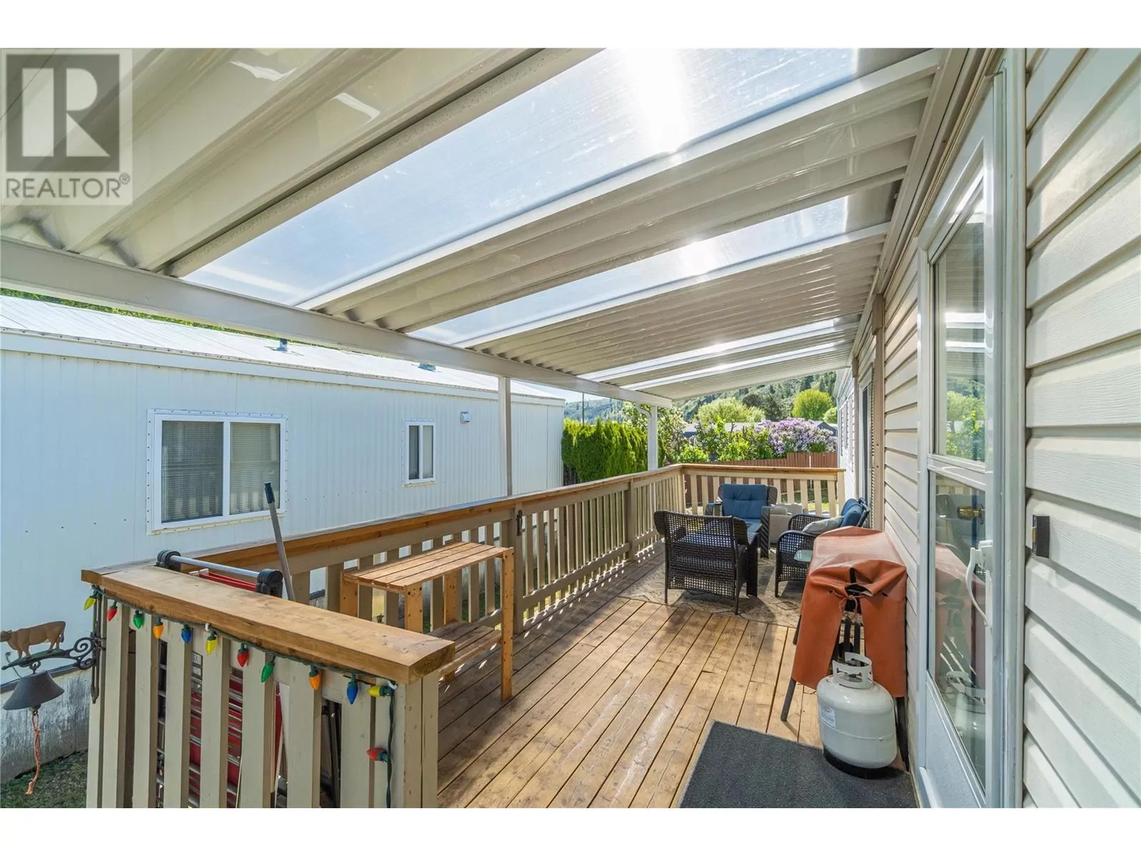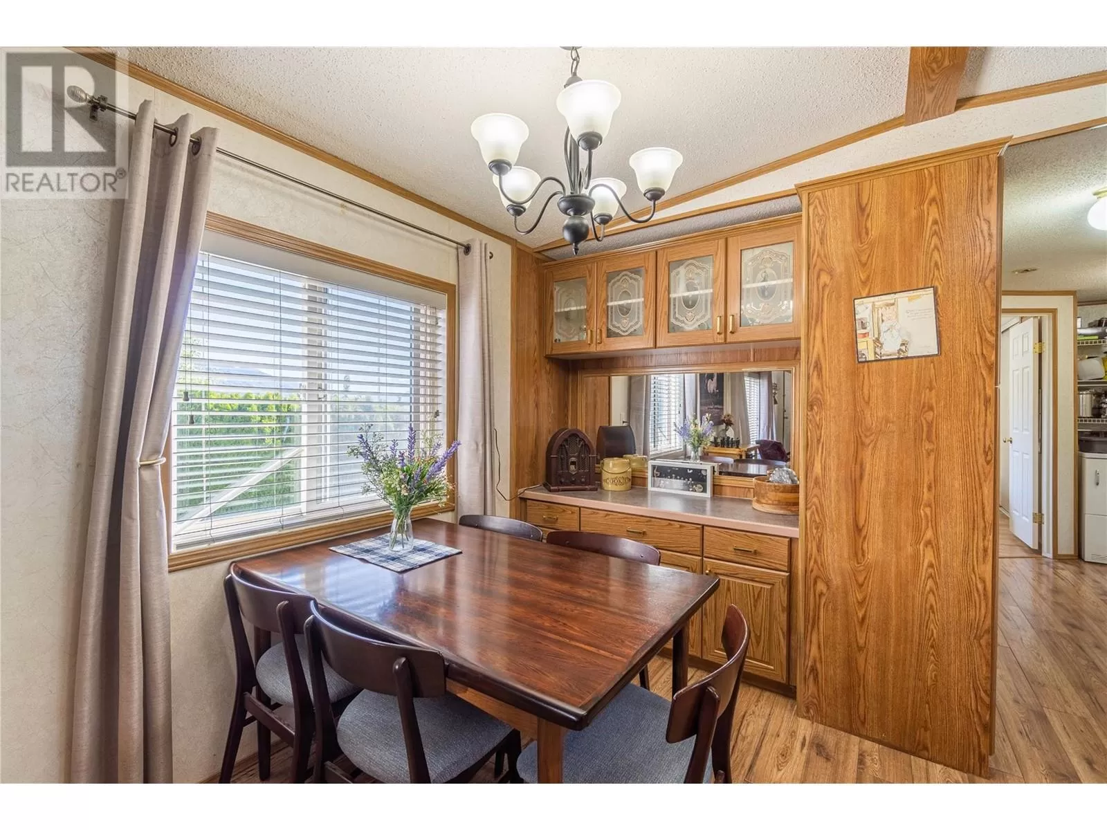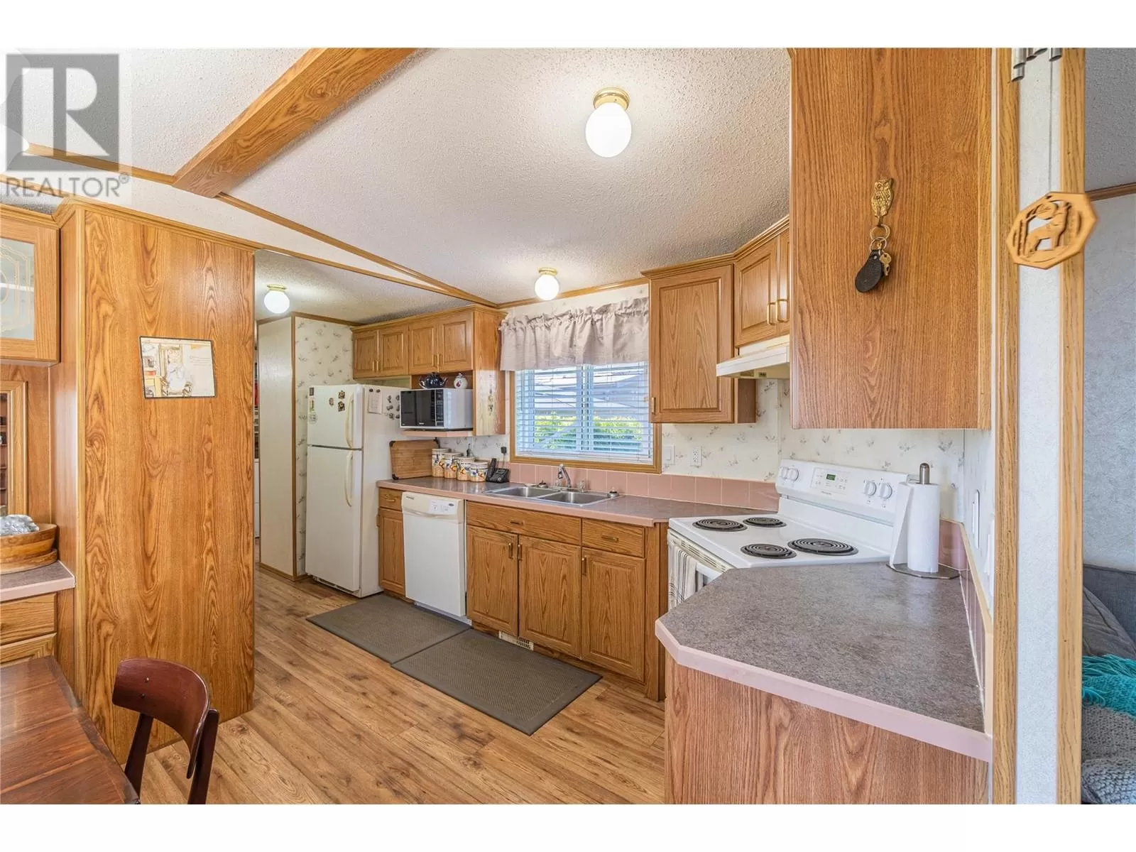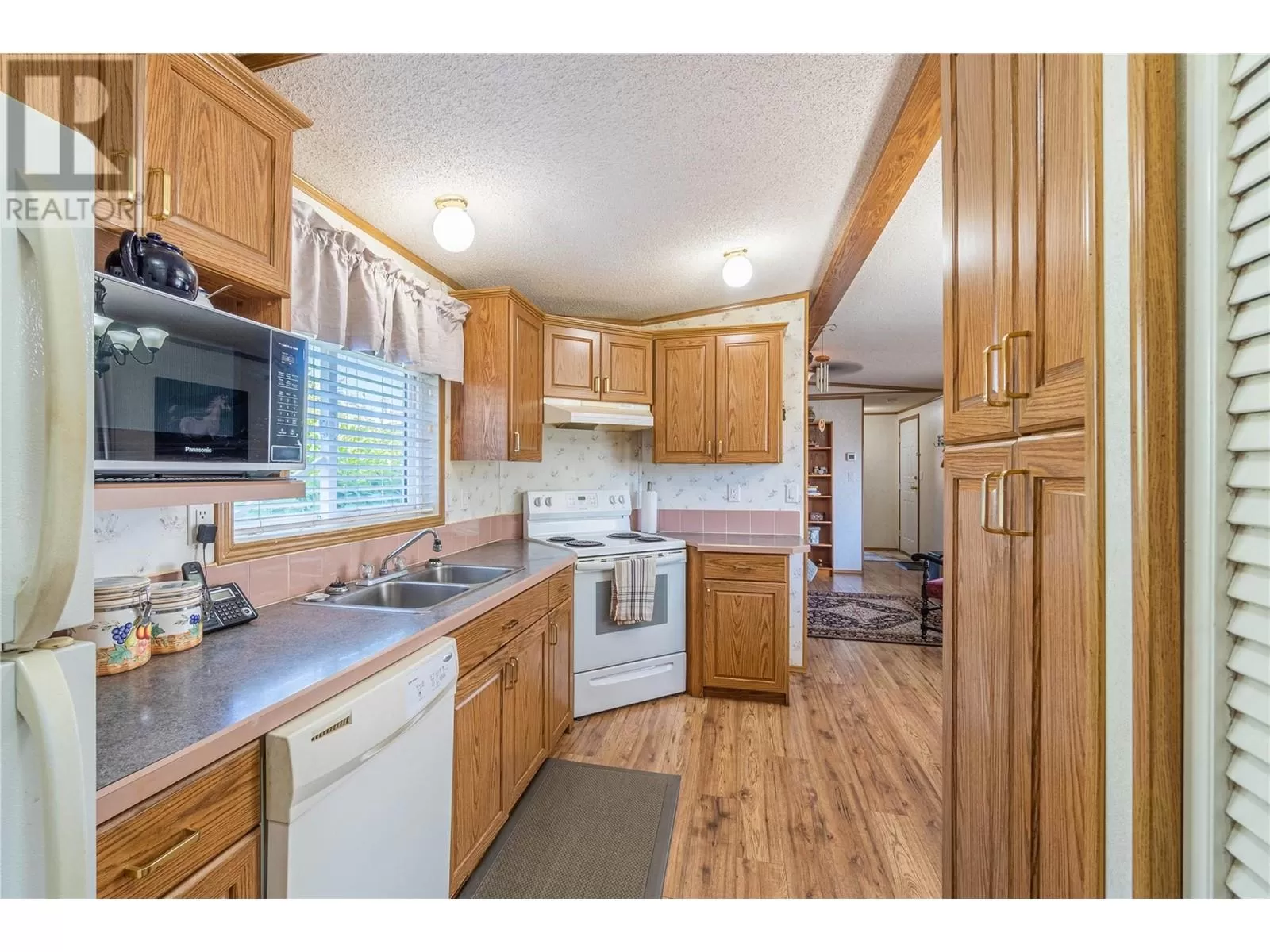 Welcome to this well cared for 3-bedroom, 2-bathroom manufactured home in the welcoming community of Dallas. This home features a bright, open layout with vaulted ceilings and numerous upgrades including high-end laminate flooring, bathroom tile, newer skirting, and updated electrical. The spacious master bedroom includes a full ensuite, and the home comes equipped with 5 appliances, central A/C, and a newer hot water tank and furnace. Enjoy outdoor living on the large, covered sundeck, or relax in the private, fenced yard complete with a garden area and shed. Thereâs parking for up to 4 vehicles, making it ideal for families. One small pet (under knee height) allowed with park approval. Park will sign site lease. (id:27476)
