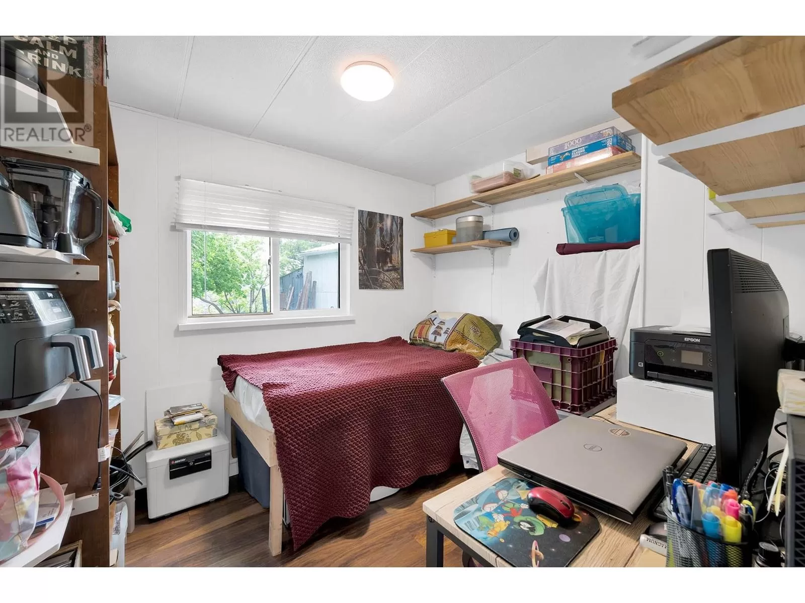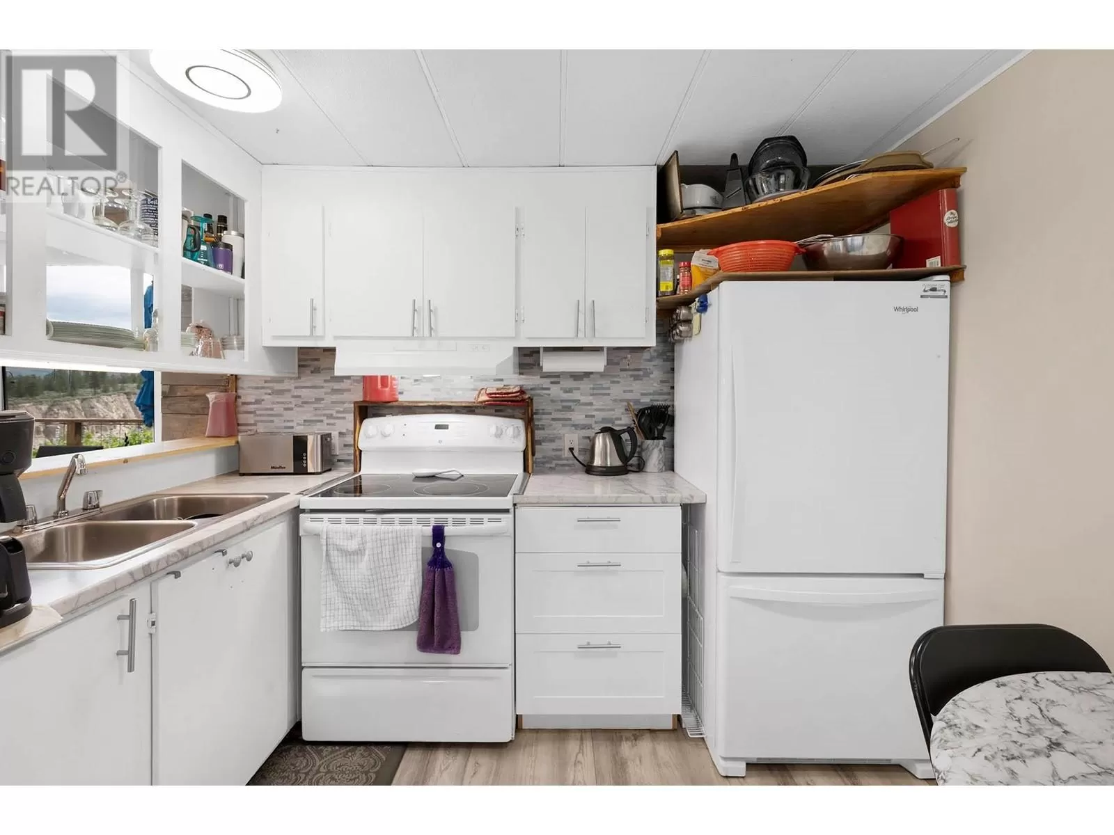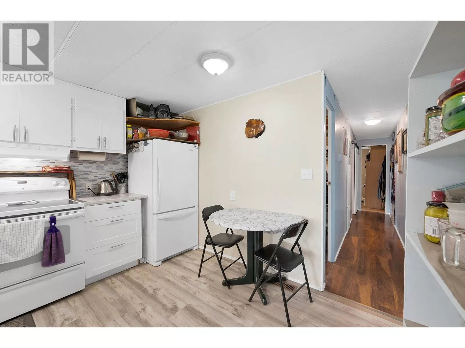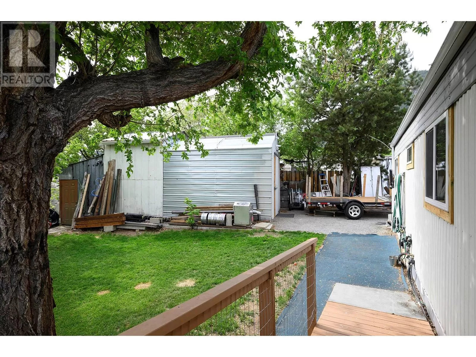 Lovely views from this home at the end of the cul-de-sac. This home features 2 bedrooms, 1-3 piece bathroom with walk-in shower with laundry. Living room is bright with slider out to deck (natural gas outlet on deck) and fenced backyard with mature shade trees. 14 by 12 shop with 9 by 12 addition with electrical & 240 plug. Green house. Recent updates are windows, sliding door, high efficiency furnace, wall air conditioner, flooring, bathroom, countertop & 1 cabinet in kitchen, fridge and washer. Metal roof has been replaced. Early possession possible. (id:27476)