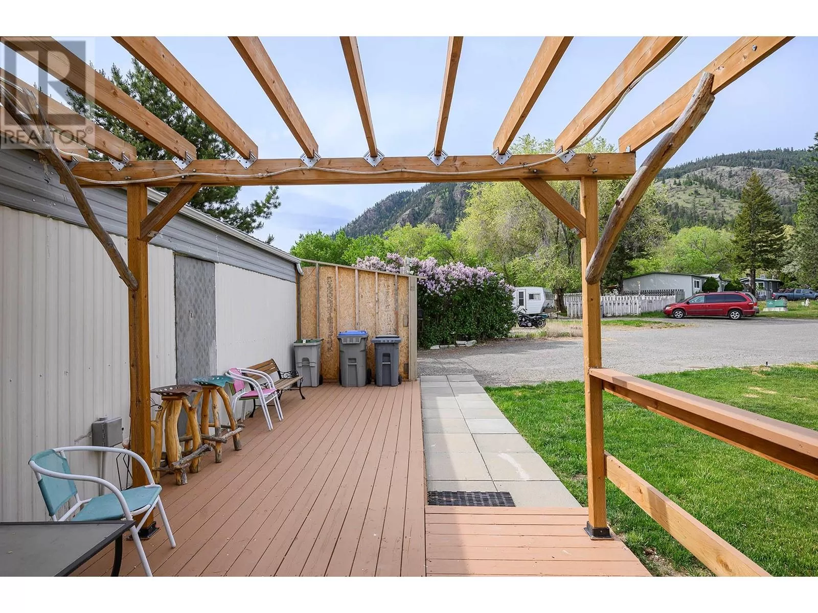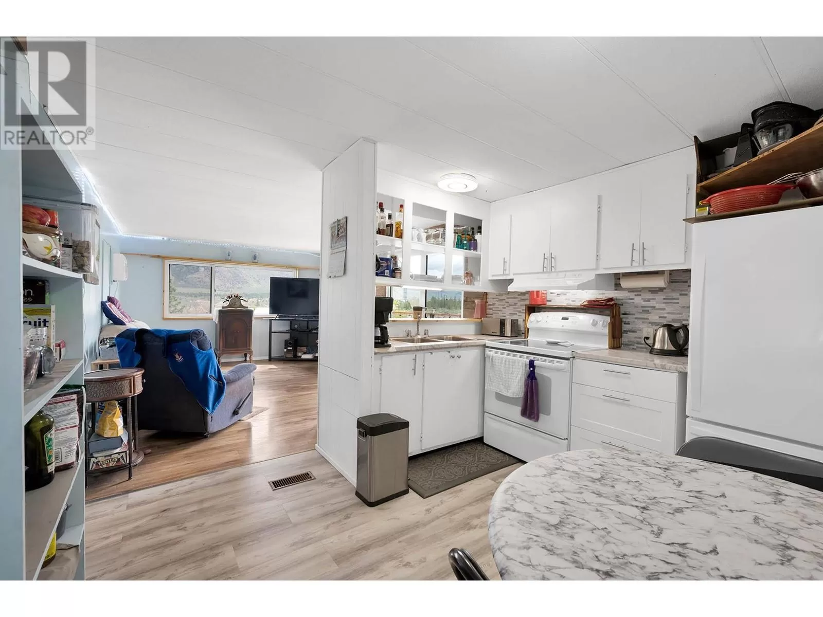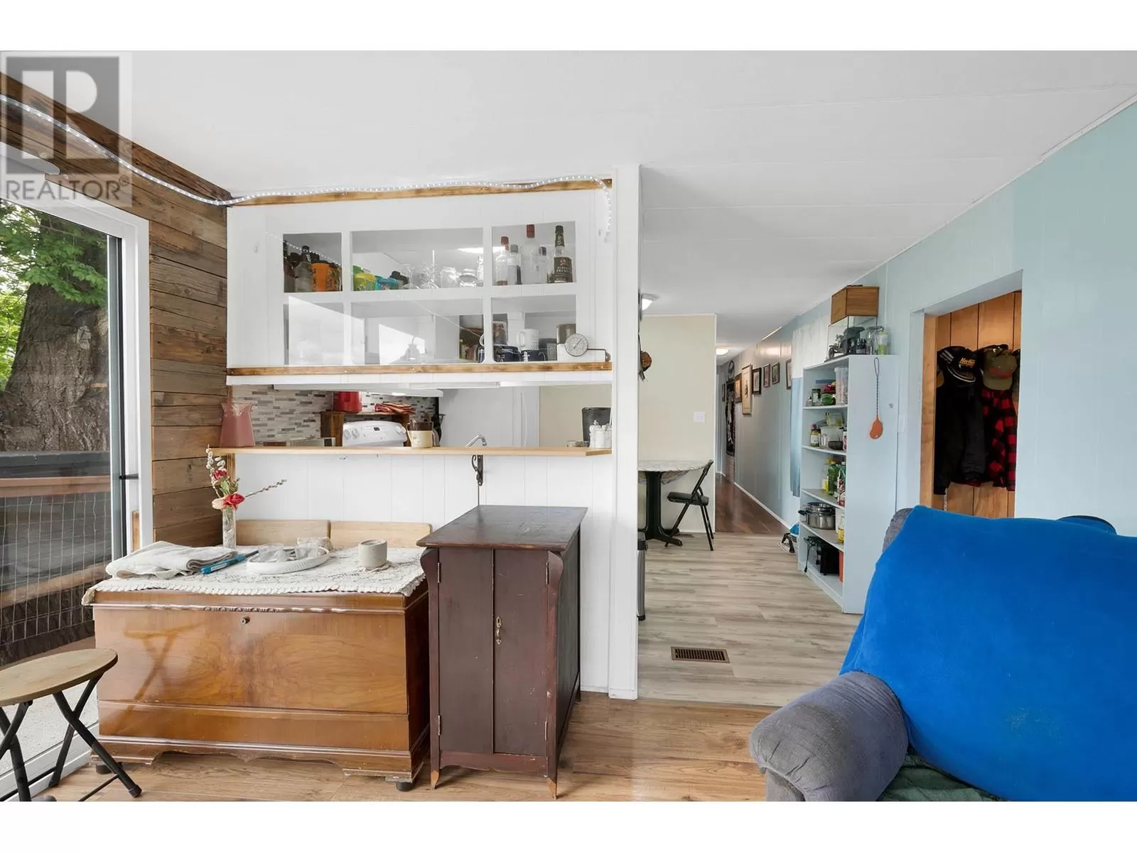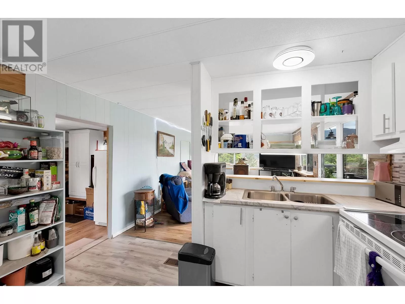 Lovely views from this home at the end of the cul-de-sac. This home features 2 bedrooms, 1-3 piece bathroom with walk-in shower with laundry. Living room is bright with slider out to deck (natural gas outlet on deck) and fenced backyard with mature shade trees. 14 by 12 shop with 9 by 12 addition with electrical & 240 plug. Green house. Recent updates are windows, sliding door, high efficiency furnace, wall air conditioner, flooring, bathroom, countertop & 1 cabinet in kitchen, fridge and washer. Metal roof has been replaced. Early possession possible. (id:27476)