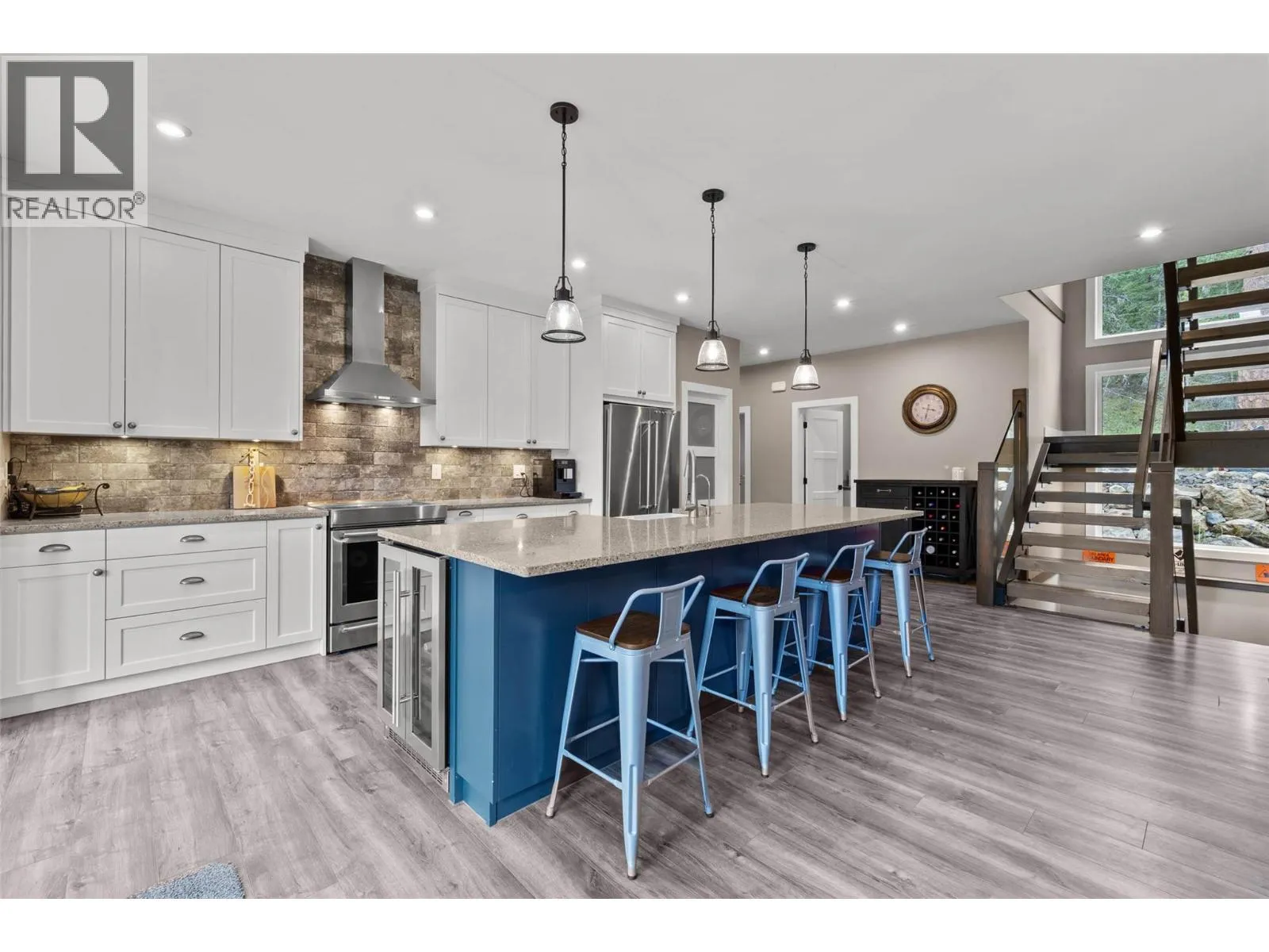 Mountain paradise in Heffley, BC, just 20 minutes from Kamloops, near Big and Little Heffley Lakes, and 15 minutes from Sun Peaks Ski Resort. This exceptional 5-acre property offers a 7-bedroom, 4-bathroom main home and a 1-bedroom, 1-bathroom suite above the garage. A private driveway leads to a spacious parking area with natural stone landscaping. The inviting foyer features vaulted ceilings and opens to a mudroom with a coat closet and sliding doors to a patio with a hot tub, gardens, and firepit. The main hall leads to an open-concept great room with a kitchen boasting quartz counters, stainless appliances, and a pantry. A Rumpford fireplace warms the space, and radiant floor heating runs throughout. The kitchen opens to a south-facing patio with stunning views. The main floor includes a primary bedroom with a walk-in closet and 3-piece ensuite, a powder room, and a laundry room. Upstairs are 4 bedrooms and 2 full bathrooms. The basement features a family room, theatre room, 2 bedrooms, storage, and a utility room. The suite, accessed through the mudroom, includes an open living area with a kitchen, dining, and living room. It has its own laundry, a 3-piece bathroom, and a bedroom with a private patio overlooking scenic surroundings. Additional features include 2 fenced pastures, 20x12 shelters, a heated automatic waterer, 2 hydrants, a heated tack room, a 30-amp hay shed plug, and a 110x80â riding arena. Visit our site for more details. (id:27476)