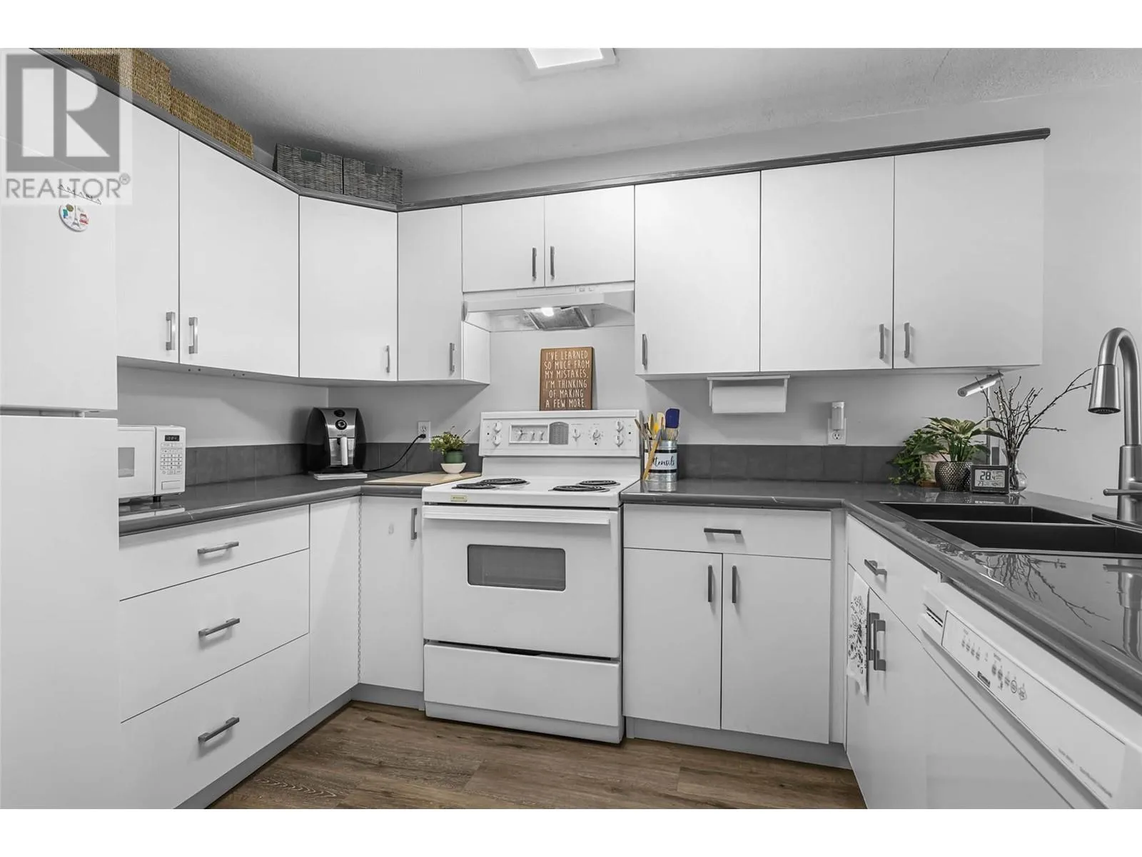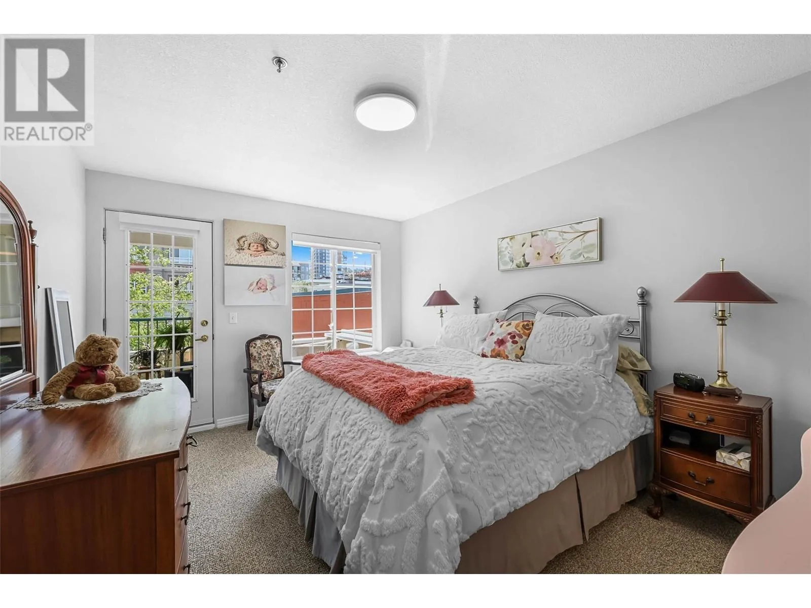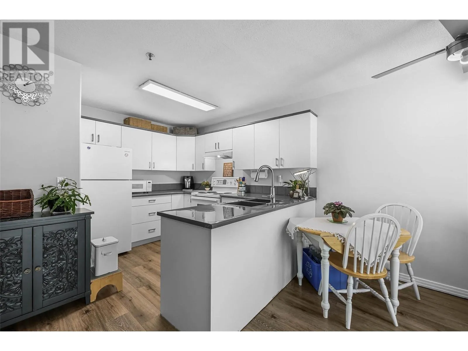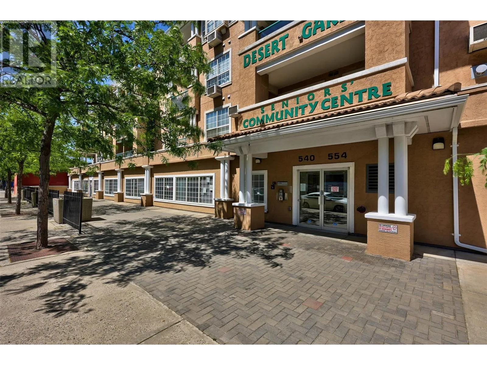 Welcome to downtown living in the popular Desert Gardens building! This bright and inviting 2-bedroom, 1-bath corner unit offers added privacy and a fabulous covered deck with a lush garden feelâperfect for enjoying the surrounding trees in bloom. The open-concept layout features updated counters, flooring, and fresh paint throughout. A cozy gas fireplace adds warmth to the spacious living area. The primary bedroom has access to deck and includes a large walk in closet. The 2nd bedroom has a convenient Murphy bed for when needed making this a great flex room depending on needs . Enjoy the convenience of in-unit laundry and the benefits of a well-maintained building with no age restrictions and pets allowed (with restrictions). Includes 1 underground parking stall and 1 storage locker, both assigned by strata. Located in the heart of Kamloops, you're just steps from shopping, dining, riverside parks, and transit. A great opportunity for comfortable, low-maintenance living in a vibrant community! (id:27476)