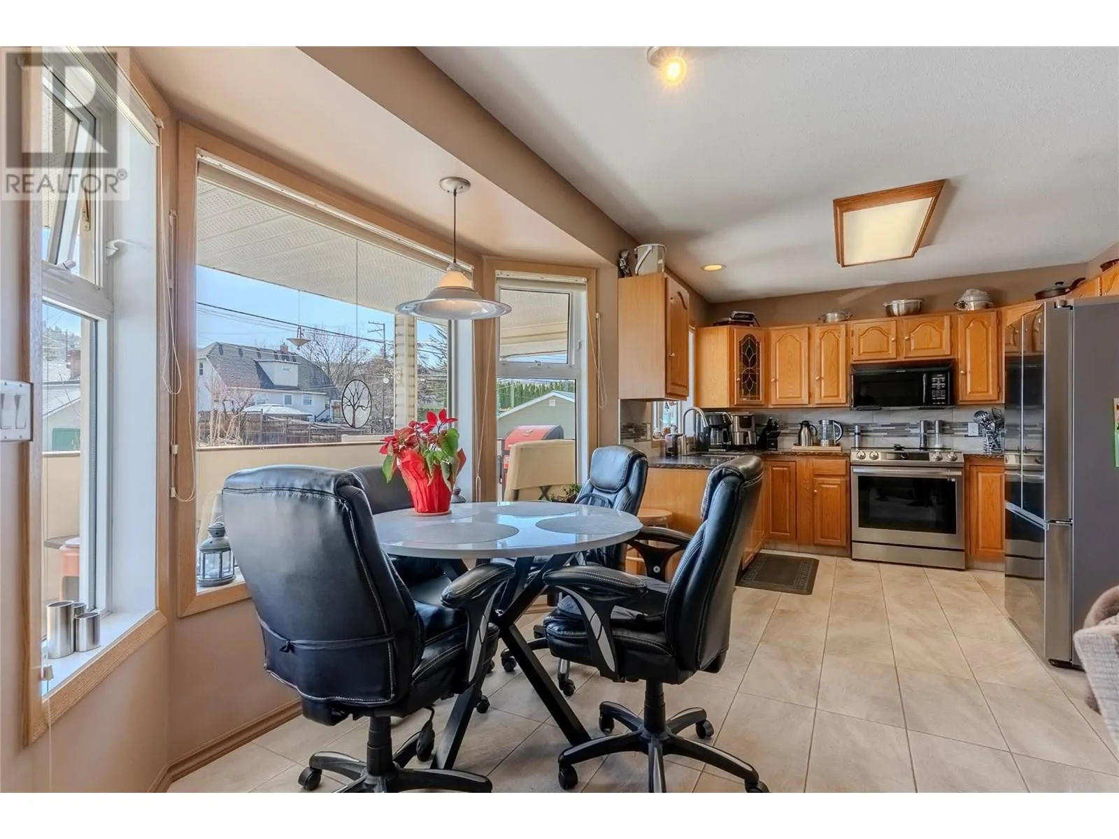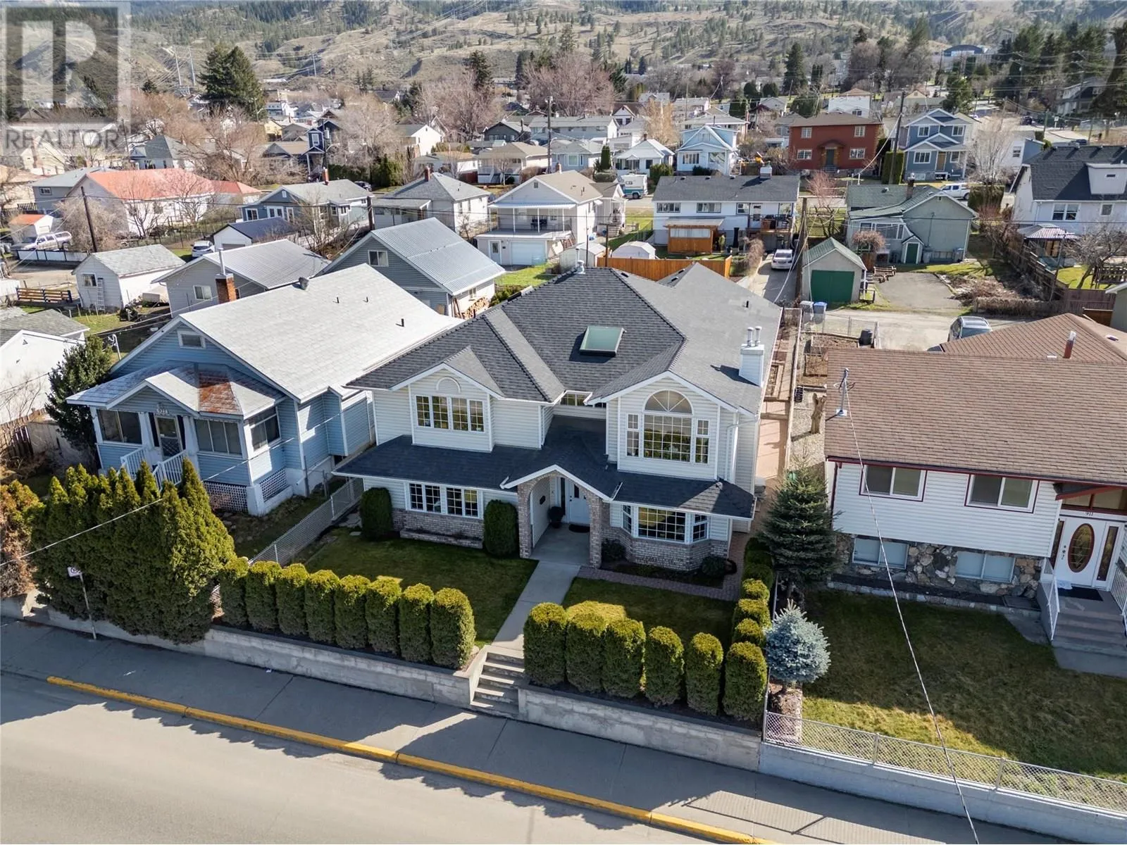 Located downtown close the hospital, schools, transit and the heart of the city, this property has been well maintained and shows pride of ownership. Inside, the upstairs features 3 bedrooms with the large master having a 3 pc en-suite with new tile flooring and quarts counter tops. Additional 4pc bathroom on the main and lots of room for hosting with the living room and additional family room. The kitchen has solid wood cabinetry, updated stainless steel appliances, dining nook, formal dining room and access to the covered deck where you will be barbequing. Downstairs features 2 additional bedrooms rec room, 3pc bathroom with a stand up shower. The kitchen is currently set up with a fridge, freezer dishwasher, microwave and is wired for a stove (no outlet but wires are ran) and gas. Current owners never used as a rental but it can be set up for future use. Other features and highlights include, multiple skylights, roof and gutters (2017) tile work and counters tops (2018) furnace and AC (2019) washer & dryer (2020) and fridge and stove (2021), double car garage. Lots of parking with access in the rear of the property through the alley. Additional storage shed and 3 fire places throughout the home. Measurements to be verified by buyers if deemed important. (id:27476)