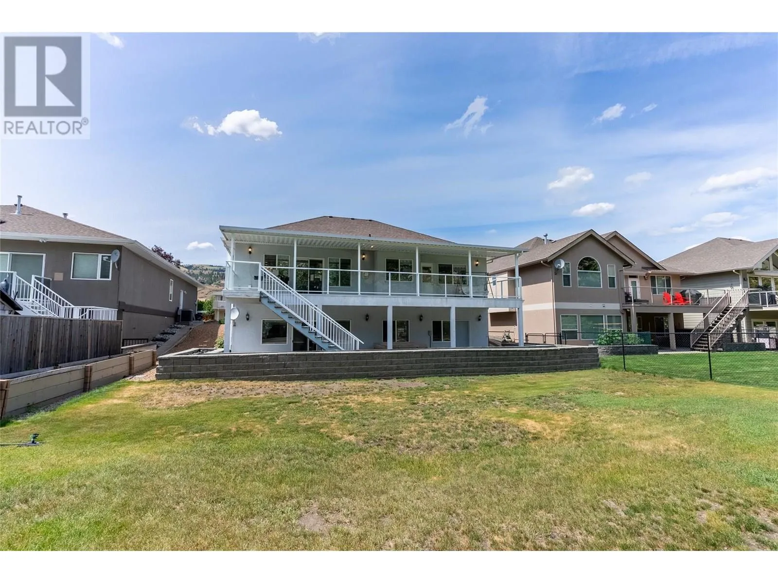 Custom-built riverfront rancher in one of Westsydeâs most desirable neighborhoods, steps from The Dunes Golf Course. This energy-efficient 5-bed, 3 bath home offers a functional layout with 9' ceilings, a spacious living room with hardwood flooring a gas fireplace, large windows with river views, a well-designed island kitchen with granite counters, custom cabinetry, and a double-door pantry, plus a dining area that opens to a full-length covered deck with a natural gas BBQ hookup. There are four bedrooms on the main floor, including a primary suite with deck access, a walk-in closet, and a 4-piece ensuite with a soaker tub. The front bedroom with double doors off the foyer works great as a home office. The main floor laundry includes appliances and leads to the attached double garage. Long, double driveway offers extra parking for guests or larger vehicles. Downstairs features a finished walk-out basement with radiant floor heat, large rec room, media room, 5th bedroom, 4pc bath, and plenty of storage. Access to a covered patio and hot tub area from the basement. Solar panels, geothermal heating/cooling, sun tunnels, underground sprinklers, central vac, and low-maintenance yard with direct river access. Suite potential and Close to school for the kids, parks, stores and the other amenities of daily life. (id:27476)