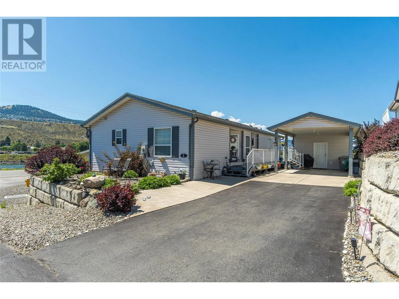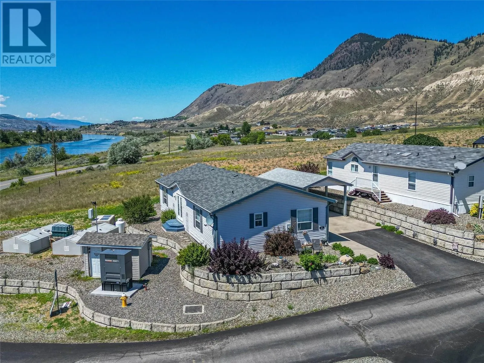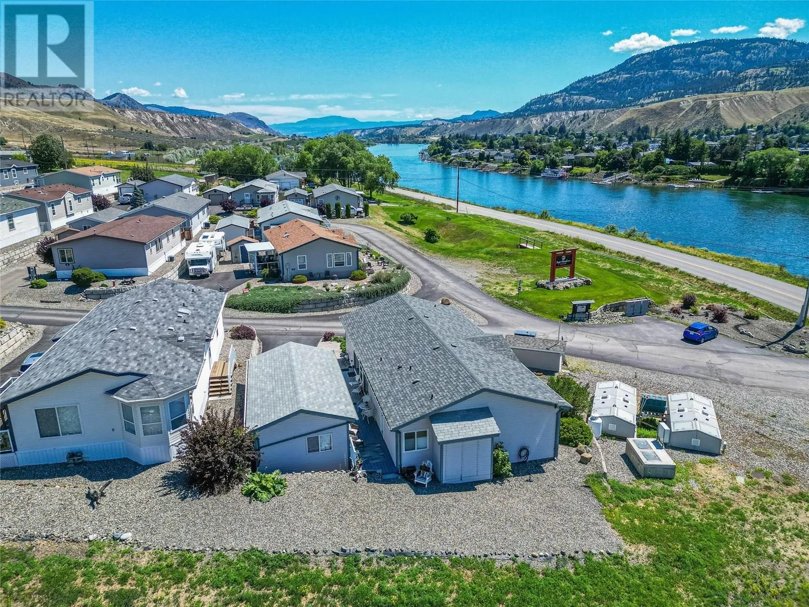 This ideally located double wide 3 bedroom 2 bathroom home is perfect for anyone looking to downsize and have a peaceful piece of paradise. Nestled right in front of this quiet park, this home has the best mountain views across the river. This home has geothermal for reasonable heating and cooling. This home is bright and airy with open concept living space with double French glass doors. Well laid out kitchen with a pantry off the laundry room. Get cozy in the winter with an electric fireplace in the living room or enjoy luxurious baths in your oversized spacious 5 piece ensuite. Covered parking is a must in the winter and you have it here! No need to give up storage as there are plenty of closets inside the home as well as an 8x14 storage shed at the back of the carport. If you've been waiting and looking for your next home, look no further, this home is ready for it's next owners. This pad rent for this unit is $585/month and includes water and sewer. (id:27476)