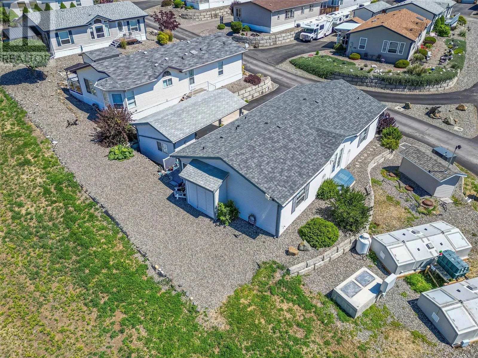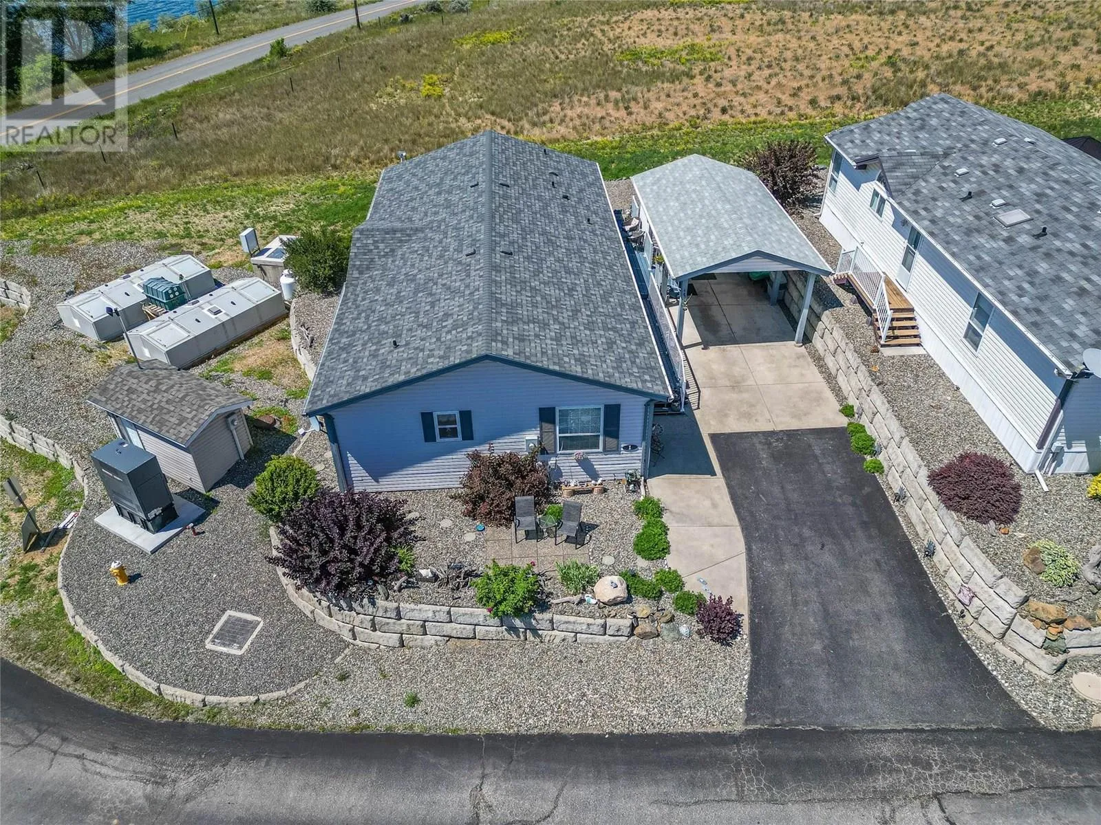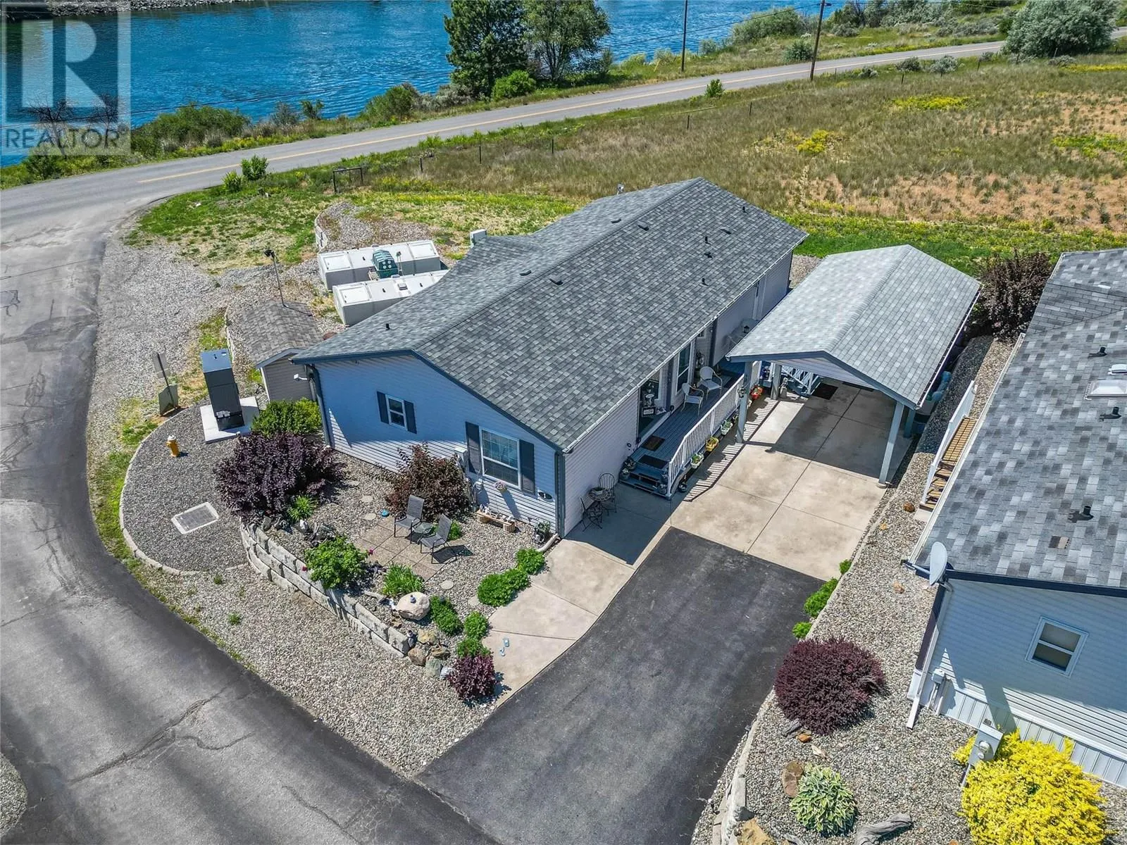 This ideally located double wide 3 bedroom 2 bathroom home is perfect for anyone looking to downsize and have a peaceful piece of paradise. Nestled right in front of this quiet park, this home has the best mountain views across the river. This home has geothermal for reasonable heating and cooling. This home is bright and airy with open concept living space with double French glass doors. Well laid out kitchen with a pantry off the laundry room. Get cozy in the winter with an electric fireplace in the living room or enjoy luxurious baths in your oversized spacious 5 piece ensuite. Covered parking is a must in the winter and you have it here! No need to give up storage as there are plenty of closets inside the home as well as an 8x14 storage shed at the back of the carport. If you've been waiting and looking for your next home, look no further, this home is ready for it's next owners. This pad rent for this unit is $585/month and includes water and sewer. (id:27476)