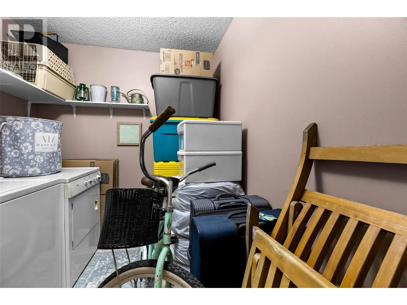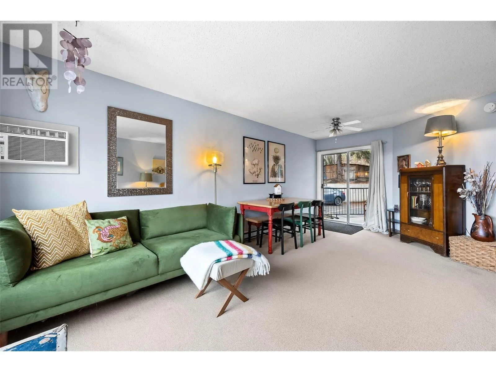 Investor Alert! Meticulously maintained 2-bedroom apartment in a great location close to Downtown, Schools, Parks, Sagebrush Theatre and new Daycare Centre right across the street. Located on the ground floor, you'll enjoy easy access to a covered patio and separate entrance for yourself while being perfectly situated within walking distance to all amenities offering a truly desirable lifestyle. Enjoy the convenience of your spacious walk-in closet, large living room and in-suite laundry storage room with an additional common room storage space in the basement. New AC unit installed (2023). With one parking stall included, and potential to rent a second parking spot with strata approval. Rentals allowed. Virtual Tour available. (id:27476)