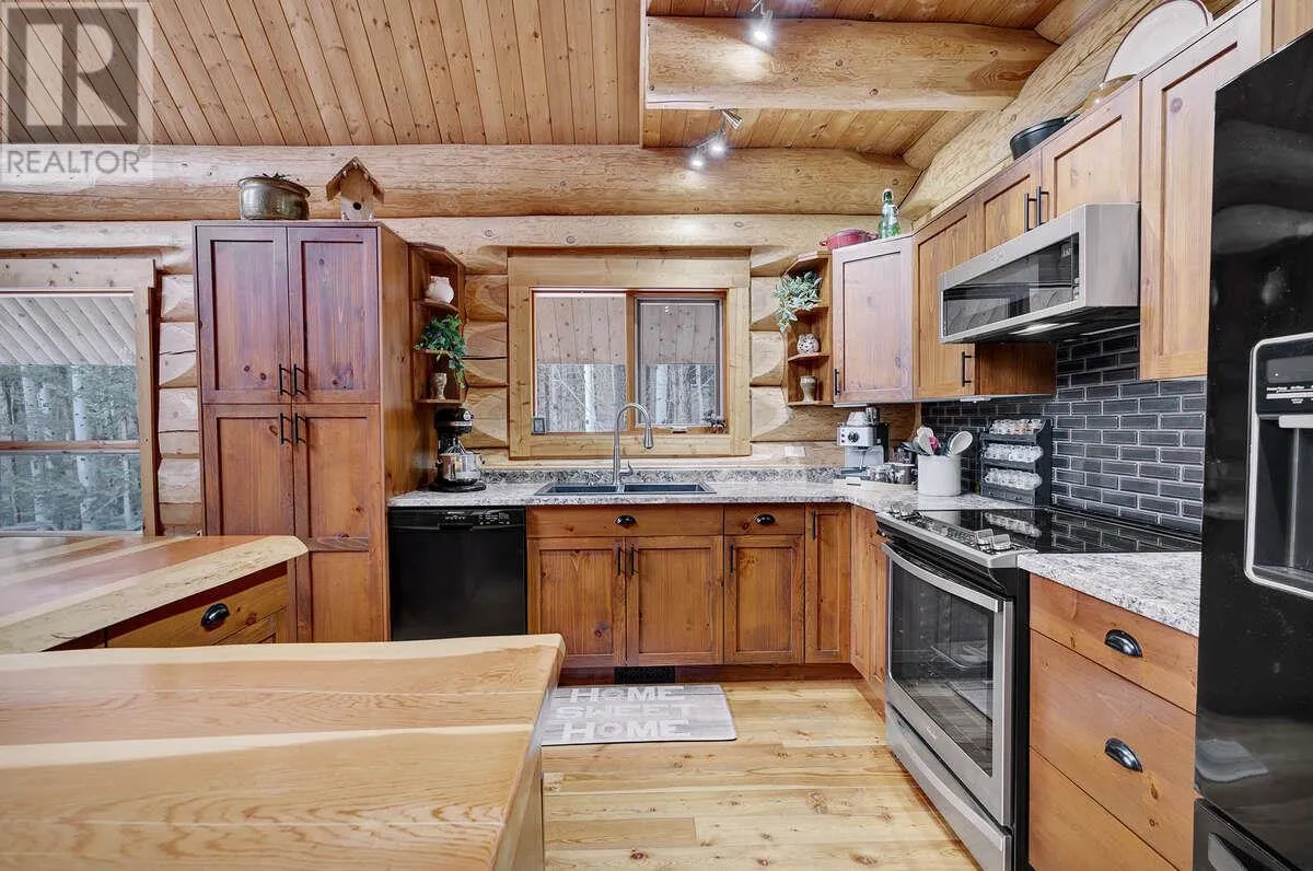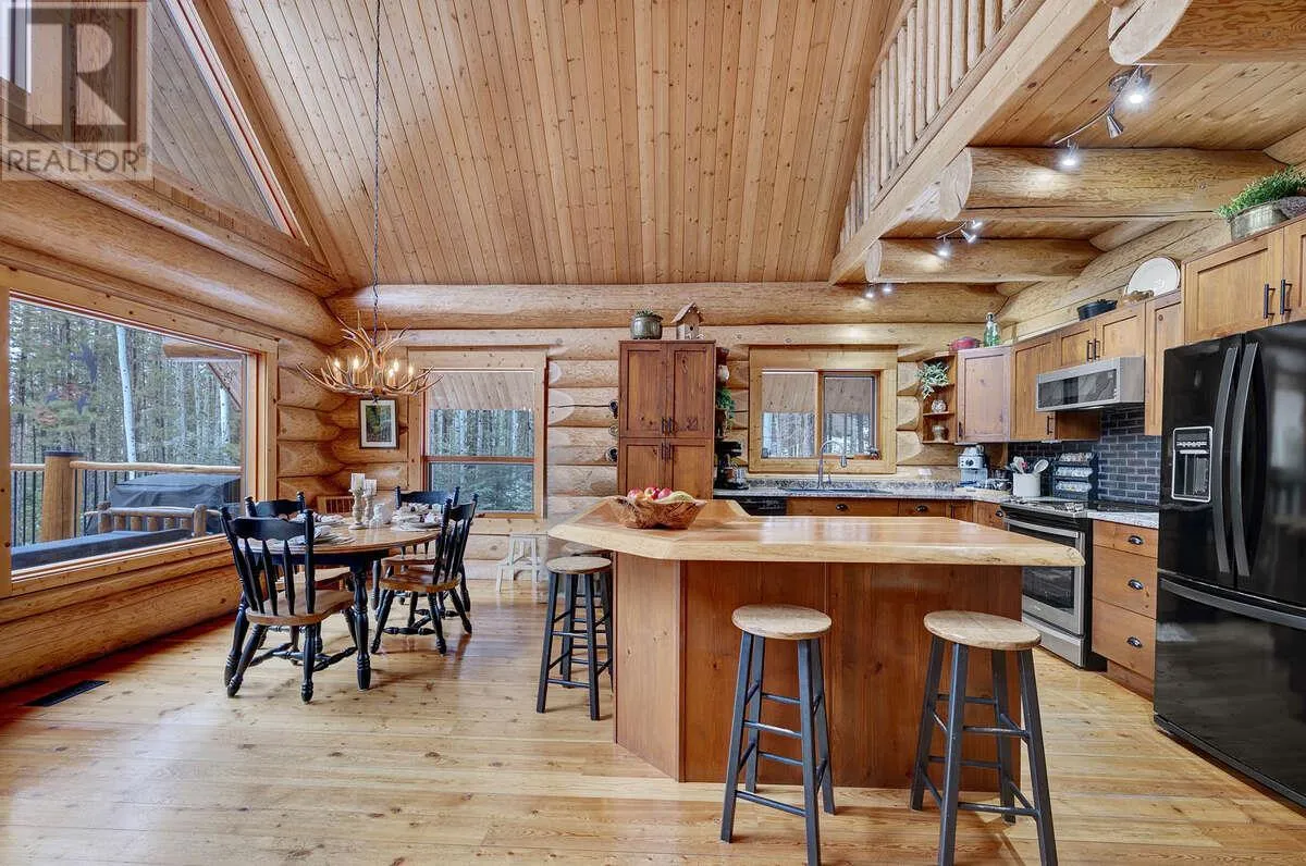 For more information, please click Brochure button. Quick Possession Available! Welcome to 3729 Ridgemont Drive, a stunning custom log home nestled on a private 1-acre lot in the peaceful community of Lac Le Jeune, BC. Surrounded by nature and backing onto crown land with direct access to the Gus Johnson Trail and the lake, this home offers a truly unique outdoor lifestyle. Designed for year-round comfort in high-elevation climates, it features a durable metal roof, SIPS roof panels, ICF foundation, HRV system, a Pacific Energy wood stove, and two electric forced-air furnaces. The open-concept layout offers a warm and inviting living space with large windows that frame forest views and welcome in natural light. The home includes three bedrooms, three bathrooms, an office, and a versatile flex room. The lower level boasts a fully self-contained unregistered suite with its own entrance, kitchen, and separate furnaceâideal for extended family or guests. Outside, enjoy the hot tub or gather around the fire pit in the fully fenced backyard. Additional highlights include a 10x10 storage shed, 200-amp service with potential for a future shop or garage, and recent upgrades to the community water system. Located just minutes from the world-class Stake Lake cross-country ski trails and Lac Le Jeune Resort, this property is also on a school bus route and benefits from a fire mitigation plan currently in progress. (id:27476)