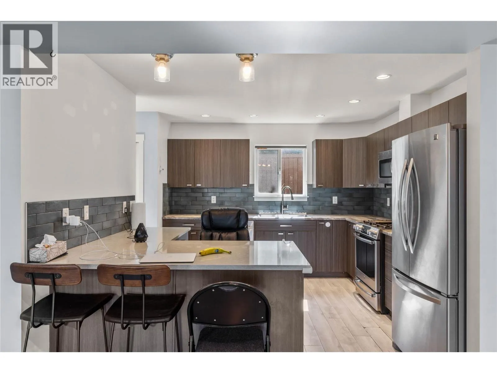 This beautiful 2 bdrm 3 bath townhouse in Pineview Valley. Modern kitchen with a convection gas stove, new dishwasher, quartz counter on the peninsula, modern tiled backsplash, and large new stainless steel sink. Huge open concept living/dining/kitchen on the main floor, with updated light fixtures and a fan in living room, also with plenty of natural light, and new Hunter Douglas blinds. Access to back BBQ/grass area, as well as a nice private, covered deck off the front to relax on. The third floor has a master retreat, ensuite bathroom and walk in closet. There is a second extra large bedroom and another bathroom. The Basement has a utility/laundry room, and a great family room for weekend movie watching! Come and see this beautiful home before it's gone! Pets and rentals allowed. Buyer to confirm all measurements of importance. Call LB to view. (id:27476)