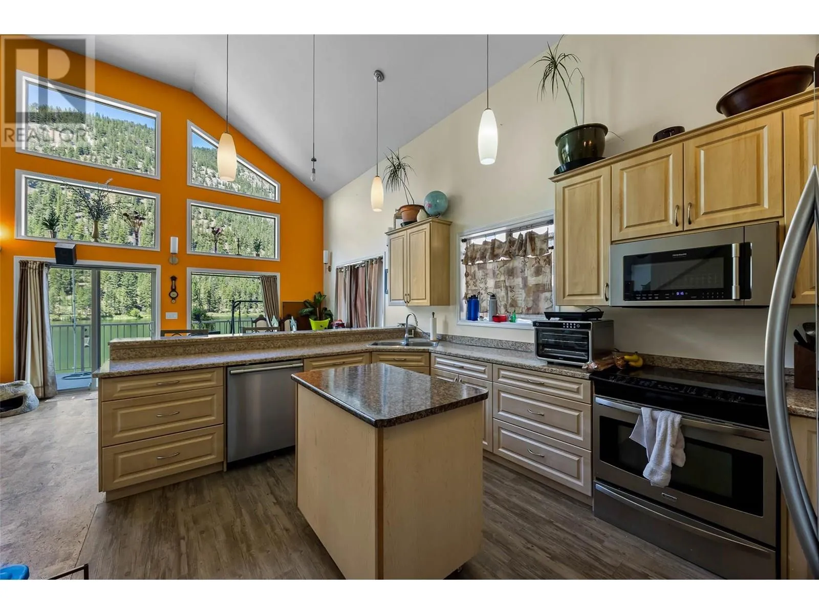 Nestled on the tranquil shores of Paul Lake, just 20 minutes from Kamloops, this stunning lakefront home offers the perfect blend of natural beauty and modern comfort. Featuring breathtaking water views, the property boasts a private dockâideal for boating, swimming, or simply relaxing by the water. Inside, you'll find a spacious, open-concept layout with soaring vaulted ceilings that fill the home with natural light. The well-designed floor plan includes three generous bedrooms, including a master suite complete with a five-piece ensuite bathroom. Double garages over 30' deep per side provide ample storage for vehicles and outdoor gear, while the surrounding landscape offers endless opportunities for recreation and relaxation. Donât miss this rare opportunity to own a piece of paradise in the welcoming community of Paul Lake. (id:27476)