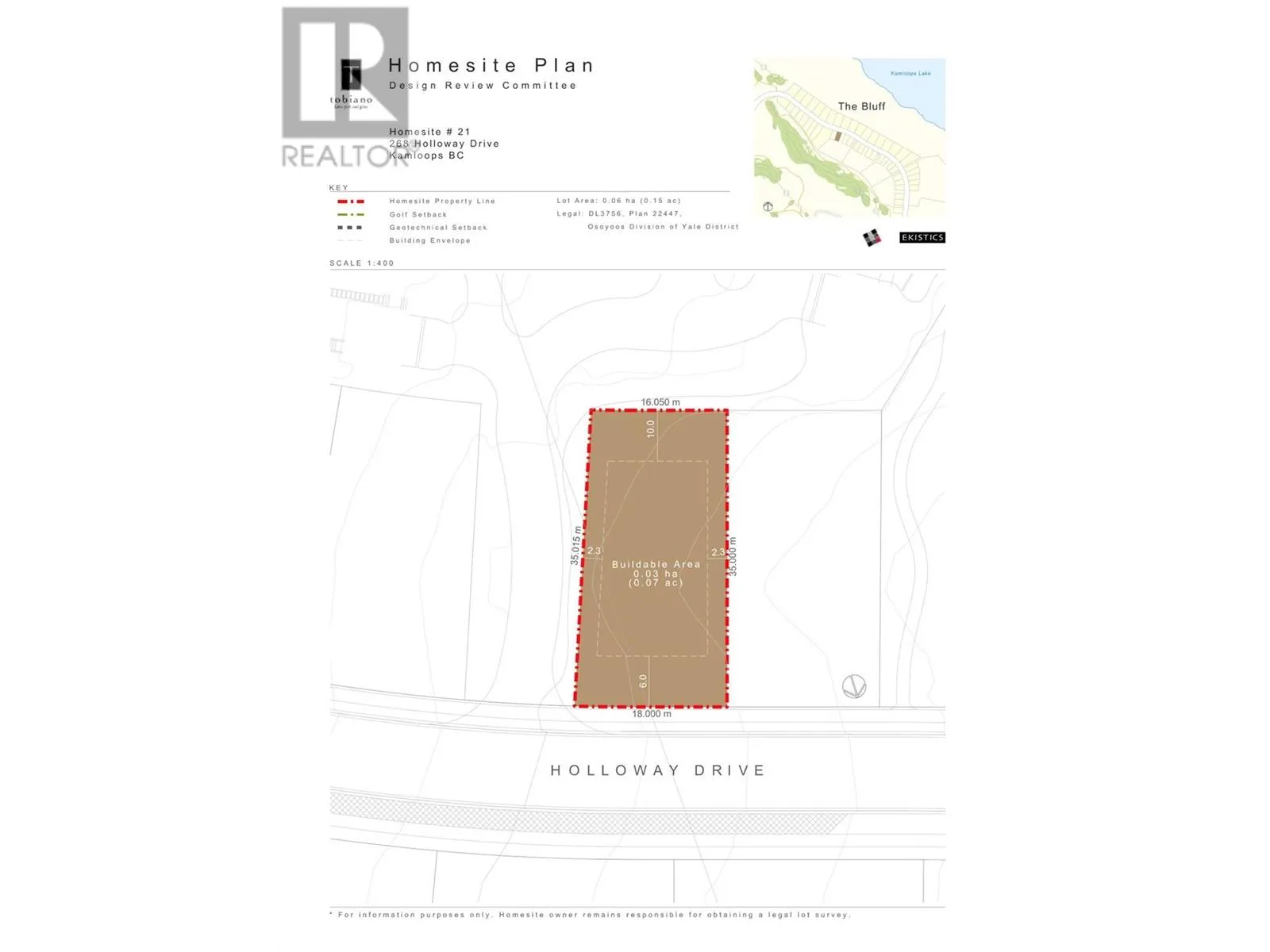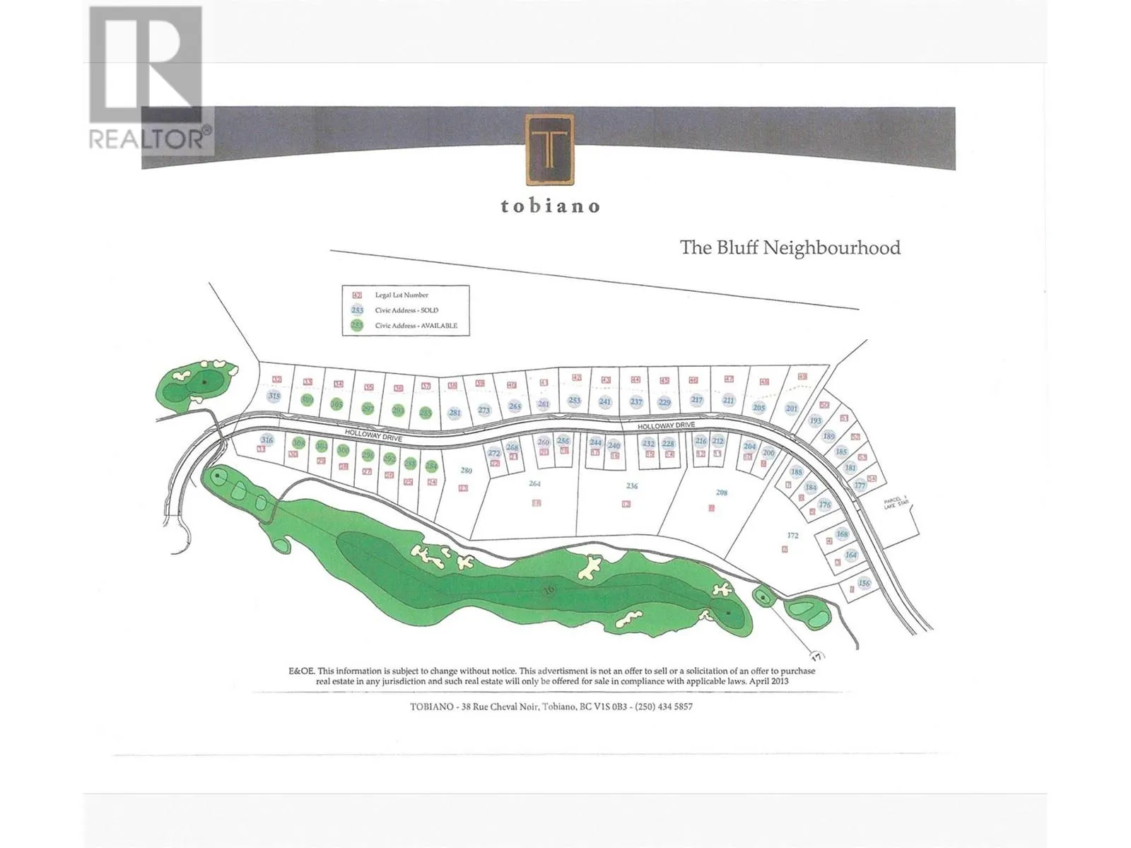 Don't miss this exceptional opportunity to build your new resort home at Tobiano on the bluff. Commanding views of the golf course & Kamloops Lake. This nearly 7000sqft relatively flat building lot has design guidelines to assist in your house build process. GST still applicable. North & South sun exposure, fully serviced, conveniently close to Bruker marina, Black Iron Restaurant, Green Tee Tobiano Golf Course and miles of back country trails. No build timeframe. Annual Corix/Bluestem stand by fee of $635.00 is applicable until you build. (id:27476)