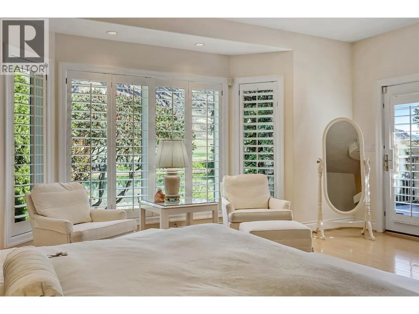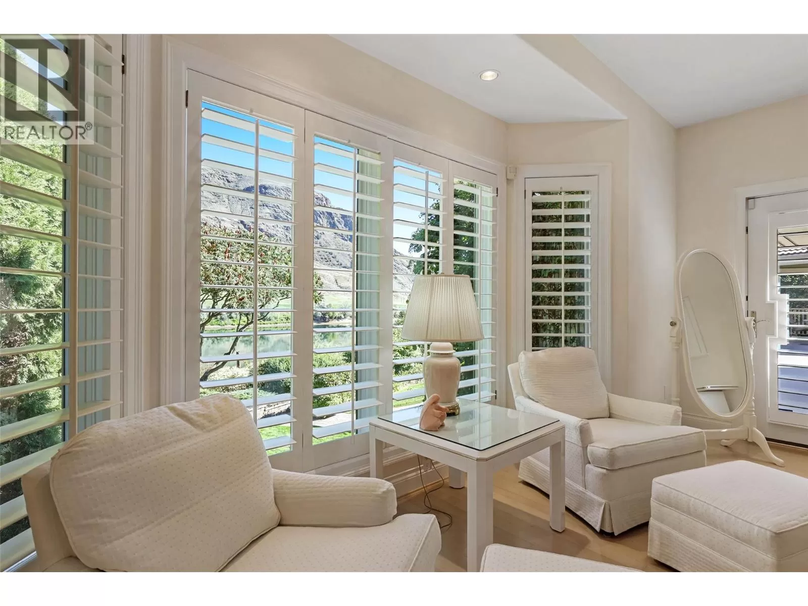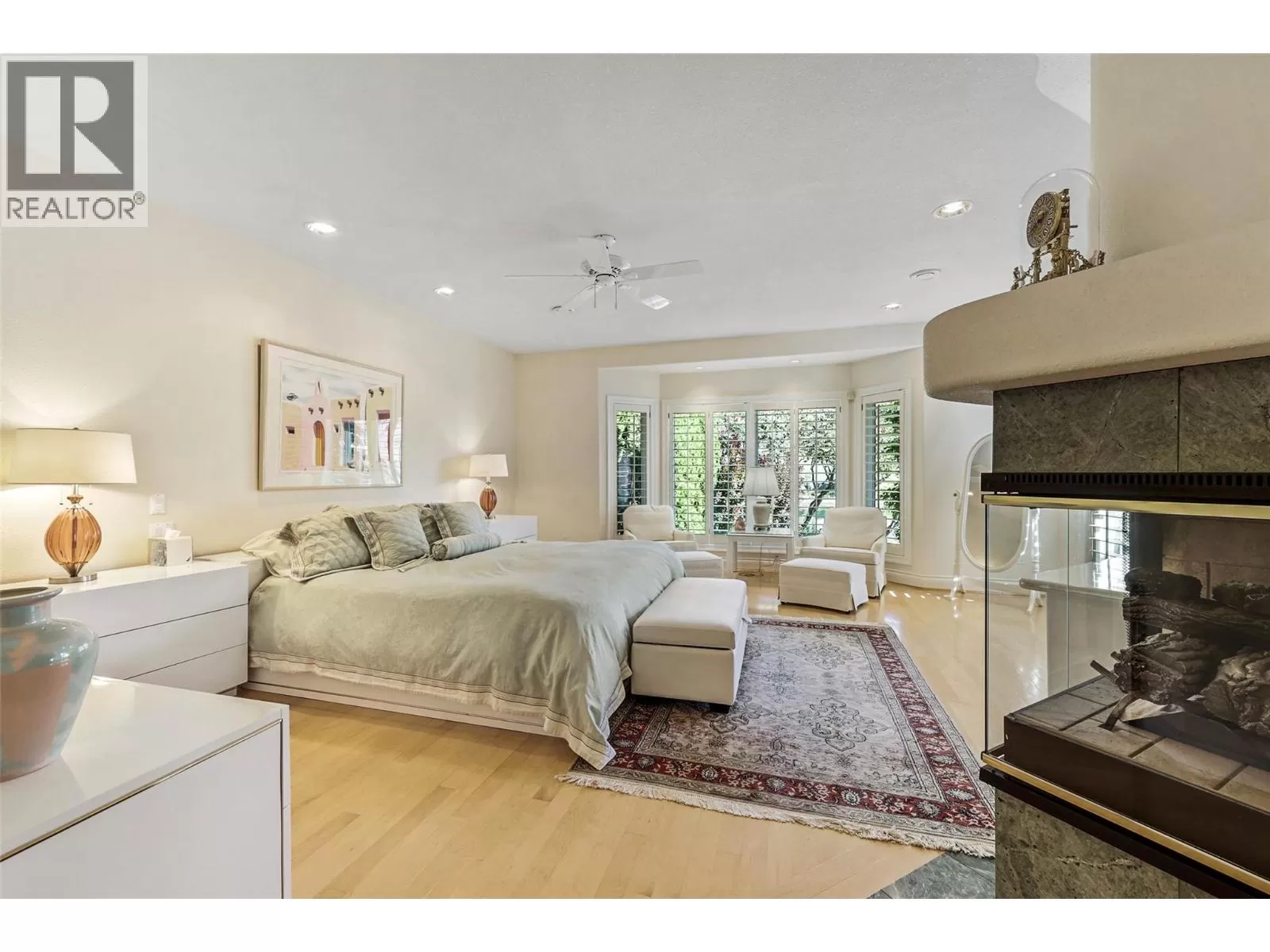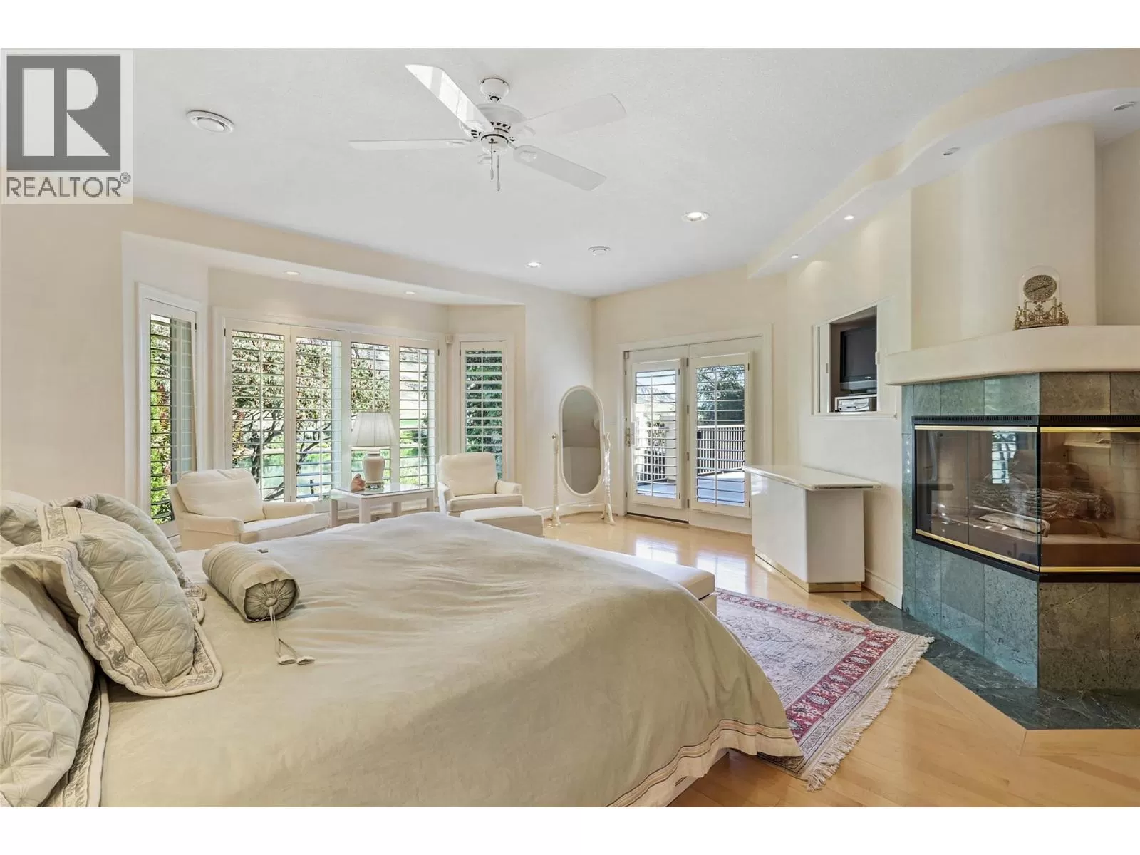 Step into elegance with this stunning 5,400 SqFt riverfront masterpiece. From the moment you enter, a grand open foyer sets the tone for refined living. A formal sitting room and executive office with custom built-ins offer sophistication and function. The gourmet kitchen flows seamlessly into the spacious living area, a wet bar with a second island makes entertaining effortless. The dining room is separate for intimate dinners. The expansive primary suite features river views, a gas fireplace, a dream walk-in closet with center island, and a spa-inspired 6-piece ensuite. The main level also includes a second bedroom, a 2pc powder room as well as a 4pc main bathroom. The lower level is a haven of leisure: a generous rec room with wet bar and fireplace, billiards area, flex space, indoor hot tub, sauna, steam shower, and abundant storage. Two additional bedrooms and a 4 piece bathroom complete the lower level. Outside, enjoy a covered deck with breathtaking views, mature landscaping, vibrant gardens, a sparkling pool, and private dock. With gated entry, RV parking, guest space, and a double garage, this estate offers luxury, privacy, and lifestyle in one exceptional package. (id:27476)