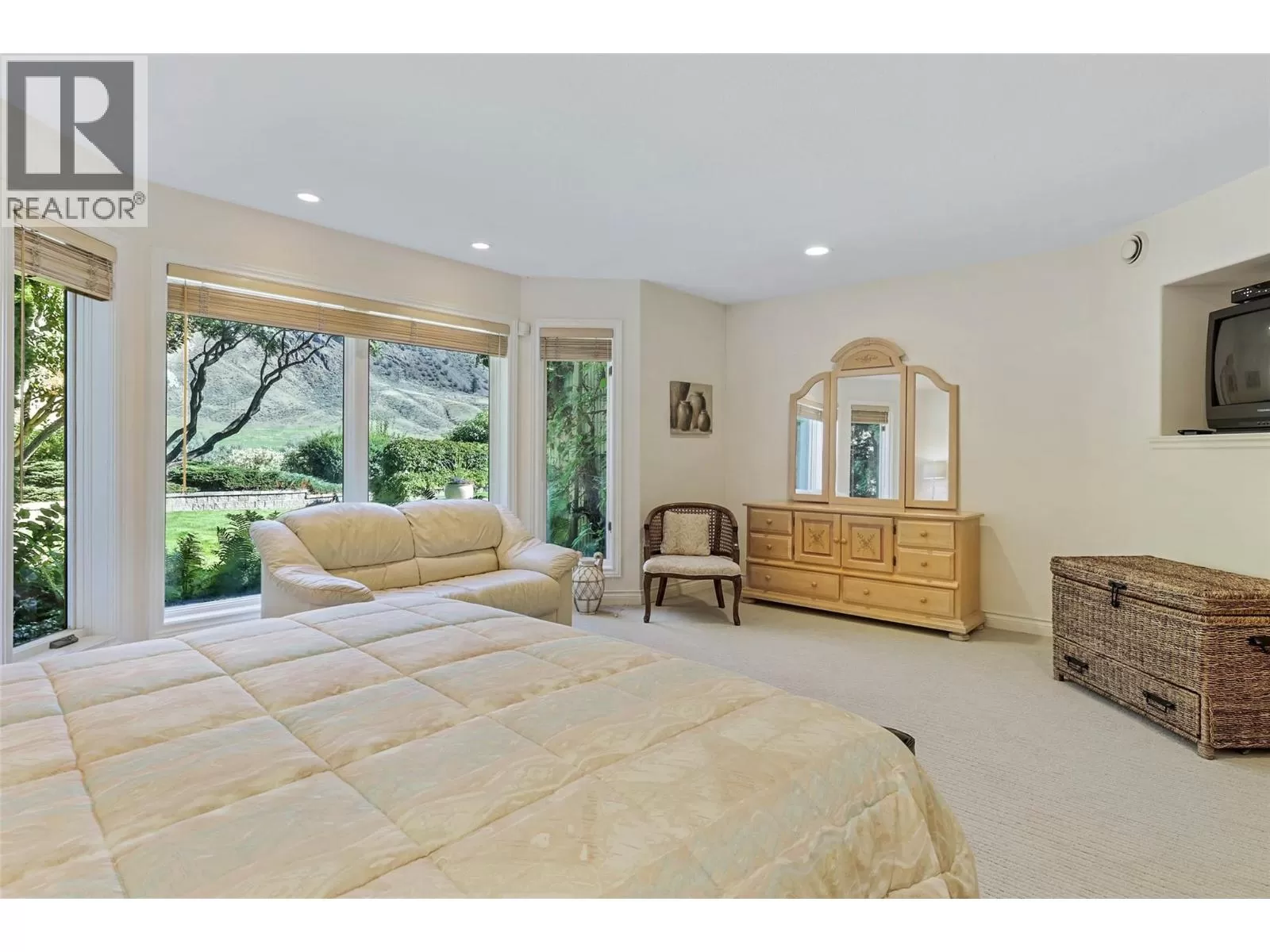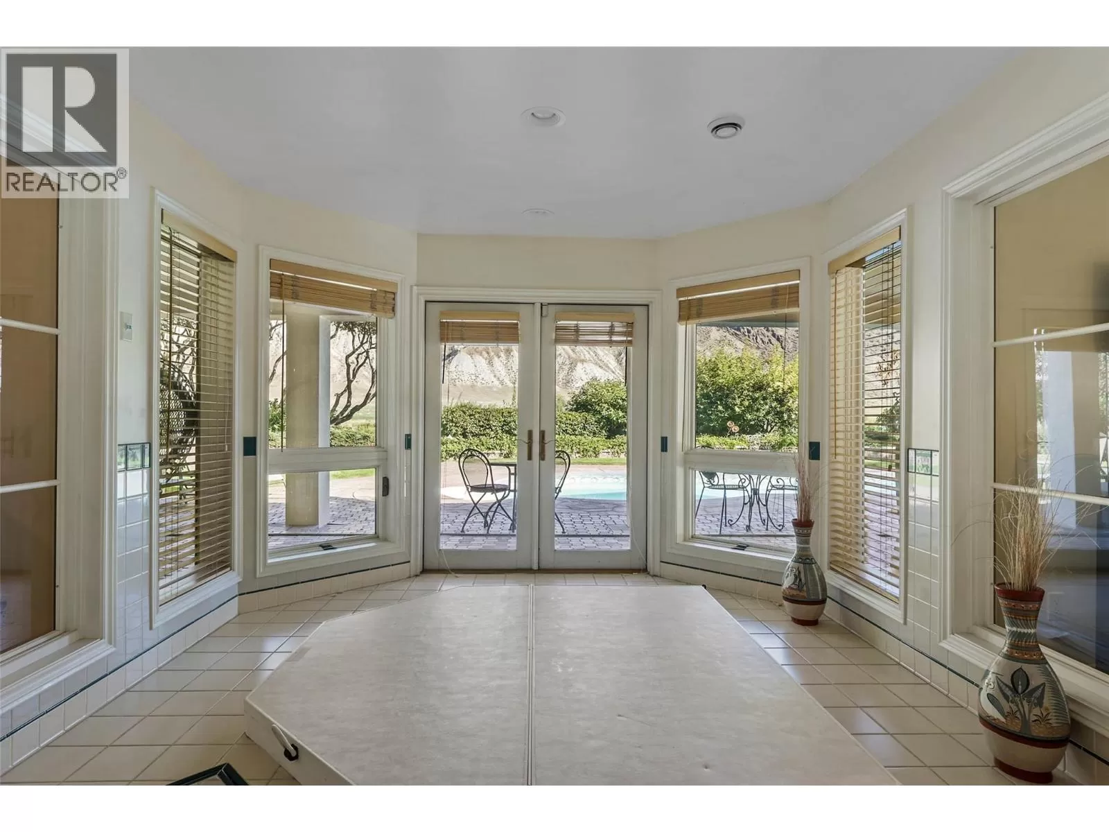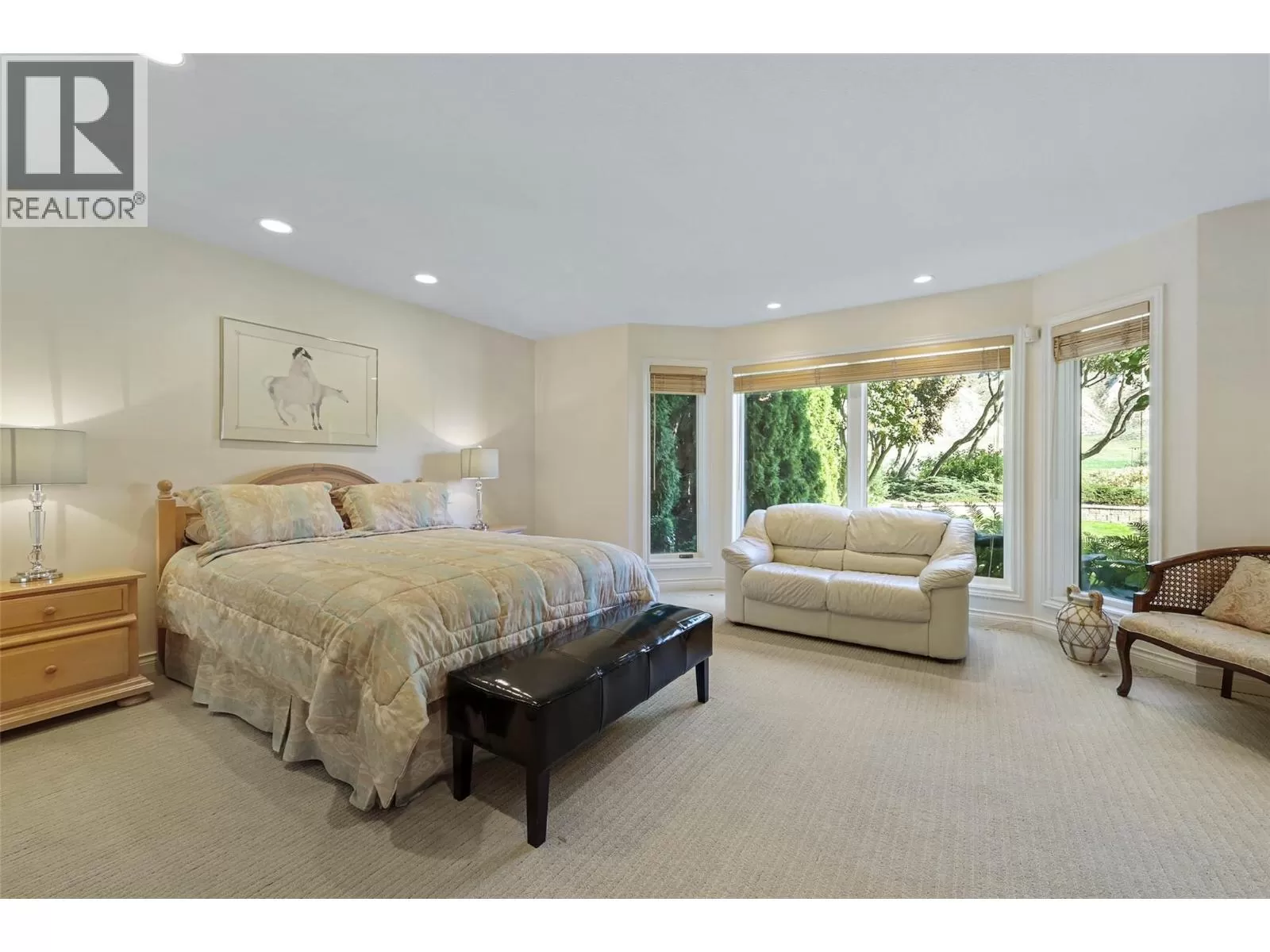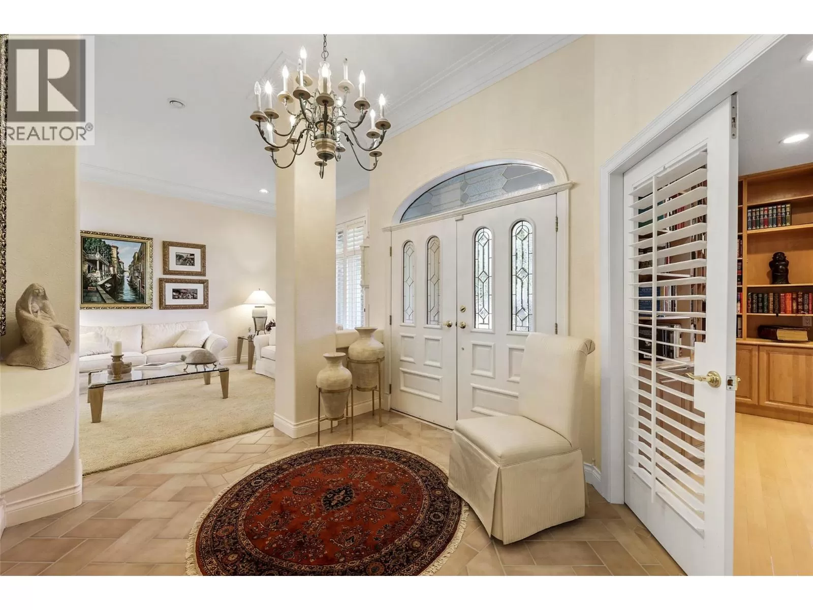 Step into elegance with this stunning 5,400 SqFt riverfront masterpiece. From the moment you enter, a grand open foyer sets the tone for refined living. A formal sitting room and executive office with custom built-ins offer sophistication and function. The gourmet kitchen flows seamlessly into the spacious living area, a wet bar with a second island makes entertaining effortless. The dining room is separate for intimate dinners. The expansive primary suite features river views, a gas fireplace, a dream walk-in closet with center island, and a spa-inspired 6-piece ensuite. The main level also includes a second bedroom, a 2pc powder room as well as a 4pc main bathroom. The lower level is a haven of leisure: a generous rec room with wet bar and fireplace, billiards area, flex space, indoor hot tub, sauna, steam shower, and abundant storage. Two additional bedrooms and a 4 piece bathroom complete the lower level. Outside, enjoy a covered deck with breathtaking views, mature landscaping, vibrant gardens, a sparkling pool, and private dock. With gated entry, RV parking, guest space, and a double garage, this estate offers luxury, privacy, and lifestyle in one exceptional package. (id:27476)