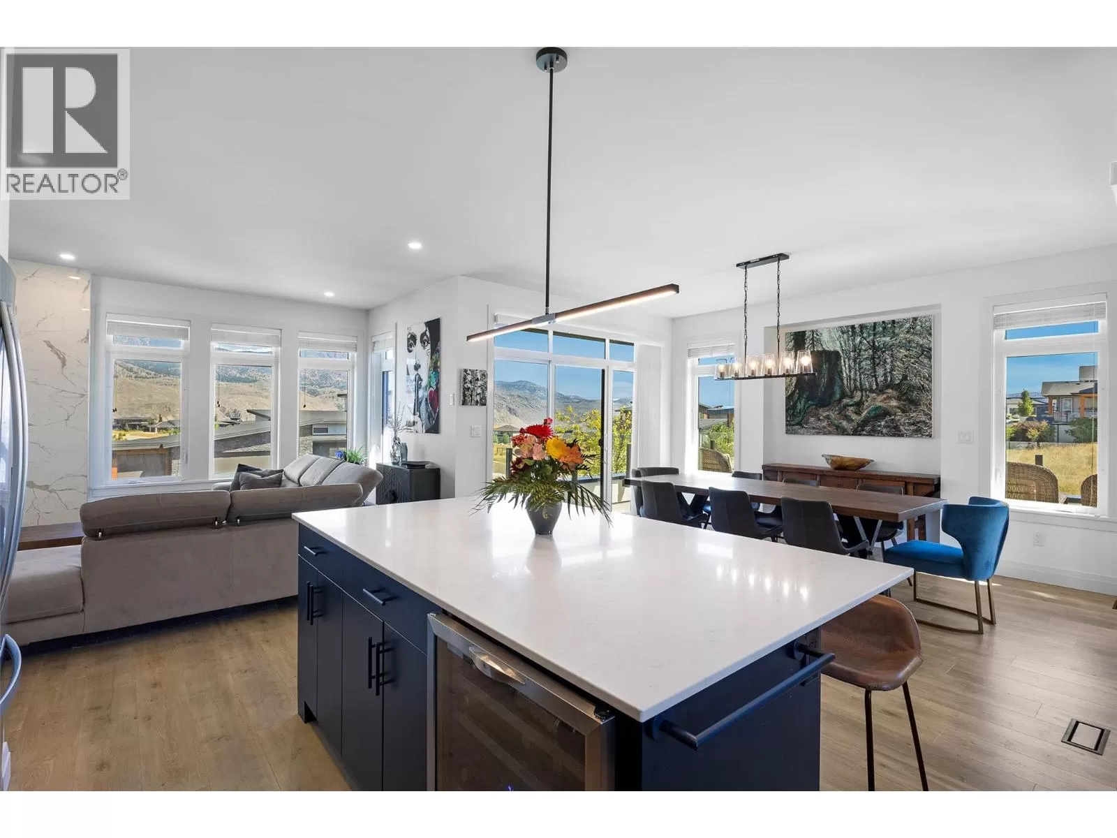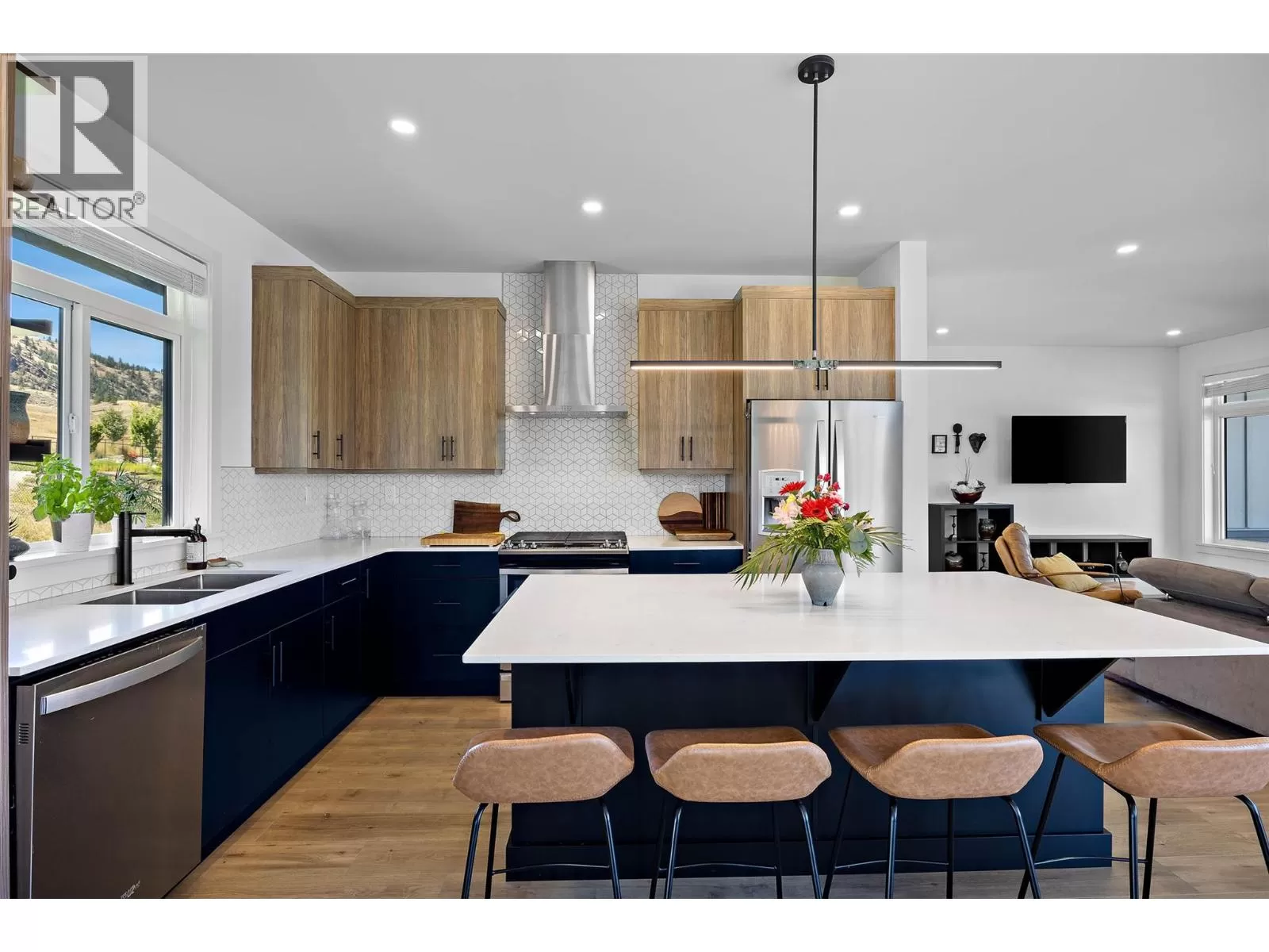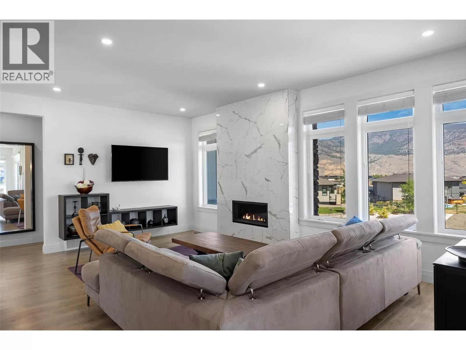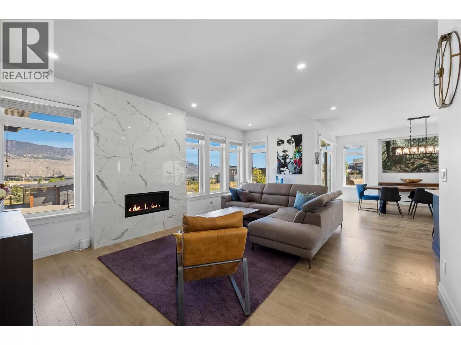 Stunning Luxury Home in Tobiano Resort Community!! Built in 2020, this beautiful basement-entry home offers an exceptional floor plan with 3+2 bedrooms plus a den and 3 bathrooms. Enjoy spacious, light-filled living areas with modern design elements and exceptional craftsmanship throughout. The open-concept gourmet kitchen features high-end appliances, sleek quartz countertops, and stylish finishes, flowing seamlessly into the dining area and great room. A contemporary linear gas fireplace and expansive windows frame breathtaking views, while the covered wrap-around patio extends your living space outdoors. The finished basement includes a large family room, two additional bedrooms, and a versatile artistâs den or home office - perfect for guests or creative pursuits. Situated on a 0.37-acre lot with beautiful landscaping with irrigation and drip lines for hanging baskets. This home showcases beautiful Hardie board siding with cultured stone accents, a spacious double garage, and a long, flat driveway. The private, level backyard is ready for your grand ideas! Located just 5 minutes to Tobiano Golf and Bruker Marina and only 20 minutes to Kamloops. This home is surrounded by nature and world-class recreation, offering an unmatched lifestyle. Experience refined resort living with unparalleled views in every direction - a must-see home! (id:27476)