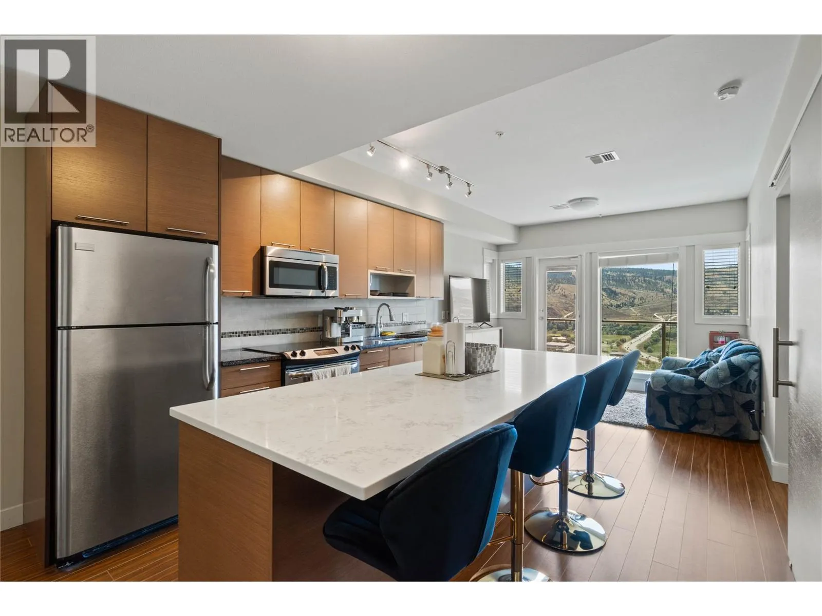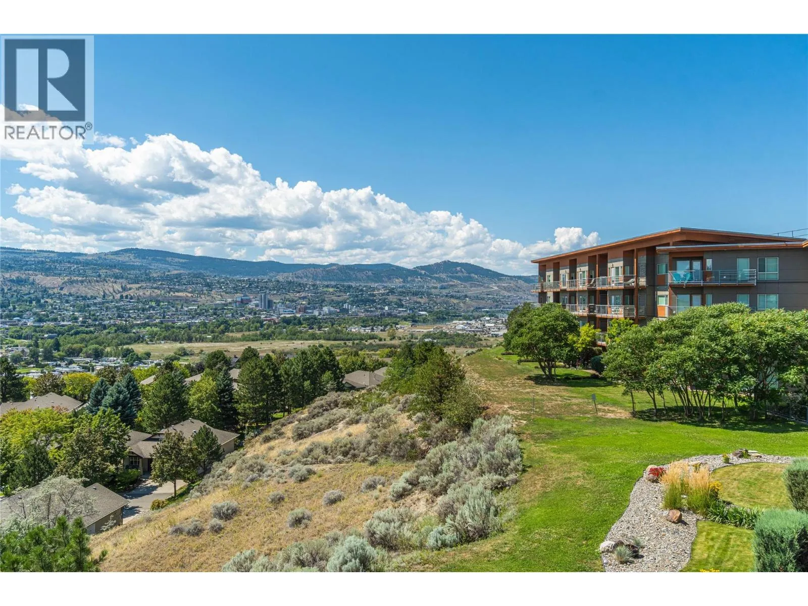 This 2-bedroom, 1-bath home gives you big views of Kamloops and the South Thompson Riverâright from your own deck. The open floor plan feels bright and easy, with custom cabinets, a tiled backsplash, a big island with a breakfast bar, stone counters, and stainless steel appliances.Thereâs a barn door, an electric fireplace, in-suite laundry, and a large covered deckâperfect for morning coffee or evening drinks. Geothermal heating and cooling keep things comfy year-round.You also get 1 underground parking spot and a storage locker. The $378/month fee covers sewer, water, garbage, and hot water. Live in Sun Rivers with almost no upkeepâpets and rentals are welcome. With school starting soon and rentals being difficult maybe its time to buy your own? The weather still perfect for golf, and beach days at the River. nowâs the time to make your move. Book Your Viewing Today before its gone. (id:27476)
