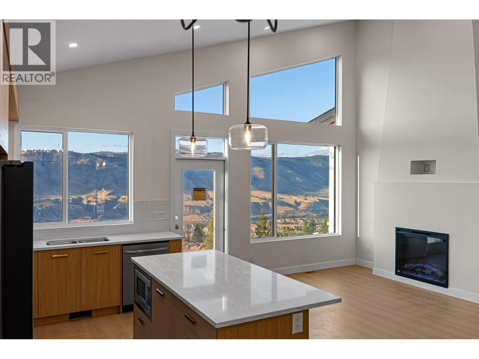 Welcome to The Landing at Juniper West â an exclusive collection of 3-bedroom duplex homes perched atop Juniper Ridge on scenic Coldwater Drive. Showcasing striking modern architecture, each home seamlessly blends style, functionality, and breathtaking natural surroundings into one perfect package. Thoughtfully crafted entry-level layouts feature a bright, open-concept floor plan that flows effortlessly between the living, kitchen, and dining spaces. Vaulted ceilings and expansive windows frame unobstructed river and city views, inviting the beauty of the outdoors into your everyday living. With the primary suite and laundry conveniently located on the main floor, you have everything you need within easy reach. The rancher-style design includes a walkout basement offering two additional bedrooms and a full bathroomâdelivering flexibility and comfort for every stage of life. This duplex also contains a Bonus space with the suspended slab under the basement, providing additional square footage to your home! Outside, enjoy professionally landscaped, low-maintenance yards and the added ease of a low Bareland Strata fee. Every home comes turn-key ready, complete with a full appliance package, stylish window coverings, and contemporary finishesâso you can settle in and start enjoying immediately. This is elevated living in one of Kamloopsâ most sought-after neighbourhoods. *Please note, listing photos are of Unit 140 (id:27476)